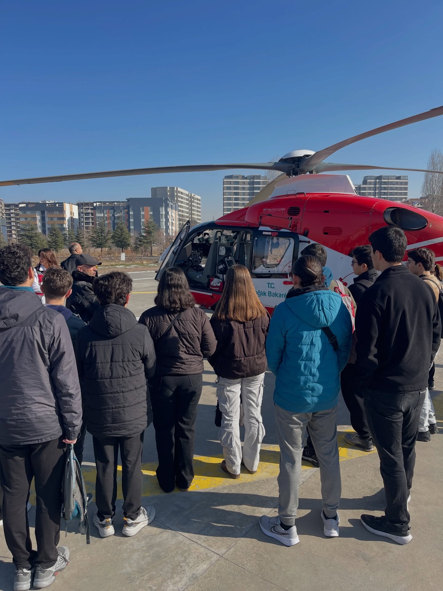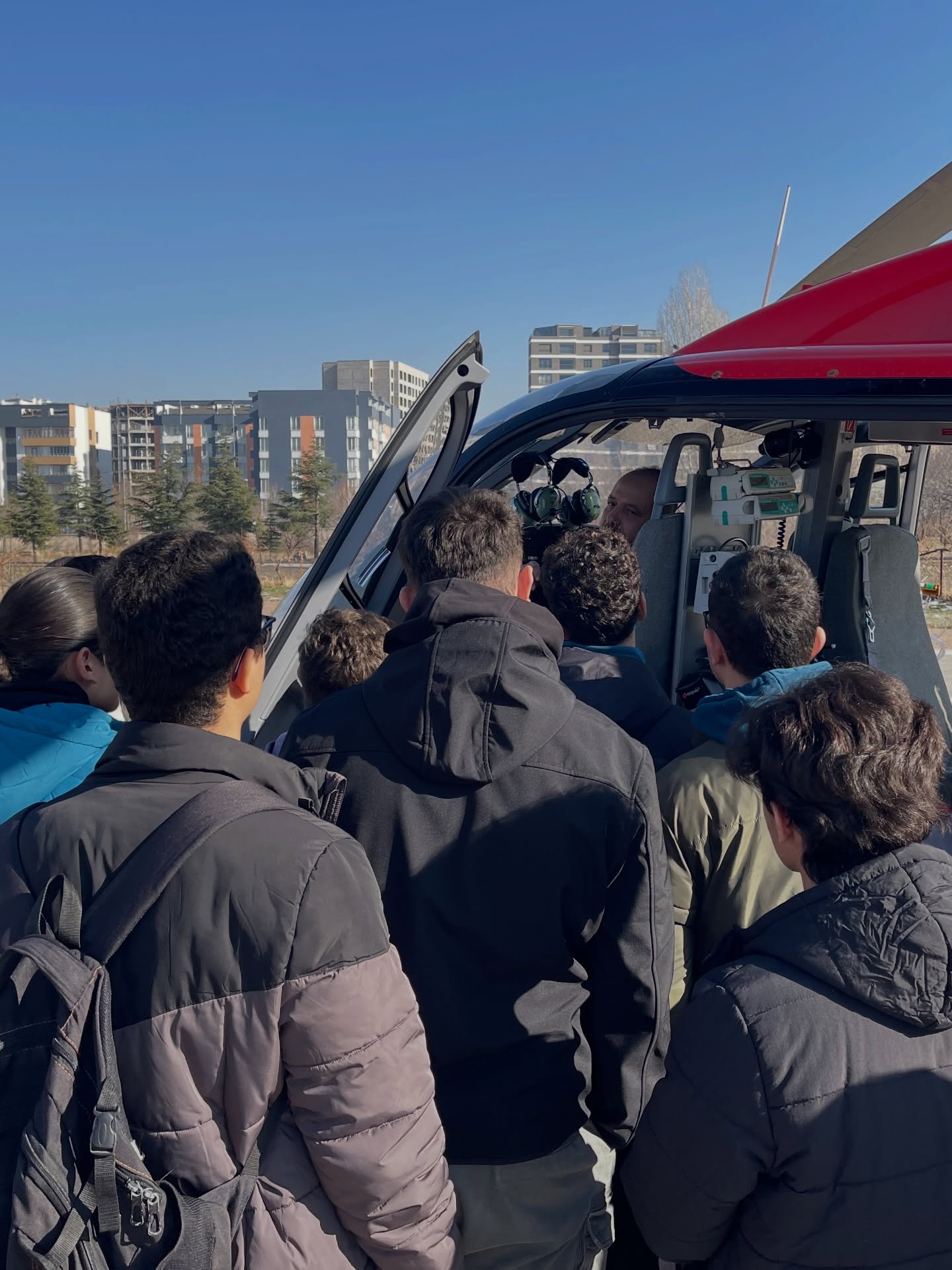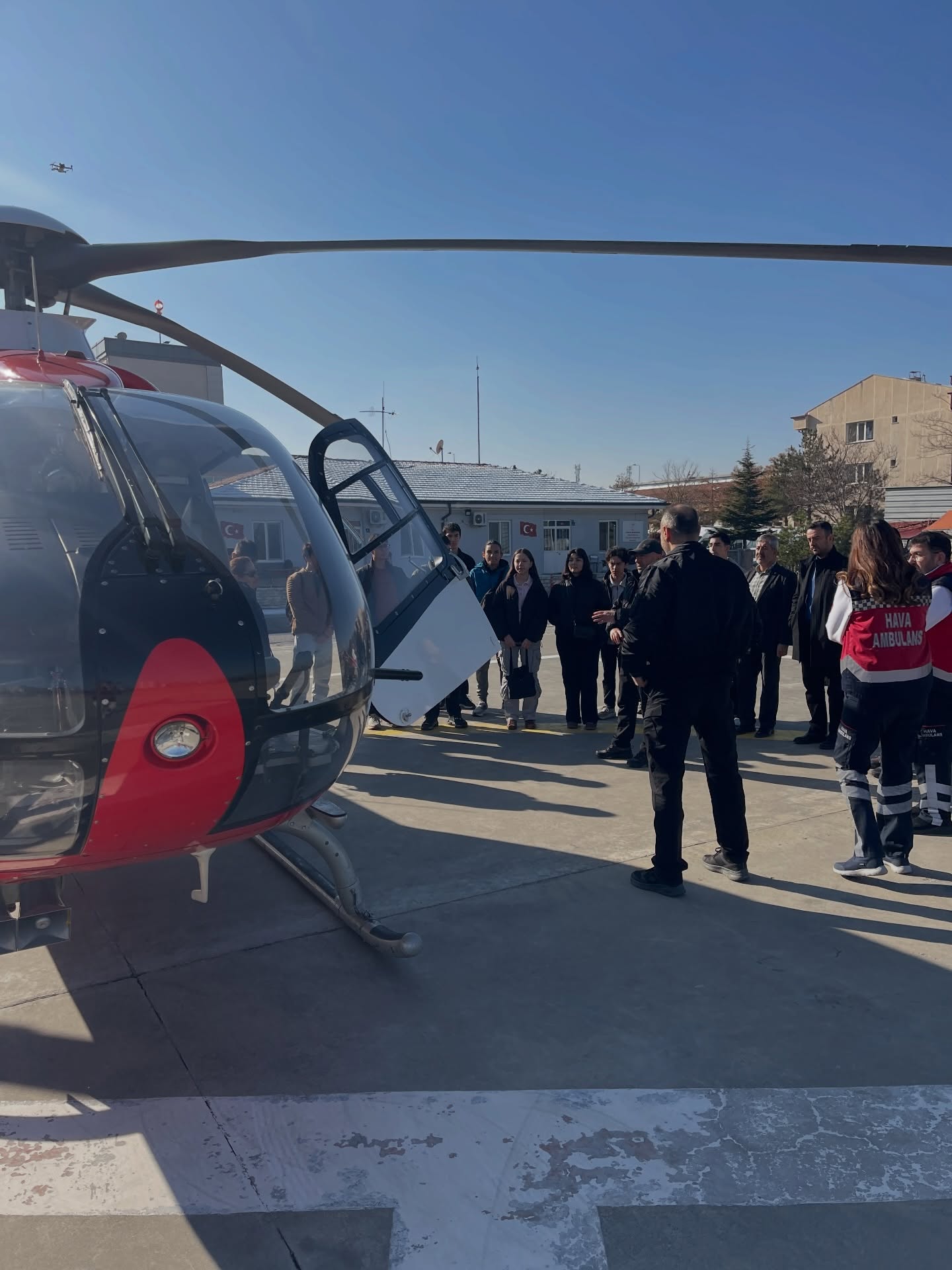 Teknik gezi kapsamında öğrenciler, hava ambulans hizmetlerinde kullanılan helikopterin teknik yapısı, uçuş sistemleri ve havacılık teknolojileri hakkında yetkililerden bilgi aldı. Öğrenciler, teorik bilgilerini sahada yapılan uygulamalı anlatımlarla pekiştirme imkânı bulurken, Başkan Büyükkılıç ve ekibine bu imkânlardan dolayı teşekkür ettiler.