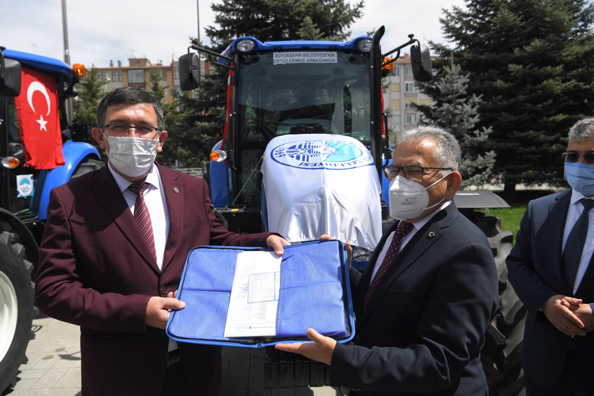 Büyükşehir Belediyesi önünde yapılan traktör teslim