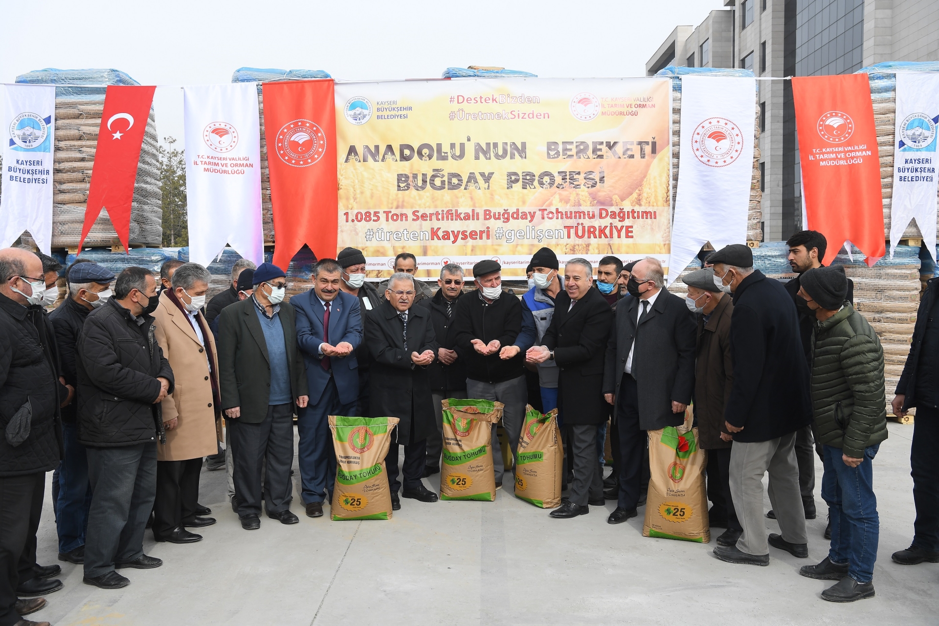 karşılanan toplam 1085 ton yazlık ekmeklik buğday tohumluğu dağıtım törenine