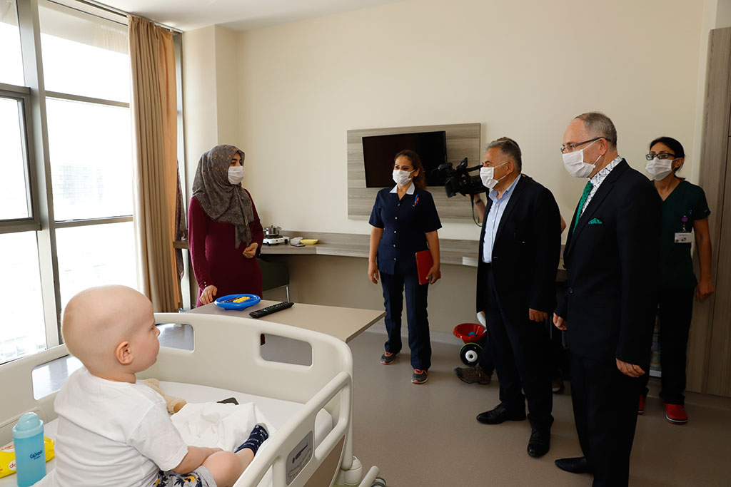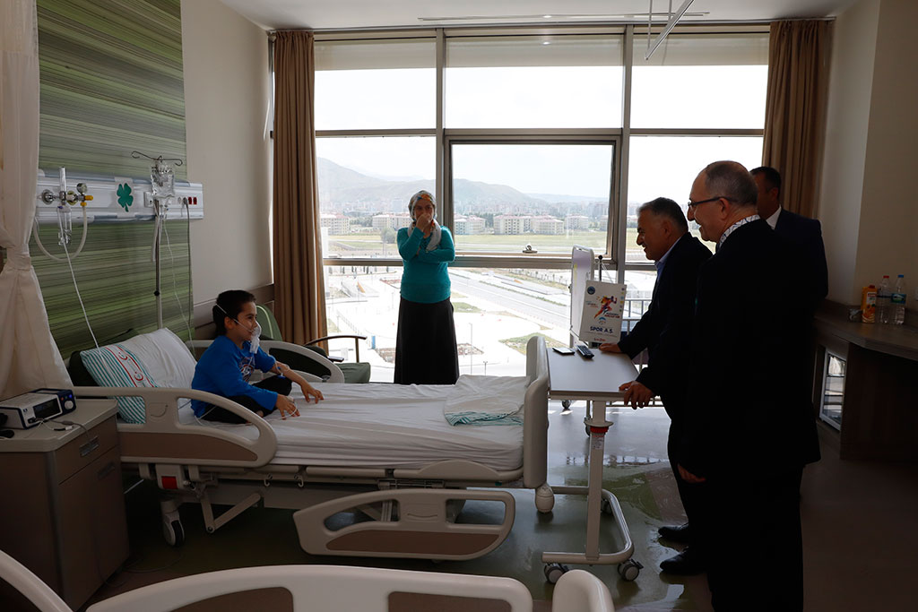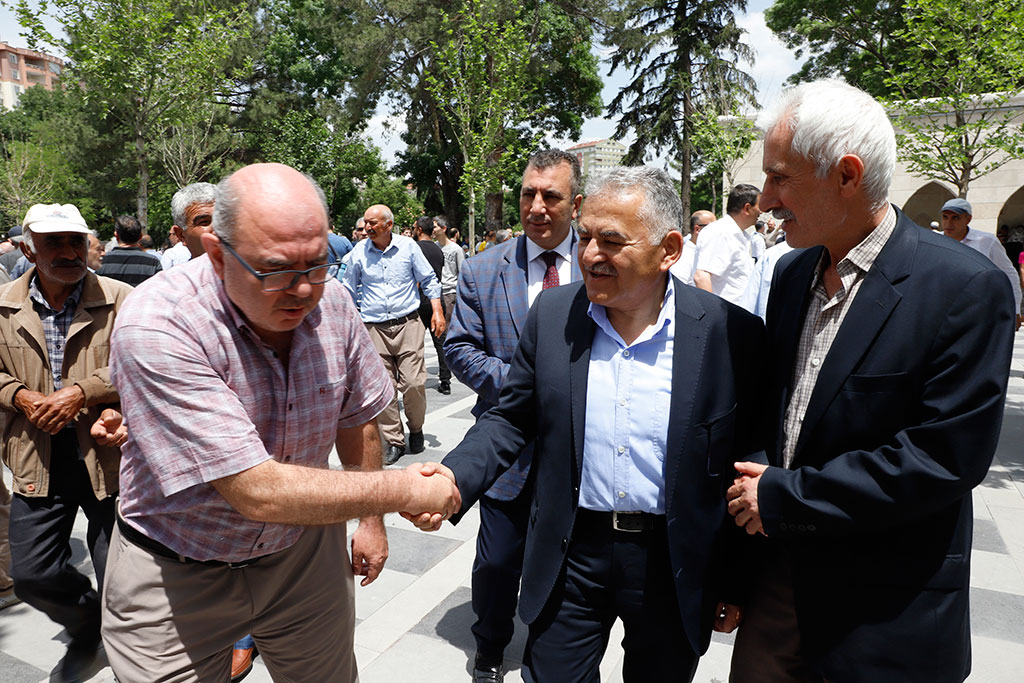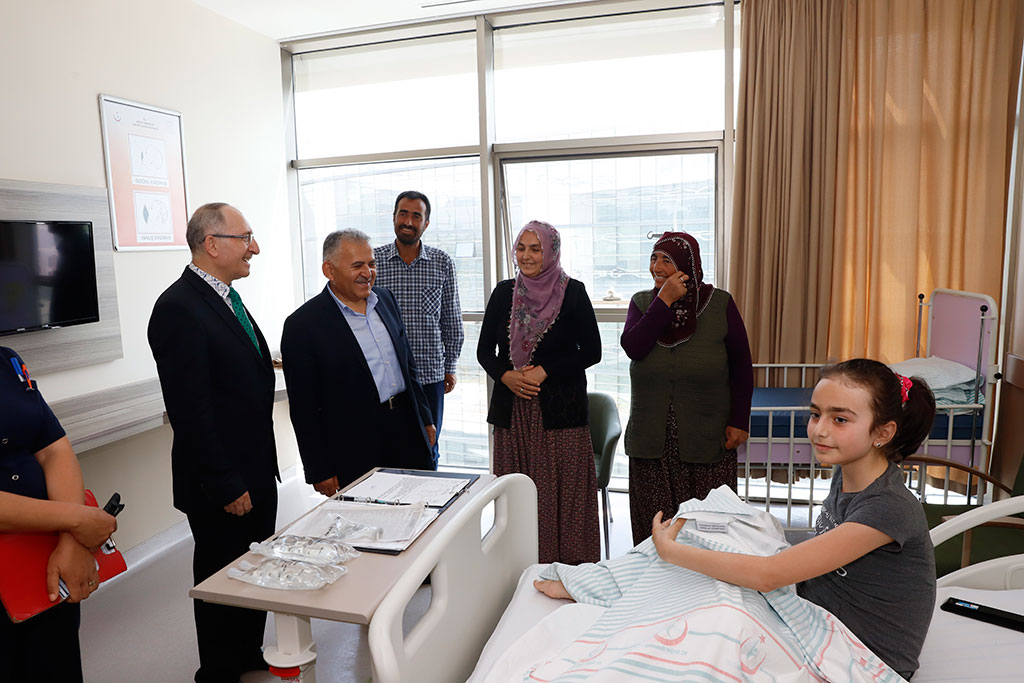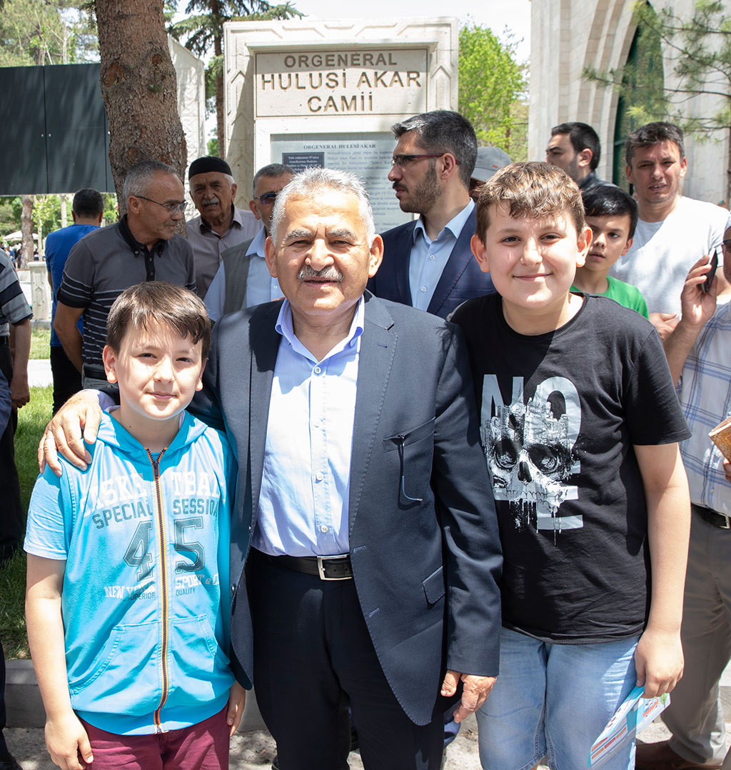 Büyükşehir Belediye Başkanı Dr. Memduh Büyükkılıç Ramazan Bayramı Arefesi’nde Asri Mezarlık ve Çocuk Hastanesi’ne ziyaretlerde bulundu. Başkan Büyükkılıç Orgeneral Hulusi Akar Camisi’nde kıldığı öğle namazının ardından cenaze namazlarına katıldı, mezarlık ziyaretlerine gelenlerin Arefe ve Bayramı’nı tebrik etti. Büyükkılıç, hasta çocuklarla da yakından ilgilendi. Yoğun bir Ramazan Ayı programı geçirerek 7’den 70’e bütün kesimle kucaklaşan Büyükşehir Belediye Başkanı Dr. Memduh Büyükkılıç, Ramazan Bayramı’nın Arefesi’nde de hemşehrilerini ihmal etmedi. Mezarlık ziyaretlerini gerçekleştirmek üzere Asri Me gelen vatandaşlarla görüşen Başkan Büyükkılıç “Rabbim bizleri hep birlikte diğer bayramlara eriştirsin diye dua ediyoruz” dedi. BİR ZİYARETTE HASTA ÇOCUKLARA Mezarlık ziyaretlerinin ardından Kayseri Şehir Hastanesi’ne geçen Başkan Büyükkılıç, burada Çocuk Hematoloji, Çocuk Enfeksiyon Servisi ve Süt Çocuğu Servislerini ziyaret ederek tedavi gören çocuklarla yakından ilgilendi, hediyeler verdi. Karşılarında Büyükşehir Belediye Başkanı Dr. Memduh Büyükkılıç’ı gören hasta yakınları şaşkınlıklarını ve mutluluklarını gizleyemedi. Her girdiği tedavi odasında hasta yakını ve hasta ile bire bir ilgilenen Başkan Büyükkılıç, geçmiş olsun temennisinde bulundu.