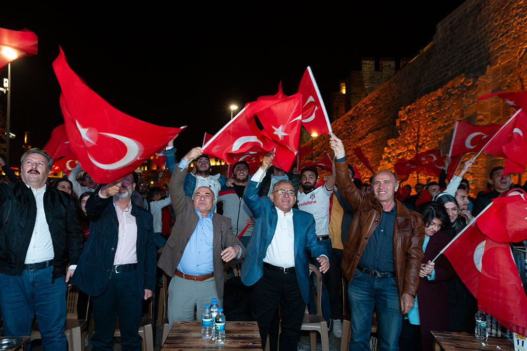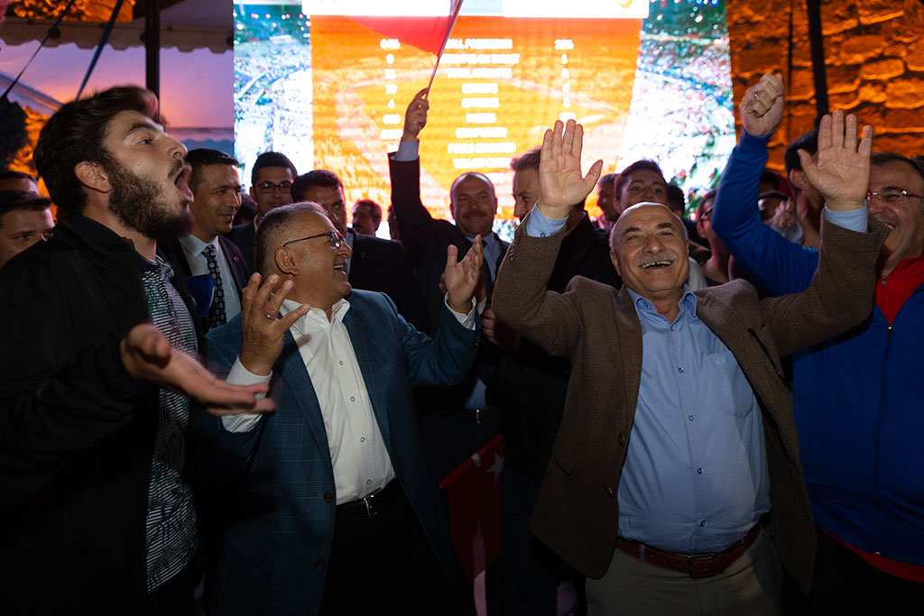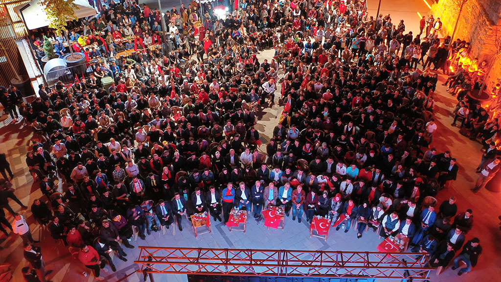 Büyükşehir Belediye Başkanı Dr. Memduh Büyükkılıç, Türkiye ile Fransa arasında oynanan Avrupa Şampiyonası grup maçını Tarihi Kayseri Kalesi içinde kurulan dev ekranda vatandaşlarla beraber büyük bir coşkuyla izledi. Başkan Büyükkılıç, Kayseri Kalesi’ndeki etkinlikler için “Durmak yok, yola devam” diyerek futbolcularla birlikte asker selamı verdi. Büyükşehir Belediye Başkanı Memduh Büyükkılıç, Türkiye ile Fransa arasında oynanan Avrupa Şampiyonası grup maçını Kayseri Milletvekili İsmail Tamer, Melikgazi Belediye Başkanı Mustafa Palancıoğlu, Kocasinan Belediye Başkanı Ahmet Çolakbayrakdar, Hacılar Belediye Başkanı Bilal Özdoğan ve vatandaşlarla birlikte izledi. Vatandaşların yoğun ilgisiyle karşılaşan Başkan Büyükkılıç, maçı tezahüratlar eşliğinde takip etti. Beraberlik sonrasında çok mutlu olan Büyükşehir Belediye Başkanı Memduh Büyükkılıç, maç izleyenlerle beraber asker selamı vererek Mehmetçiklerimize ve Barış Pınarı Harekatı'na desteğini gösterdi. Böyle güzel bir organizasyon için AK Parti Kayseri İl Gençlik Kolları Başkanı Hasan Nuri Kuş’a teşekkür eden Başkan Büyükkılıç, Kayseri Kalesi’nde gerçekleştirilen etkinlikler için güçlü bir sesle “Durmak yok, yola devam” dedi. Türkiye ile Fransa arasında oynanan Avrupa Şampiyonası grup maçını Büyükşehir Belediye Başkanı Memduh Büyükkılıç ile izleyen Kayseri Milletvekili İsmail Tamer de “Kahraman ordumuza Mehmetçiğimize selam olsun” diyerek, Başkan Büyükkılıç ile beraber asker selamı verdi. Kayseri Kalesi’nin içinde dev ekranda izlenen maça yoğun ilgi gösterildi.