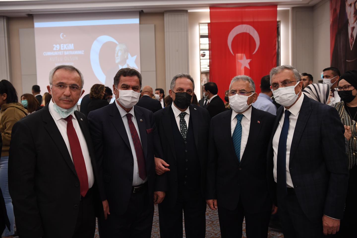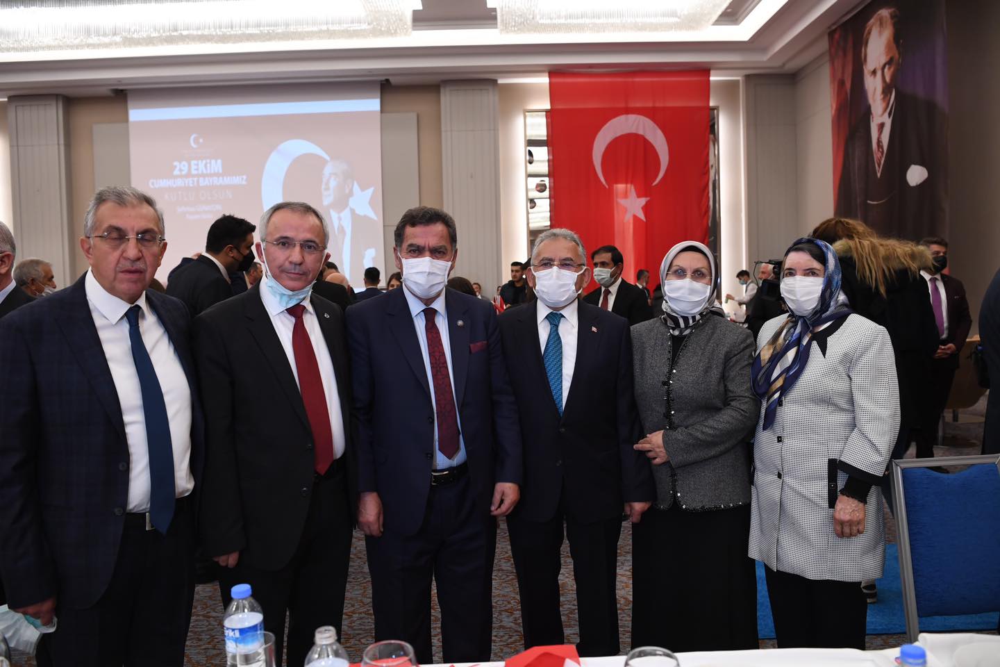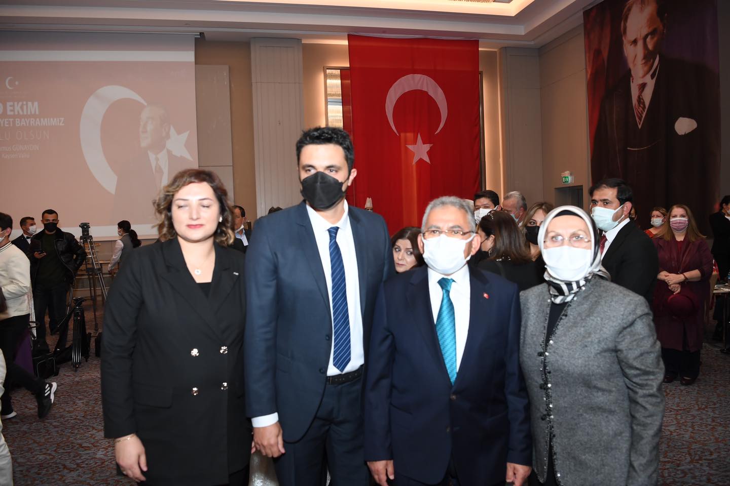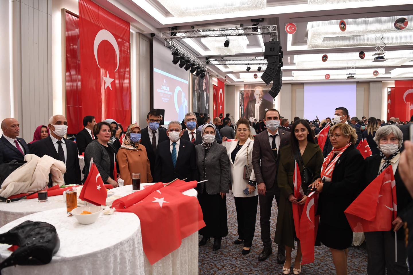Kayseri Büyükşehir Belediye Başkanı Dr. Memduh Büyükkılıç, Cumhuriyet'in 98. kuruluş yıldönümü dolayısıyla düzenlenen 29 Ekim Resepsiyonu’na eşi ile birlikte katılarak, Cumhuriyetin kazanımlarını daha yukarılara taşımak için yerel yöneticiler olarak gayret içerisinde olduklarını söyledi. Cumhuriyet Bayramı coşkusunu bir kez daha yaşadıklarını ifade eden Başkan Büyükkılıç, “Rabbim nice bayramları birlik ve beraberlik içerisinde kutlamayı nasip eylesin” dedi.Türkiye Cumhuriyeti’nin ilanın 98. yıldönümü dolayısıyla Kayseri Valiliği tarafından düzenlenen resepsiyona Büyükşehir Belediye Başkanı Dr. Memduh Büyükkılıç, eşi Dr. Necmiye Büyükkılıç ile katıldı. Programa Vali Şehmus Günaydın, AK Parti Milletvekilleri İsmail Tamer, İsmail Emrah Karayel ve Hülya Nergis Atçı, Garnizon Komutanı Tuğgeneral Vedat Öncel, siyasi parti il başkanları, ilçe belediye başkanları, il ve bölge müdürleri, sivil toplum kuruluşlarının temsilcileri, şehit yakınları, gaziler ile vatandaşlar katıldı.