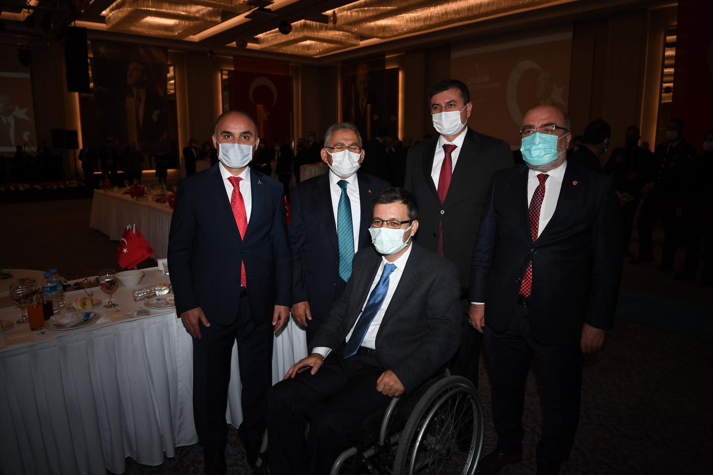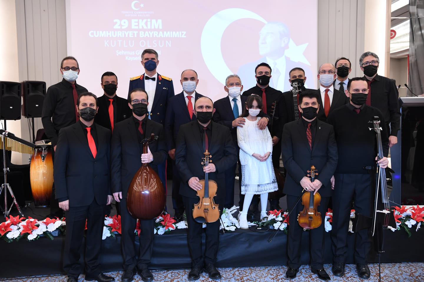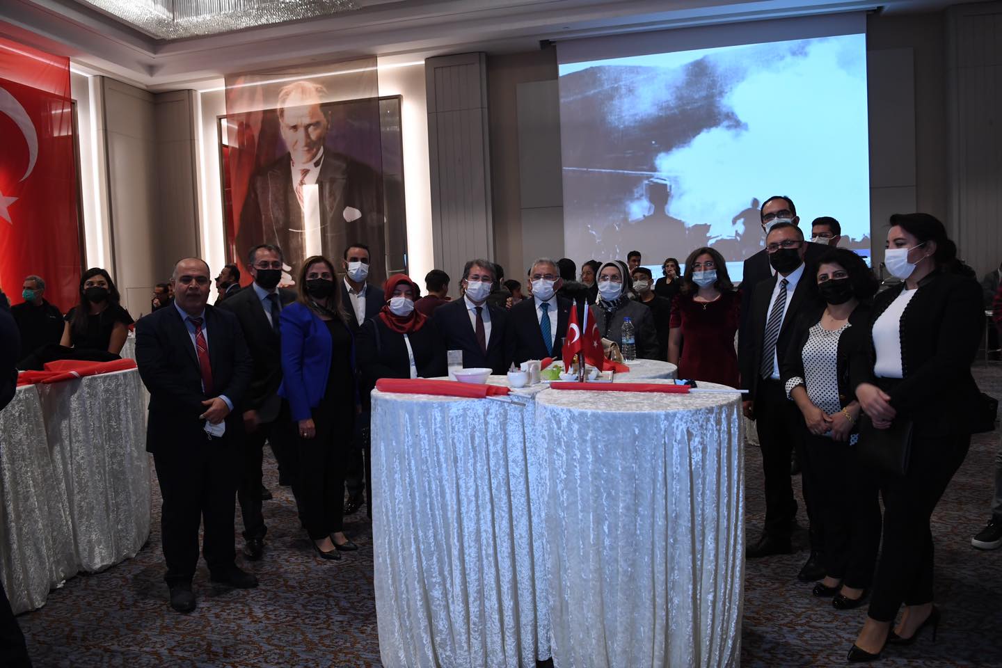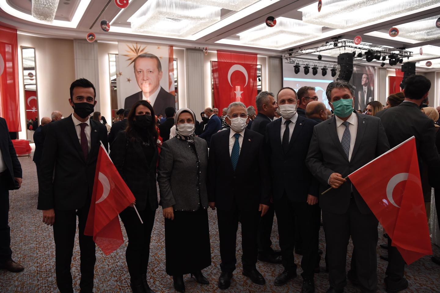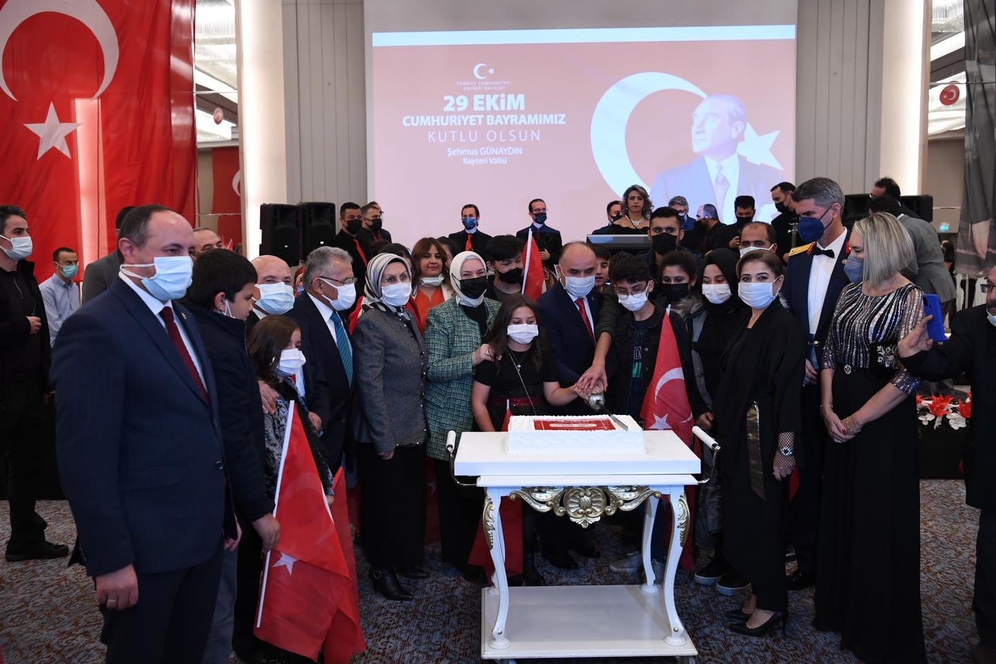 Kayseri Büyükşehir Belediye Başkanı Dr. Memduh Büyükkılıç, Cumhuriyet'in 98. kuruluş yıldönümü dolayısıyla düzenlenen 29 Ekim Resepsiyonu’na eşi ile birlikte katılarak, Cumhuriyetin kazanımlarını daha yukarılara taşımak için yerel yöneticiler olarak gayret içerisinde olduklarını söyledi. Cumhuriyet Bayramı coşkusunu bir kez daha yaşadıklarını ifade eden Başkan Büyükkılıç, “Rabbim nice bayramları birlik ve beraberlik içerisinde kutlamayı nasip eylesin” dedi.Türkiye Cumhuriyeti’nin ilanın 98. yıldönümü dolayısıyla Kayseri Valiliği tarafından düzenlenen resepsiyona Büyükşehir Belediye Başkanı Dr. Memduh Büyükkılıç, eşi Dr. Necmiye Büyükkılıç ile katıldı. Programa Vali Şehmus Günaydın, AK Parti Milletvekilleri İsmail Tamer, İsmail Emrah Karayel ve Hülya Nergis Atçı, Garnizon Komutanı Tuğgeneral Vedat Öncel, siyasi parti il başkanları, ilçe belediye başkanları, il ve bölge müdürleri, sivil toplum kuruluşlarının temsilcileri, şehit yakınları, gaziler ile vatandaşlar katıldı.