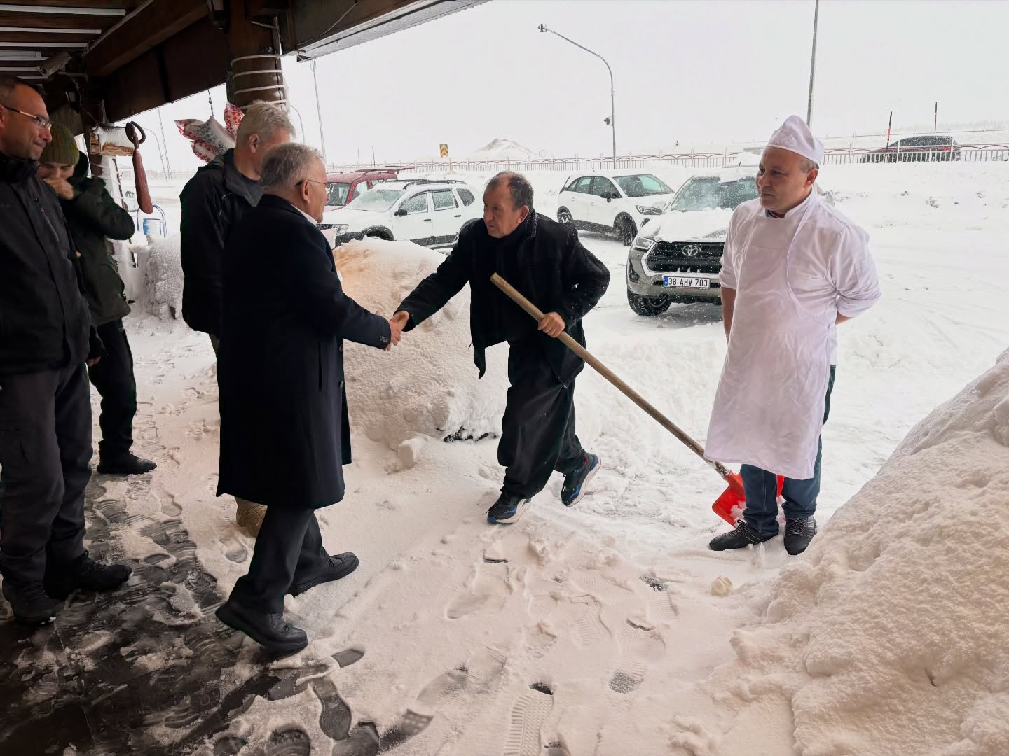 Büyükşehir Belediye Başkanı Dr. Memduh Büyükkılıç, kış turizminin amiral gemisi konumundaki Erciyes Kayak Merkezi’nde faaliyet gösteren esnafla bir araya geldi. Kar yağışı altında gerçekleşen ziyarette Başkan Büyükkılıç, işletme sahiplerine hayırlı işler temennisinde bulunarak sezonun bereketli geçmesini diledi.