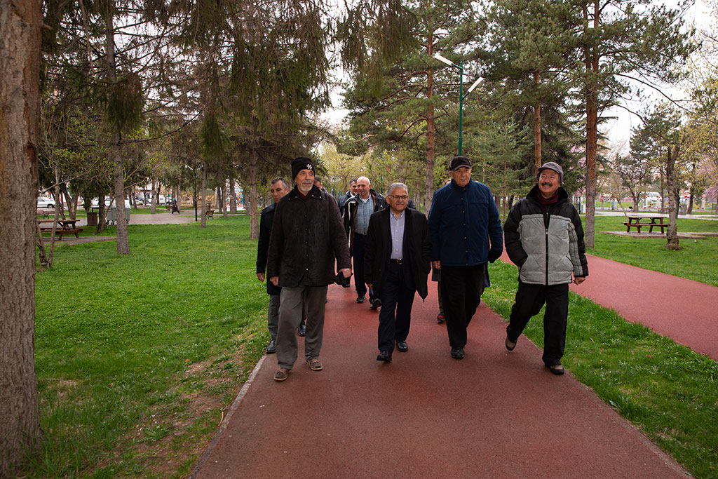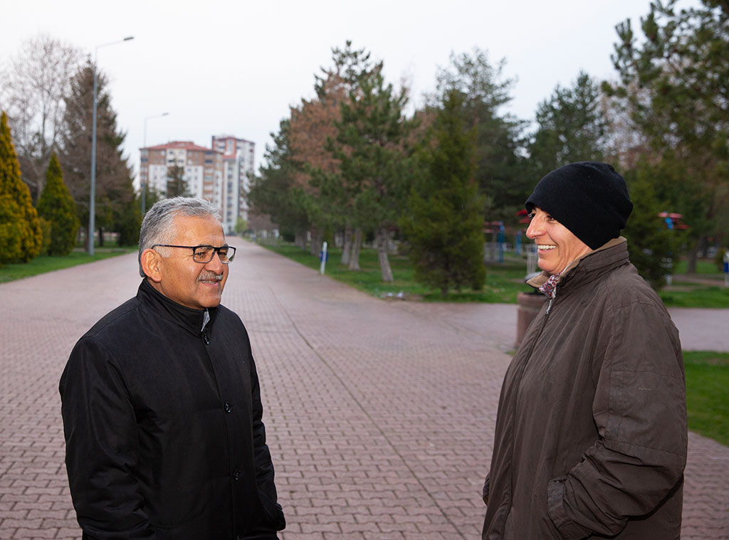 Kayseri Büyükşehir Belediye Başkanı Dr. Memduh Büyükkılıç,gece geç saatlere kadar çalışmasına rağmen yeni güne erken başlıyor. Başkan Büyükkılıç, mesaiye sabah saat 06.00’da parklarda yaptığı incelemelerle başladı. Büyükşehir Belediye Başkanı Memduh Büyükkılıç, sabah saat 06.00’da mesaiye başlayarak öncelikle Fuar alanında incelemelerde bulundu. Fuar alanındaki park alanını bürokratlarıyla birlikte inceleyen Başkan Büyükkılıç, eksikliklerle ilgili tespitlerde bulundu. Başkan Büyükkılıç, erken saatlerde yürüyüş yapan Tuncelili bir vatandaşla da sohbet etti. Başkan Büyükkılıç’ı çok takdir ettiklerini ifade eden vatandaş, özellikle oğlunun Başkan’ı çok sevdiğini söyledi. Büyükşehir Belediye Başkanı Büyükkılıç, Fuar alanının ardından İnönü Parkı’na geçti. Park alanında incelemelerde bulunan Başkan Büyükkılıç, zaman zaman yürüyüş yapanlarla da sohbet etti. Büyükşehir Belediye Başkanı Büyükkılıç, İnönü Parkı’ndaki incelemeleri sırasında İnci Taksi Durağı ile Gül Taksi Durağı’nı da ziyaret ederek taksicilerle bir araya geldi ve Kayseri ile ilgili görüşlerini aldı. Büyükşehir Belediye Başkanlığı görevine başladığı ilk günden itibaren bitmek tükenmek bilmeyen enerjisi ile dikkat çeken Başkan Büyükkılıç, yaklaşık 2 saat boyunca Fuar ve İnönü Parklarında incelemelerde bulundu.