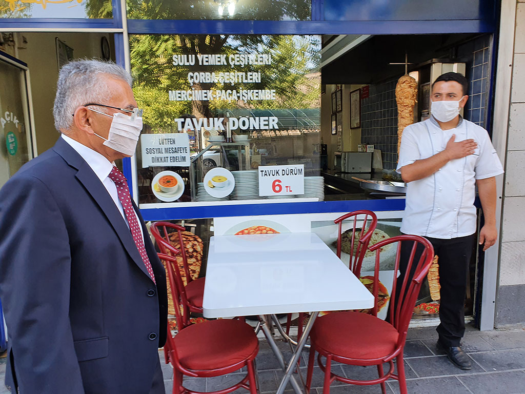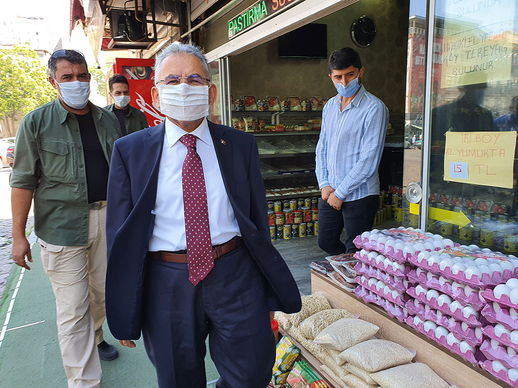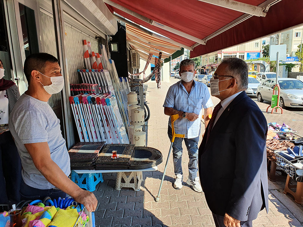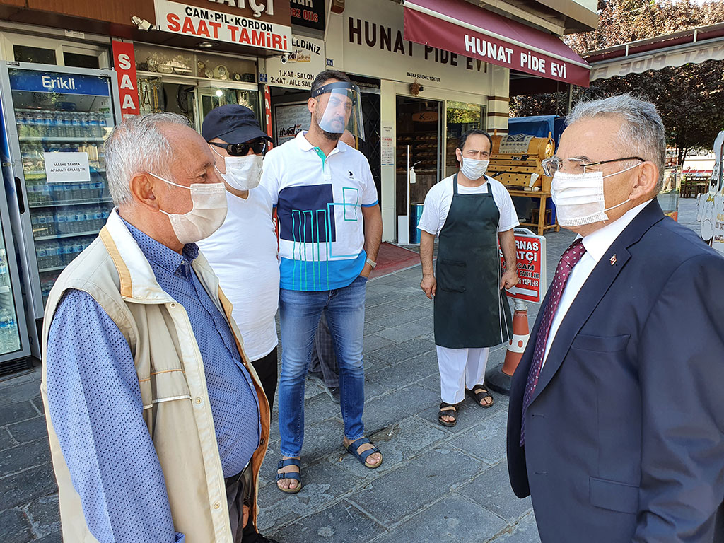 Büyükşehir Belediye Başkanı Dr. Memduh Büyükkılıç, pandemi dolayısıyla gerçekleştirdiği denetimlere devam etti. Hunat Mahallesi’nde esnaf ve vatandaşlarla görüşen Başkan Büyükkılıç, koronavirüs pandemi sürecinde en güçlü silahın maske, mesafe ve temizlik (MMT) olduğunu hatırlatarak, bu konuda Kayserili vatandaşların daha çok hassasiyet göstermesinin önemine işaret etti. Başkan Büyükkılıç, denetimlerde Kayseri’deki vatandaşların tamamına yakınının kurallara uyduğunu gözlemlediğini ve bunun sevindirici olduğunu ifade ederek, şunları kaydetti: “Bu Cuma gününde Hunat Hatun’un yaptırmış olduğu külliyenin önünde, gerek çay ocaklarımızdaki vatandaşlarımızın, gerek esnaflarımızın, gerekse iş adamlarımızın yoğun olduğu bu bölgede vatandaşlarımıza selam verdik. Gördük ki Kayserimizin insanları aşağı yukarı tamamına yakını kurallara uyuyorlar. Çünkü biliyorlar ki bu kurallar kendilerinin menfaati için, hem kendilerini korumak, hem karşıdaki vatandaşlarımıza zarar vermemek amacıyla. Sonuçta kazanan hepimiz olacak, çevremiz, şehrimiz, ülkemiz olacak. Dolayısıyla ben hemşehrilerimize minnet duyuyor teşekkür ediyorum. İnşallah gerek ülke, gerek dünyada, gerekse şehrimizde bir miktar hareketlenen korona virüsüne karşı yegâne savaşın maske, mesafe, temizlik olduğunu Sayın Cumhurbaşkanımızın hatırlattığı gibi bizler de hatırlatıyor, bu konuda gerekli hassasiyeti gösterilmesi gerektiğini tekrarlıyorum”