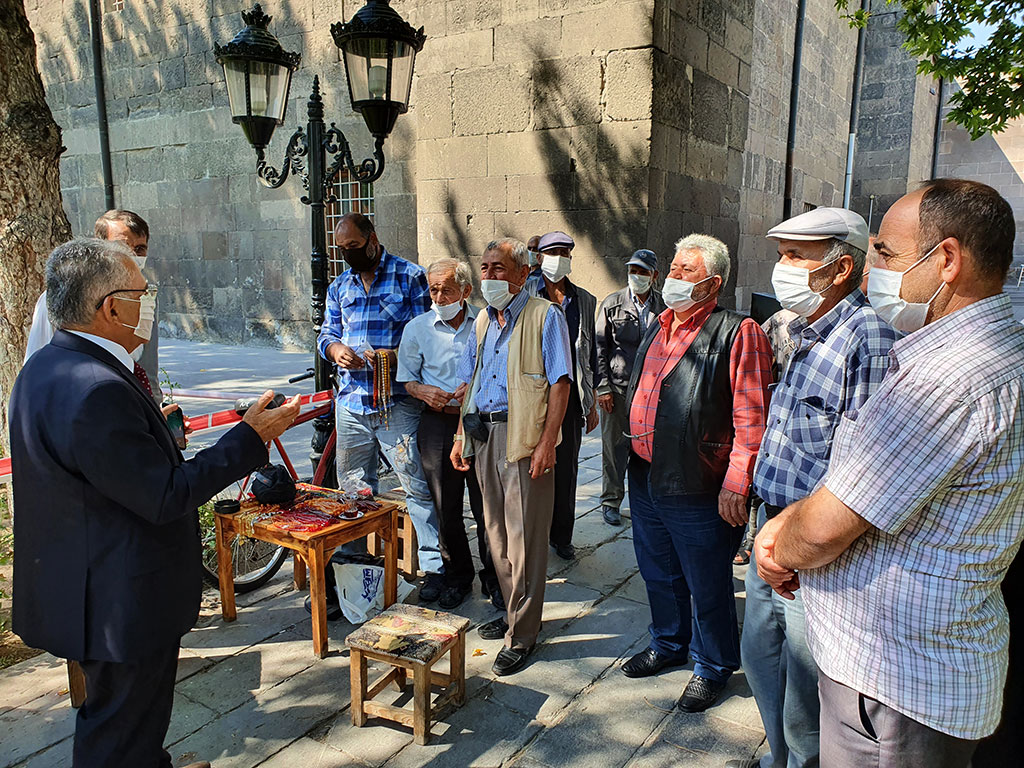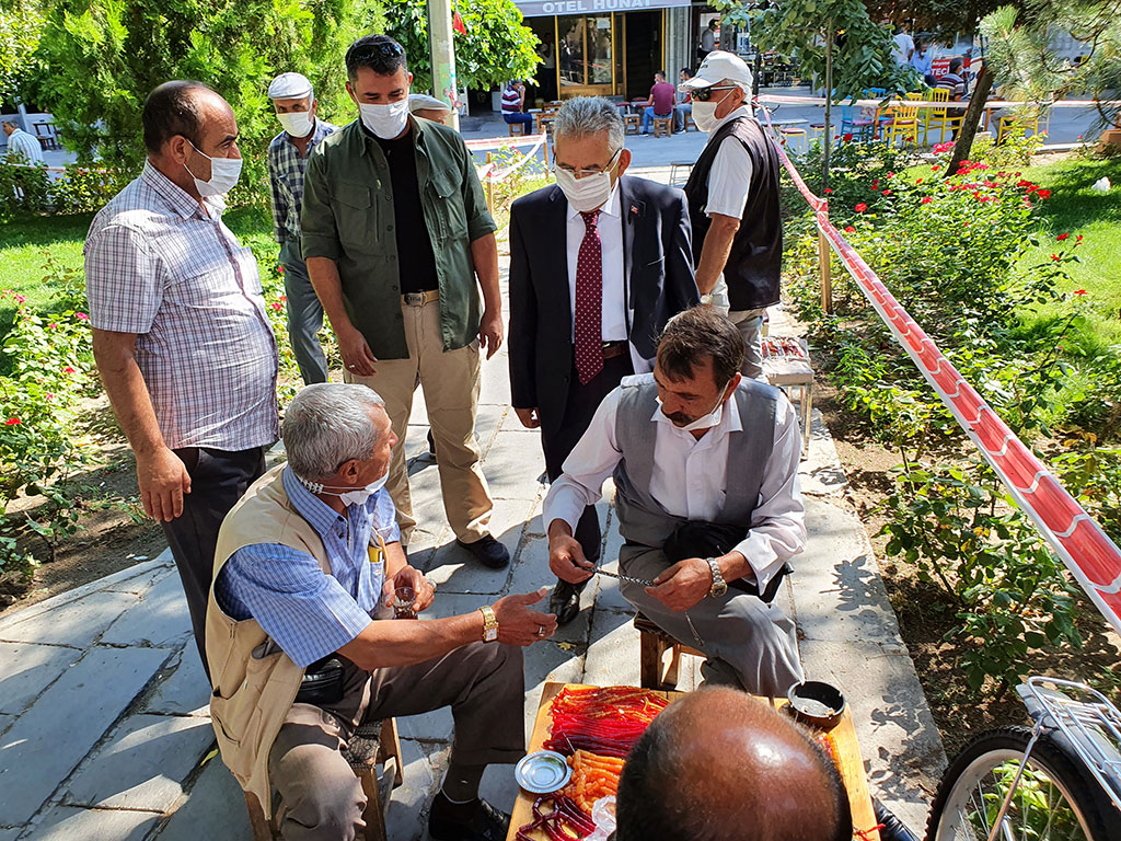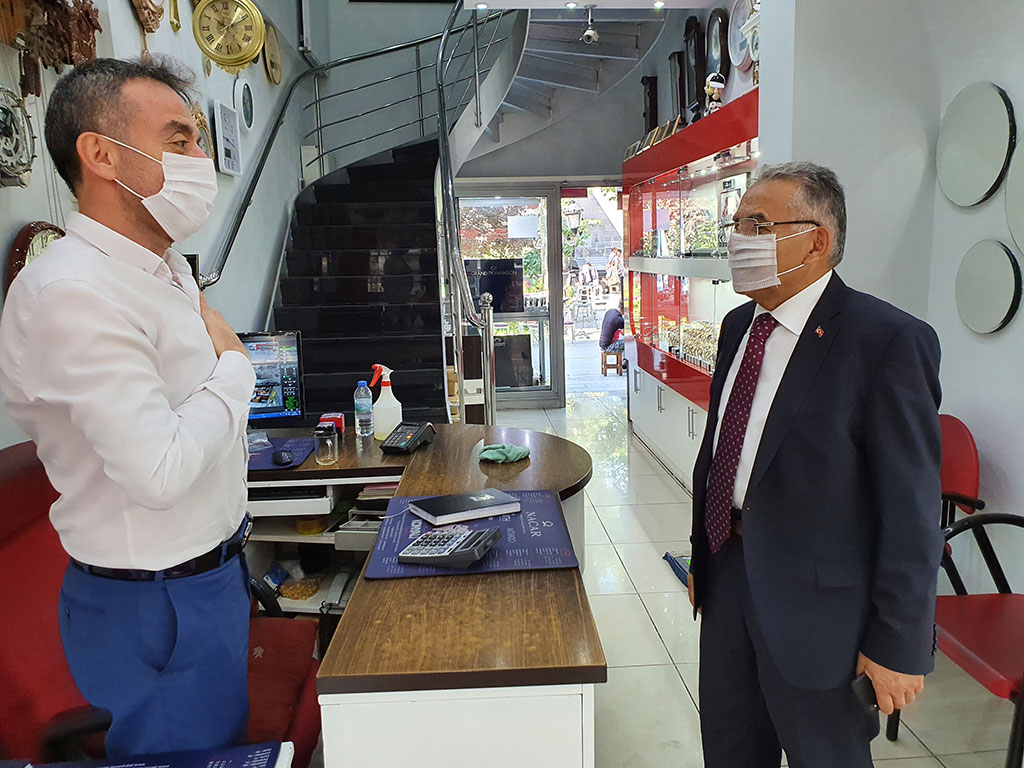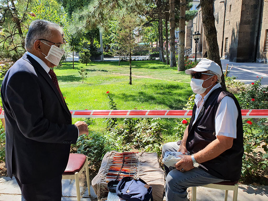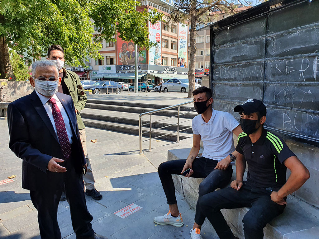 Büyükşehir Belediye Başkanı Dr. Memduh Büyükkılıç, pandemi dolayısıyla gerçekleştirdiği denetimlere devam etti. Hunat Mahallesi’nde esnaf ve vatandaşlarla görüşen Başkan Büyükkılıç, koronavirüs pandemi sürecinde en güçlü silahın maske, mesafe ve temizlik (MMT) olduğunu hatırlatarak, bu konuda Kayserili vatandaşların daha çok hassasiyet göstermesinin önemine işaret etti. Başkan Büyükkılıç, denetimlerde Kayseri’deki vatandaşların tamamına yakınının kurallara uyduğunu gözlemlediğini ve bunun sevindirici olduğunu ifade ederek, şunları kaydetti: “Bu Cuma gününde Hunat Hatun’un yaptırmış olduğu külliyenin önünde, gerek çay ocaklarımızdaki vatandaşlarımızın, gerek esnaflarımızın, gerekse iş adamlarımızın yoğun olduğu bu bölgede vatandaşlarımıza selam verdik. Gördük ki Kayserimizin insanları aşağı yukarı tamamına yakını kurallara uyuyorlar. Çünkü biliyorlar ki bu kurallar kendilerinin menfaati için, hem kendilerini korumak, hem karşıdaki vatandaşlarımıza zarar vermemek amacıyla. Sonuçta kazanan hepimiz olacak, çevremiz, şehrimiz, ülkemiz olacak. Dolayısıyla ben hemşehrilerimize minnet duyuyor teşekkür ediyorum. İnşallah gerek ülke, gerek dünyada, gerekse şehrimizde bir miktar hareketlenen korona virüsüne karşı yegâne savaşın maske, mesafe, temizlik olduğunu Sayın Cumhurbaşkanımızın hatırlattığı gibi bizler de hatırlatıyor, bu konuda gerekli hassasiyeti gösterilmesi gerektiğini tekrarlıyorum”