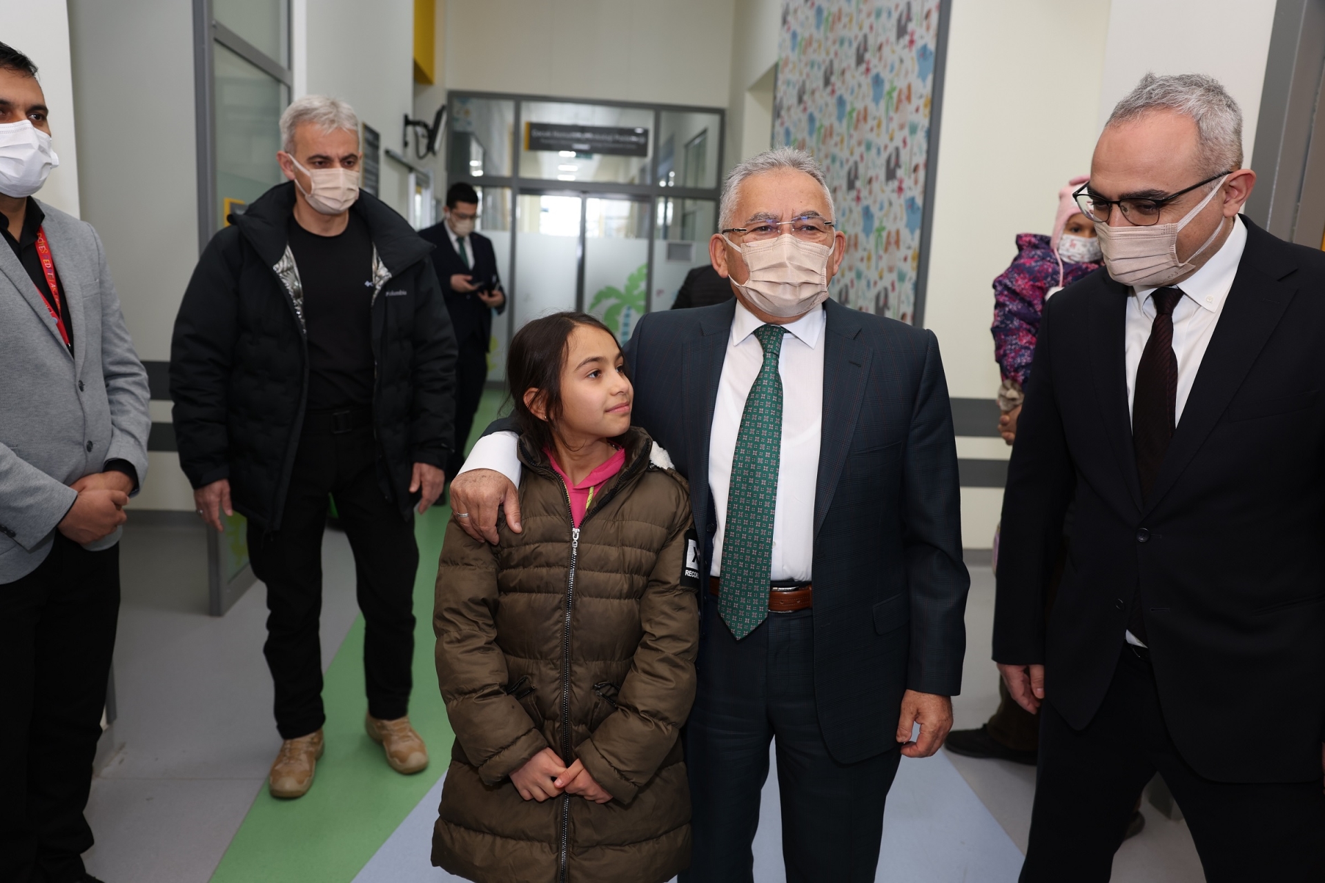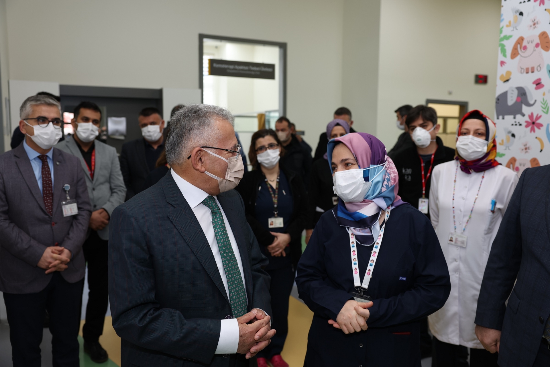 Horozoğlu’dan hastane hakkında bilgiler alırken, burada tedavi gören çocukları