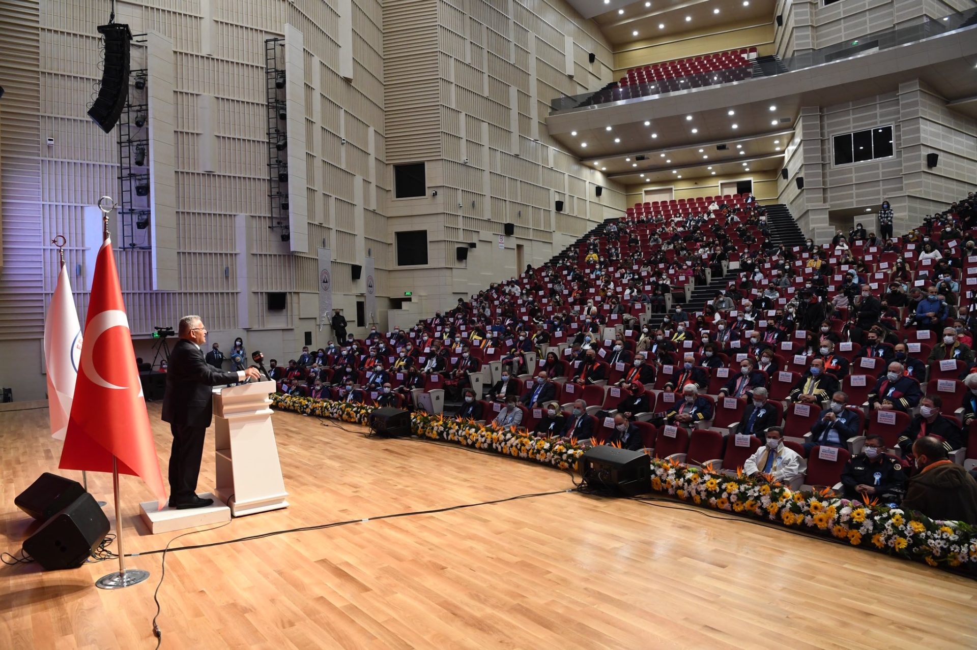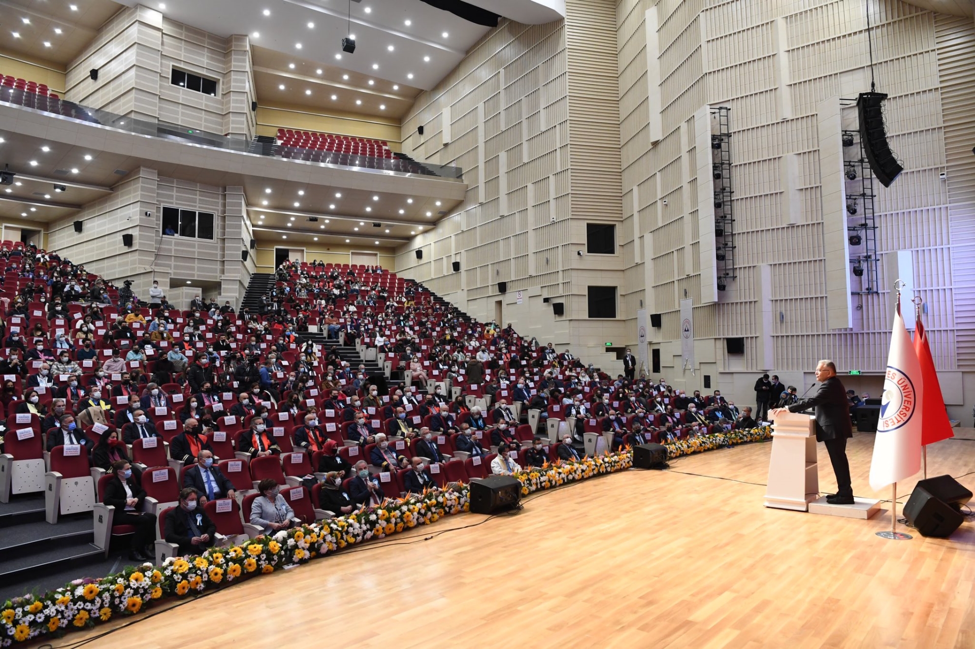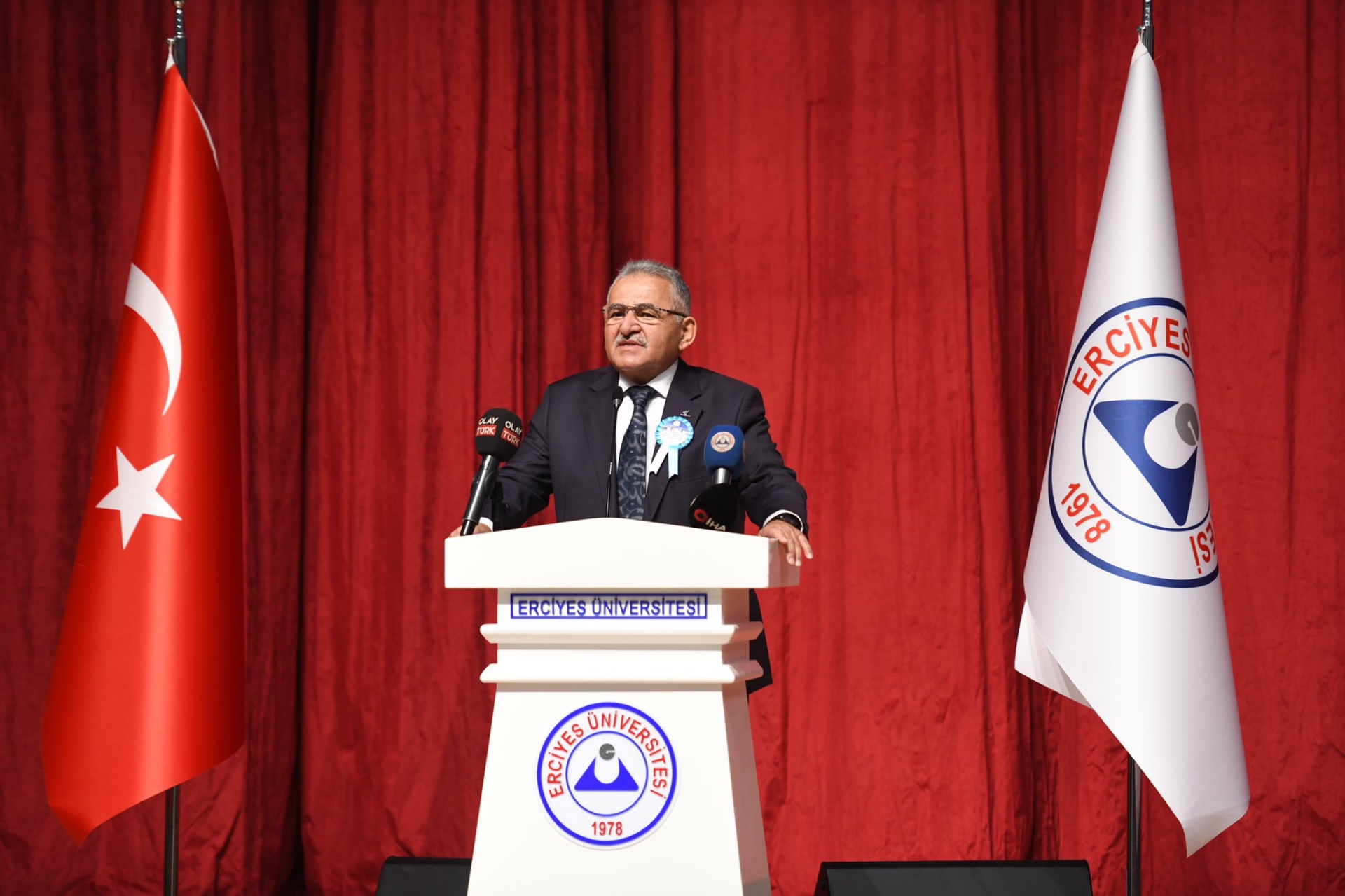 “Bunun yanında 5 tane üniversite. 5 diyoruz, niye 5 dediğimizi biliyorsunuz. Beşincisi de Sağlık Bilimleri Üniversitemizin Kayseri Tıp Fakültesi, nasıl da yakıştı Kayseri’mize. Cumhurbaşkanımıza ve YÖK’ümüzün kıymetli ekibine ben burada huzurlarınızda teşekkür etmek istiyorum. Akredite bir şehir, akredite bir üniversite ve dayanışan bir şehir. Kayseri denilince birliğin, beraberliğin dayanışmanın sembolü akla gelir. Bereketin sembolü akla gelir. Biraz önce söylediğim gibi ticaretin ve endüstrinin merkezi olarak biliniyor olsa da turizmde son süreçte attığımız adımlarla adeta Kayseri gerçekten kendisinin hak ettiği yere gelmeye başladığını ifade eden bir şehir. Sadece turizmden değil, sağlık alanında yaptığı çalışmalarla gurumuz olan üniversitemiz sağlık altyapısı ve otuza yakın kuruluşuyla bunun on beş tanesinin de akredite olduğunu biliyorum. Bu anlayış içerisinde yurt içinden, yurt dışından, Uluslararası Sağlık Hizmetleri A.Ş. ile yaptığımız protokol ile adeta sağlığın merkezi haline geldi. Yeni destinasyonlar oluştu. Geliyor tedavisini oluyor, sonra gidiyor Erciyes’imizde kayıyor ve memleketine gidiyor. Binlerce insandan söz ediyoruz.”
