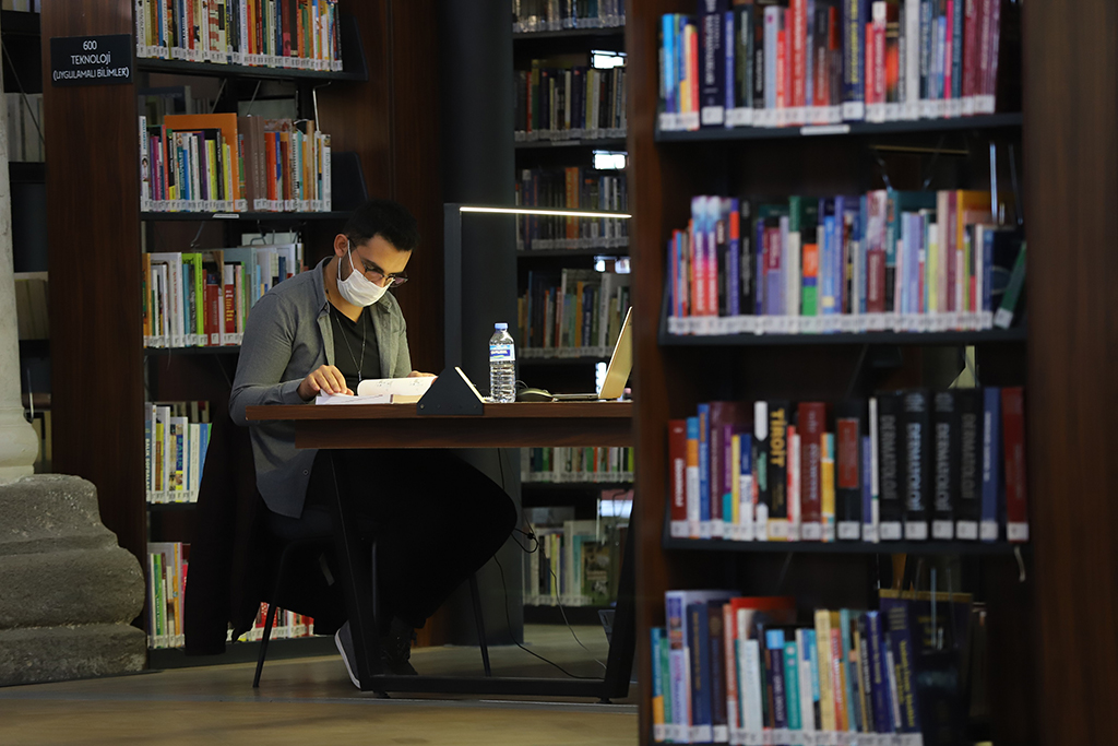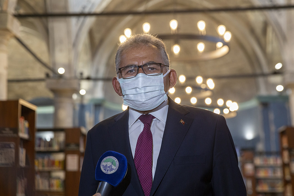 Kayseri Büyükşehir Belediye Başkanı Dr. Memduh Büyükkılıç, şehrin merkezindeki en önemli kütüphanelerinden biri olan Meryem Ana Şehir Kütüphanesi’ni ziyaret ederek, kütüphanede kitap okuyan ve ders çalışan öğrencilerle sohbet etti. Başkan Büyükkılıç, “Sevgili yavrularımıza başarılar diliyorum. Fırsat var, imkan var, kitap var. Geriye de çalışmak ve başarmak kalıyor. Kütüphanelerimiz pandemi koşullarına uygun hale getirildi, istifade etsinler” dedi. Büyükşehir Belediyesi’nin şehre kazandırdığı önemli bir kültür yatırımlarından biri olan Meryem Ana Şehir Kütüphanesi’nde incelemelerde bulunan Büyükşehir Belediye Başkanı Dr. Memduh Büyükkılıç, Şehir Kütüphanesi’ne kütüphane kartı ile giriş yaptı. Kütüphanede kitap okuyan ve ders çalışan öğrencilerle sohbet eden Başkan Büyükkılıç, şehrin göbeğinde açılan Meryem Ana Şehir Kütüphanesi’nin ilk günden beri büyük ilgi gördüğünü ve bunun kendisini çok mutlu ettiğini ifade etti. Büyükkılıç, “Şehrimizin merkezindeki en önemli kütüphanelerimizden birisi. Daha önce 500 yıllık kilise olarak hizmet vermiş ve sonrasında değişik fonksiyonlar yüklenmiş. Son süreçte de restore edildikten sonra biz, kütüphane olarak değerlendirmeyi uygun bulduk. 25 bini basılı, 22 bini elektronik, 3 bini sesli olmak üzere toplam 50 bin kitap bulunuyor. 200 kişilik olan kütüphanede tanıtım ve tarama kiosklarıyla kitaplara kolay ulaşım imkanı da sunuluyor. Tabii 200 kişilik ama şu an pandemiden dolayı, pandemi kurallarına göre kütüphanelerimiz açık. Pandemi koşullarına uygun şekilde de yavrularımız gelip buradan yararlanıyor. Kitaplar alındıktan hemen sonra hemen dezenfekte ediliyor. Girişlerde ateş ölçümü yapılıyor. Sık sık dezenfekte işlemleri de uygulanıyor. Yavrularımızın gönlü rahat olsun” ifadelerini kullandı. “SEVGİLİ YAVRULARIMIZA BAŞARILAR DİLİYORUM” Öğrencilerle sohbet edip, başarılar dileyen Başkan Büyükkılıç, kütüphanedeki koşulların gençleri memnun ettiğini belirterek, şunları söyledi: “Burada hem kitap okuyan, hem de ders çalışan öğrencilerimizle sohbet ettim. Herhangi bir talepleri var mı diye sordum. Koşullardan çok memnun olduklarını ifade ettiler. Bunlarda bizi sevindiriyor ve keyiflendiriyor. İlgili birimdeki kardeşlerimize teşekkür ediyorum. Sevgili yavrularımıza da başarılar diliyorum. Fırsat var, imkan var, kitap var. Geriye de çalışmak ve başarmak kalıyor. Kütüphanelerimizden pandemi koşullarına göre gelsinler. İstifade etsinler. Kayseri’yi daha yaşanabilir bir şehir yaparak, büyümesini ve gelişmesini sürdürmesini sağlamak için azami derecede gayret gösterirken, diğer yandan gelecek neslin başarılı, eğitimli, kaliteli, çağın gereklerini doğru okuyabilen, insanlığa değer katabilen bir nesil olabilmesi için her türlü imkânı hazırlıyoruz ve hazırlamaya da devam edeceğiz”
