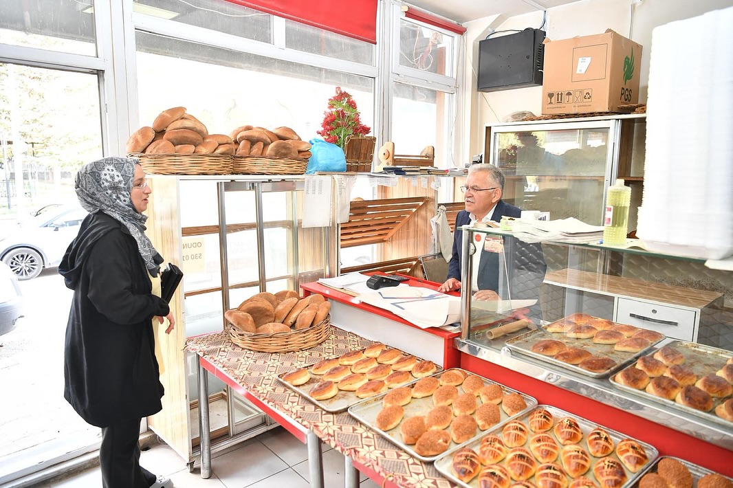 Esnaf ziyaretleri kapsamında bir fırında ocak başına geçen Büyükkılıç, “Sarız’da gerçekleştirdiğimiz incelemelerin ardından mis gibi ekmek kokusu bizi adeta içine çekti. Emekle yoğrulan, alın teriyle pişen o sıcak ekmeklerin her bir lokmasında açıkçası paylaşmanın ve üretmenin bereketini hissettik. Sohbetin de ekmeğin de keyfini çıkardık” diye konuştu.
