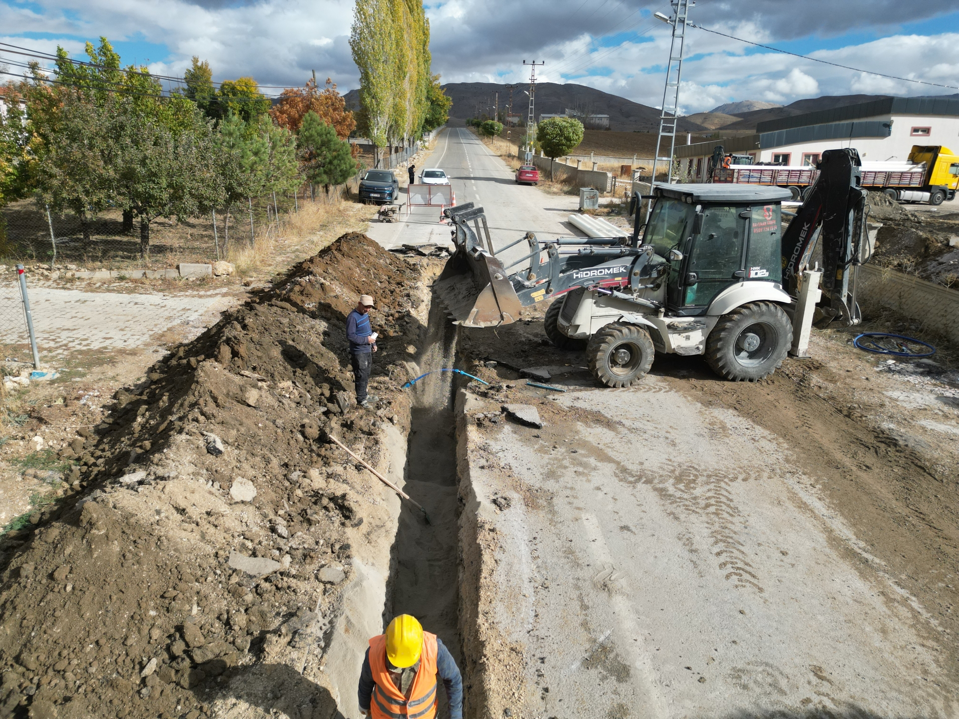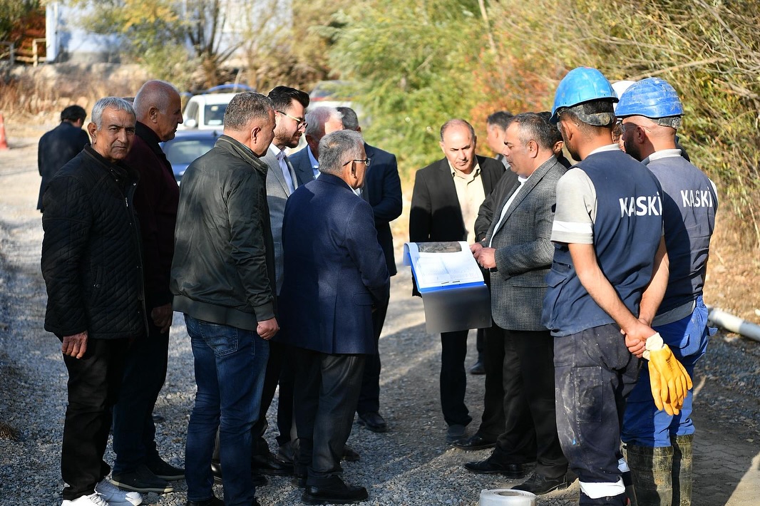 Sarız’da altyapı ve ulaşım alanında sürdürülen projelere de değinen Başkan Büyükkılıç, KASKİ Genel Müdürlüğü’nce yürütülen 16 kilometrelik içme suyu hattı yenileme çalışmalarını yerinde inceledi.