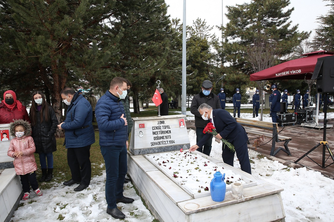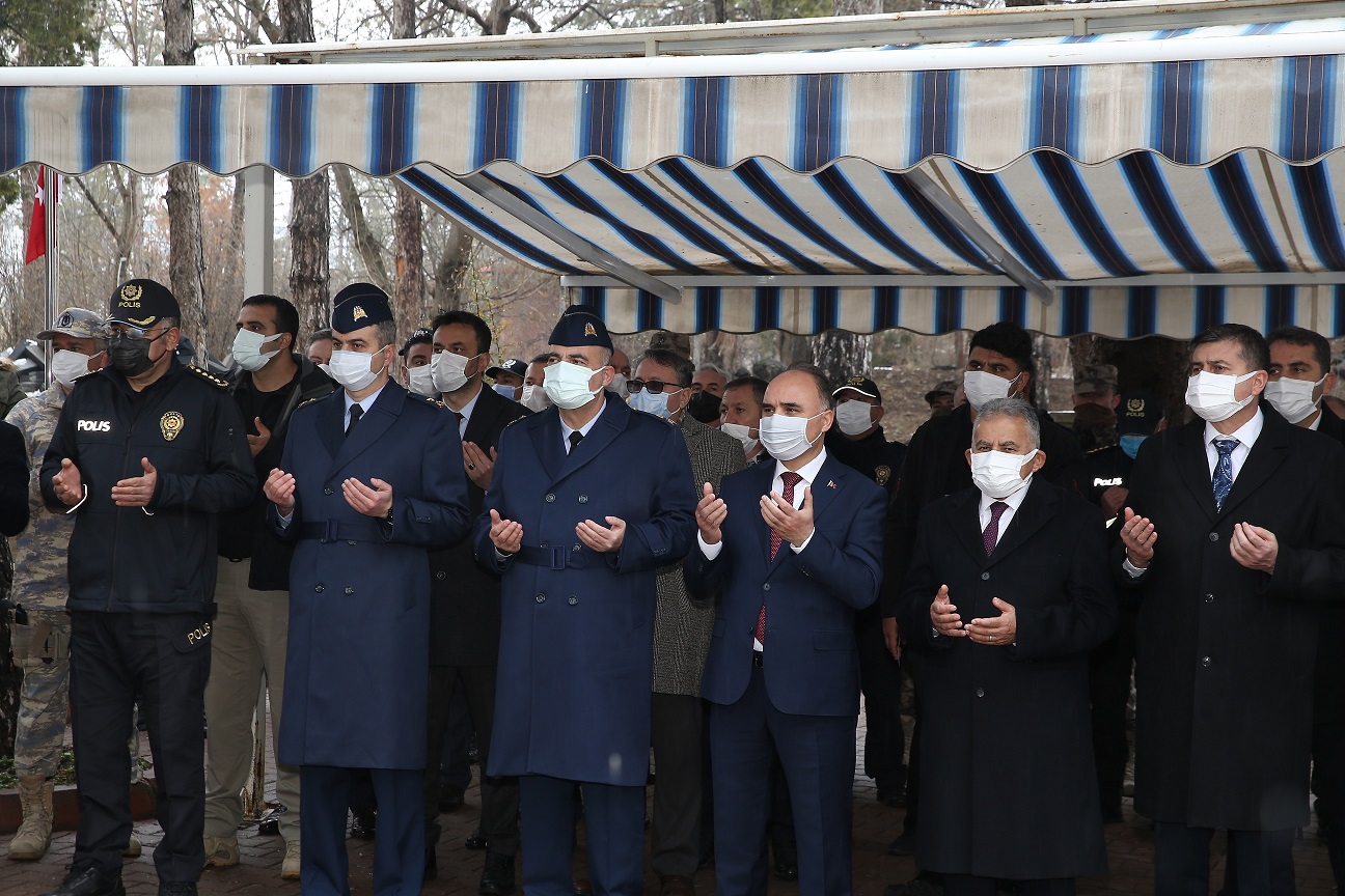 Şahin Güven’in duasının ardından protokol, şehit mezarlarına karanfil bıraktı.