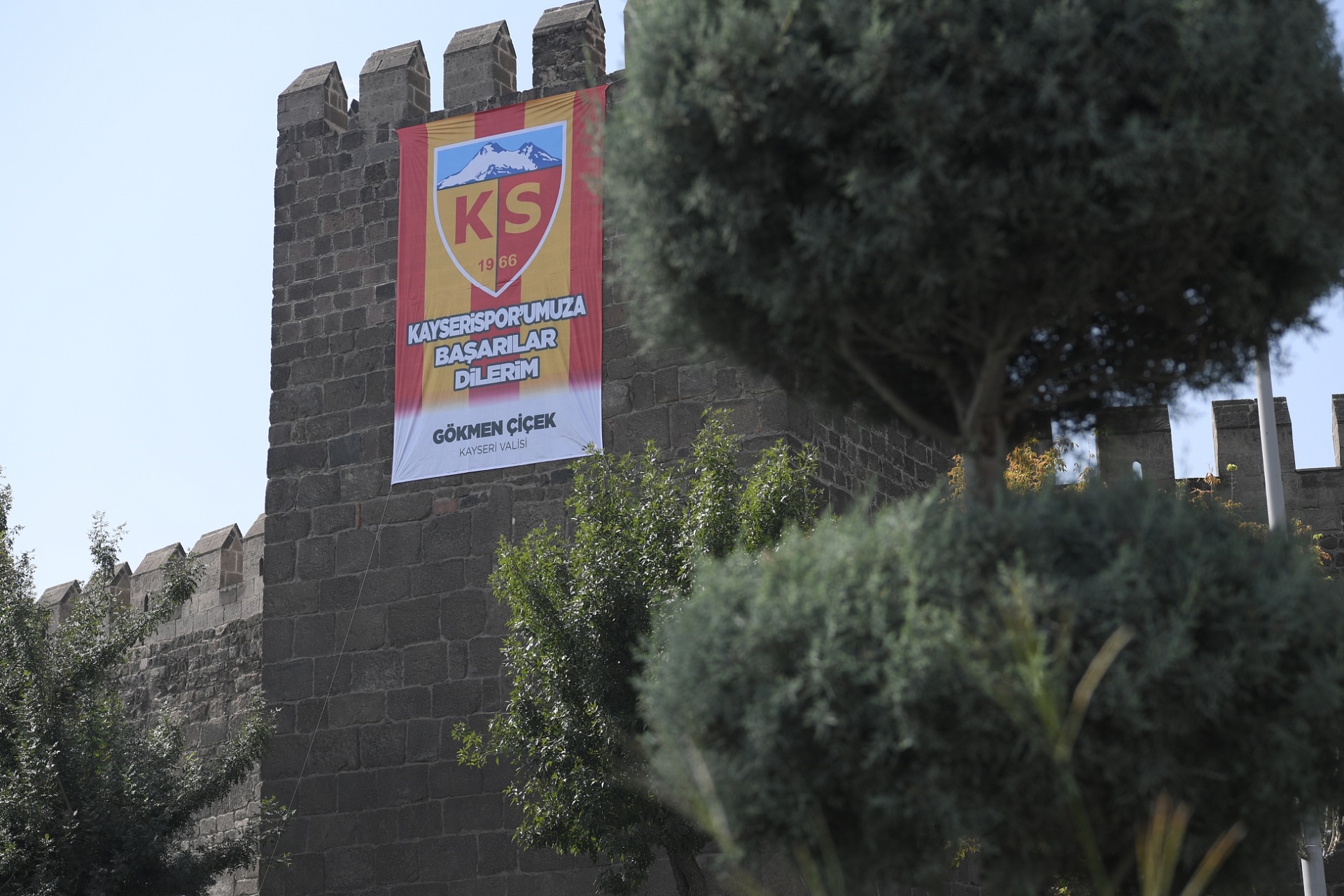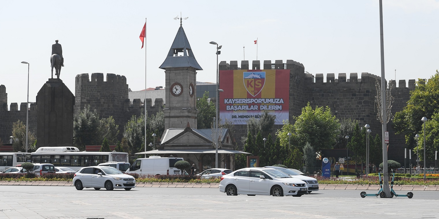 Büyükkılıç’ın imzalarının olduğu ‘Kayserispor’umuza başarılar dilerim’ temalı pankartlar, Meydan Kale Surları, Meydan Eski Beğendik Seramik,