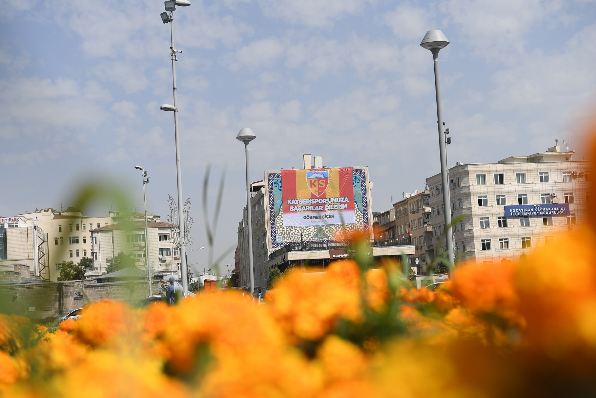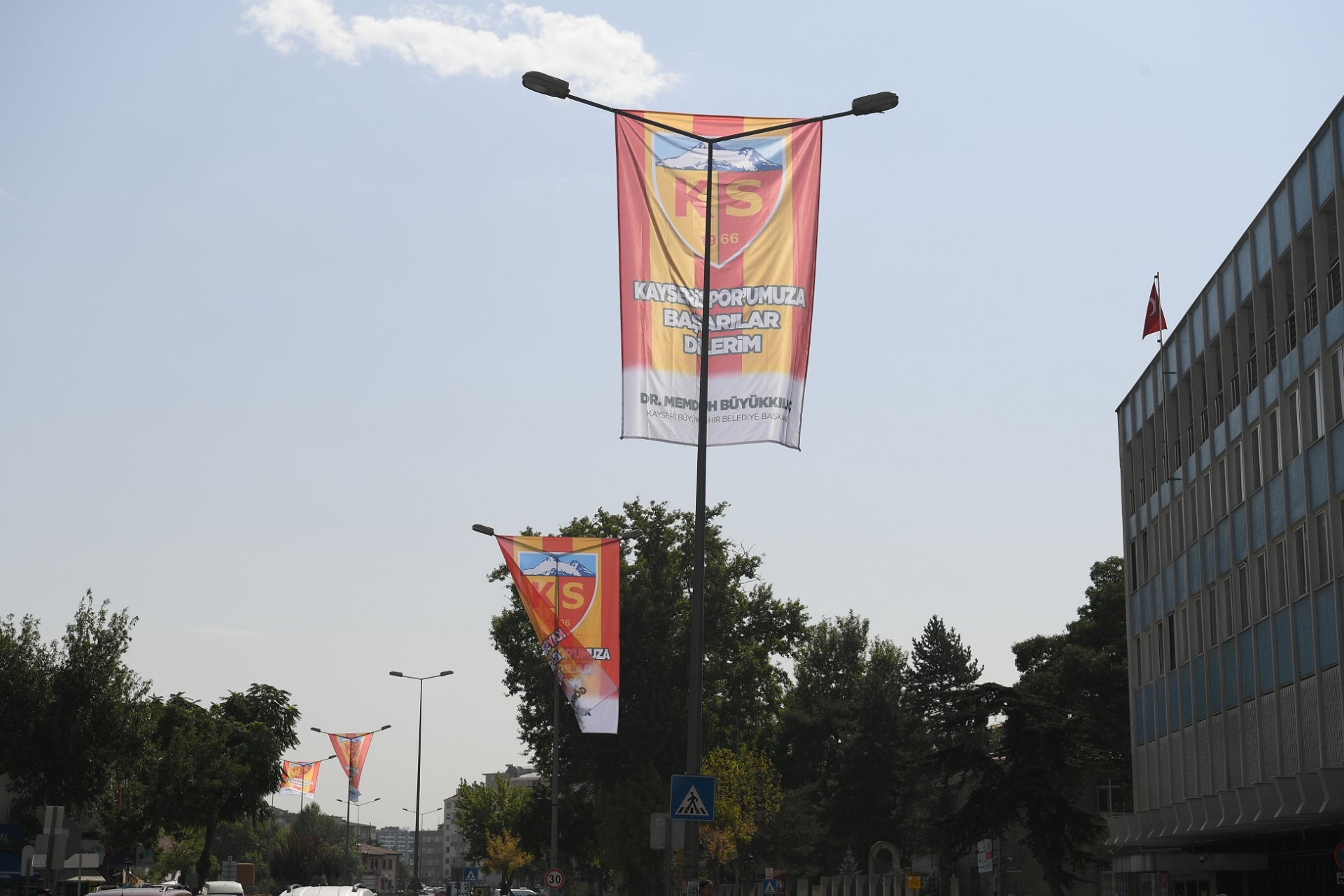 Kayseri şehir merkezindeki önemli noktaları destek pankartları ile donatan