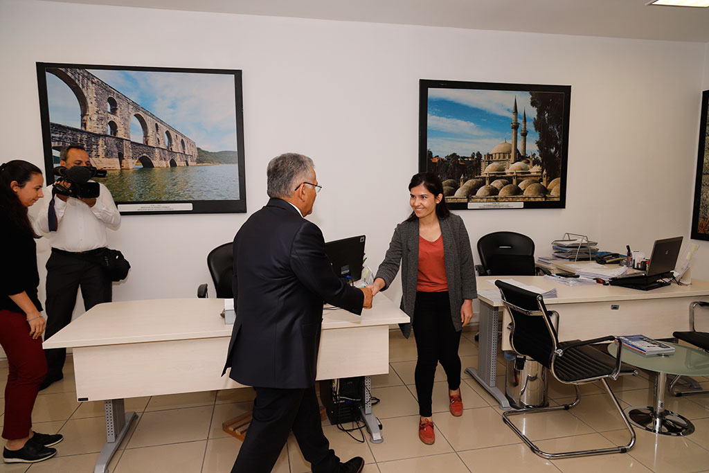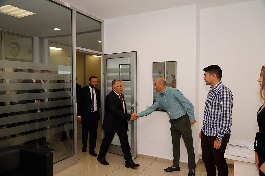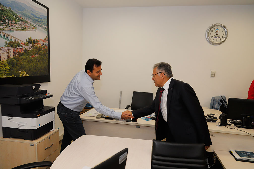 Kayseri Büyükşehir Belediye Başkanı Dr. Memduh Büyükkılıç Büyükşehir Belediyesi iştiraki olan Spor A.Ş.’yi ziyaret etti. Başkan Büyükkılıç burada idari personel ile tek tek görüşerek çalışmalarında kolaylıklar diledi. Kayseri Büyükşehir Belediye Başkanı Dr. Memduh Büyükkılıç her fırsatta mesai arkadaşlarıyla bir araya gelmeye özen gösteriyor. Büyükşehir Belediyesi’ne bağlı şirketlerle yakından ilgilenen Başkan Büyükkılıç bu geleneğini Spor A.Ş.’yi ziyaret ederek devam ettirdi. Genel Müdürlük binası kapısında Spor A.Ş. Genel Müdürü İbrahim Somtaş tarafından karşılanan Başkan Büyükkılıç ardından bütün idari birimleri tek tek gezerek personel ile çalışmaları hakkında sohbet etti. Bugüne kadar yapılan bütün çalışmaların bir ekip işi olduğunu ve bu ekibin çok daha güzel işlere imza atacağını inandığını belirten Başkan Büyükkılıç yapılan çalışmalar Kayseri halkının ve tüm Türkiye’nin takdirini topladığını belirtti. Genel Müdürlük ziyaretinin ardından Okçuluk Bölümü'ne geçen Başkan Büyükkılıç buradaki eğitmenlerden çalışmalar hakkında bilgi aldı. Son olarak Kadir Has Stadyumu’nda incelemelerde bulunan Başkan Büyükkılıç teknik ekipten zemin ve diğer konular hakkında bilgiler aldı.