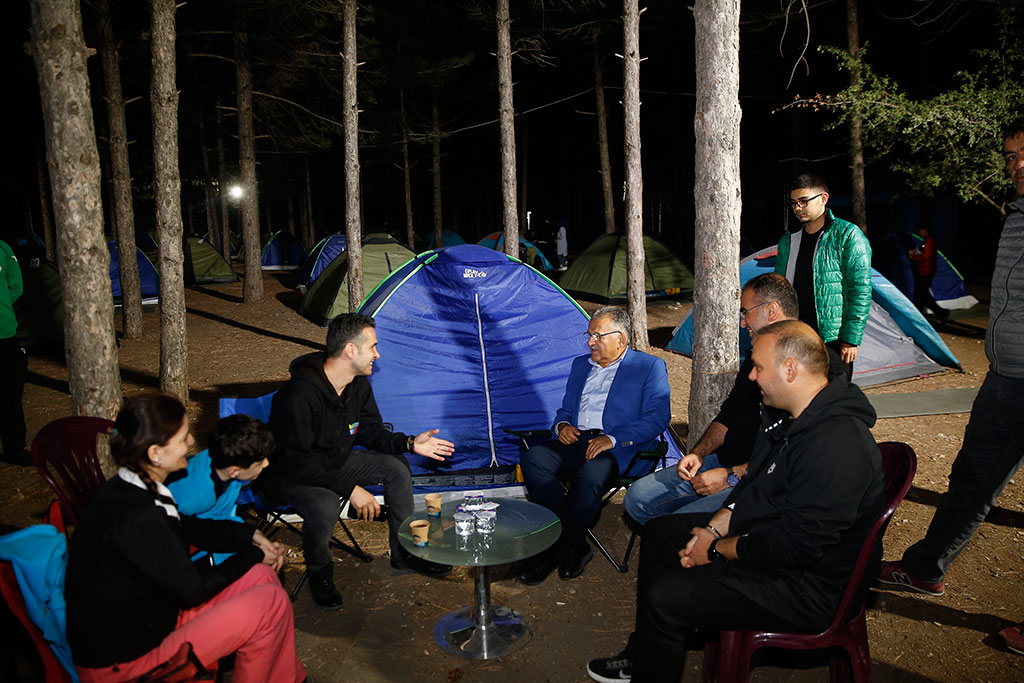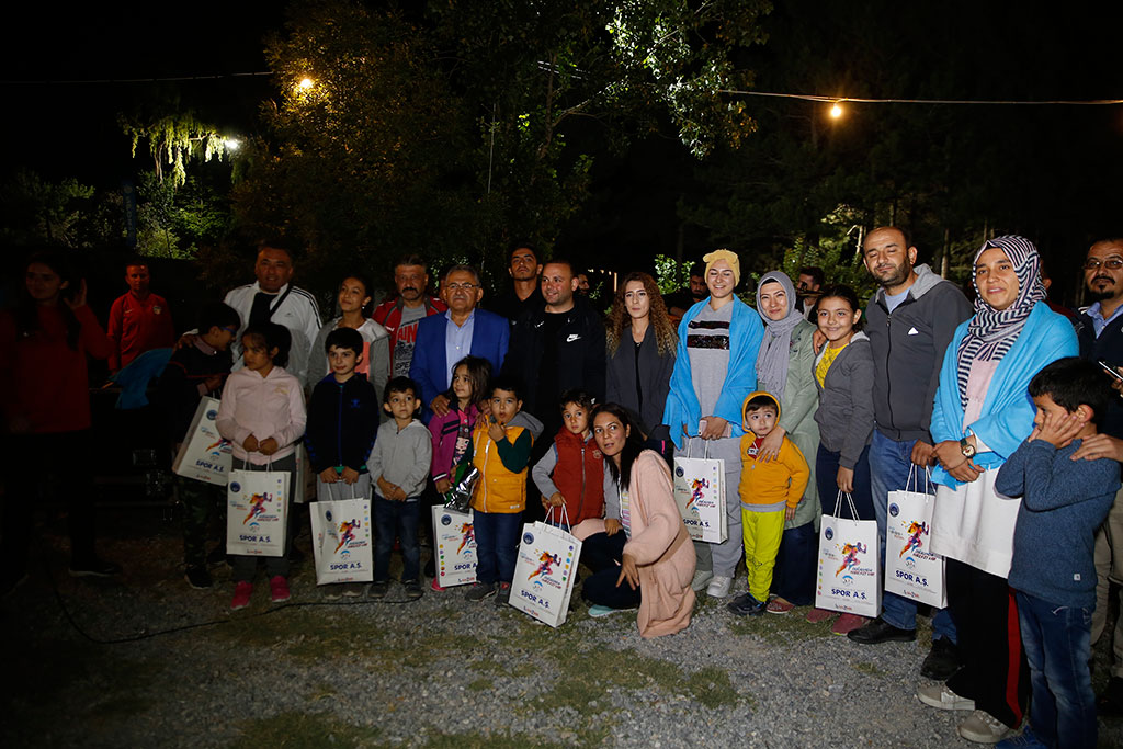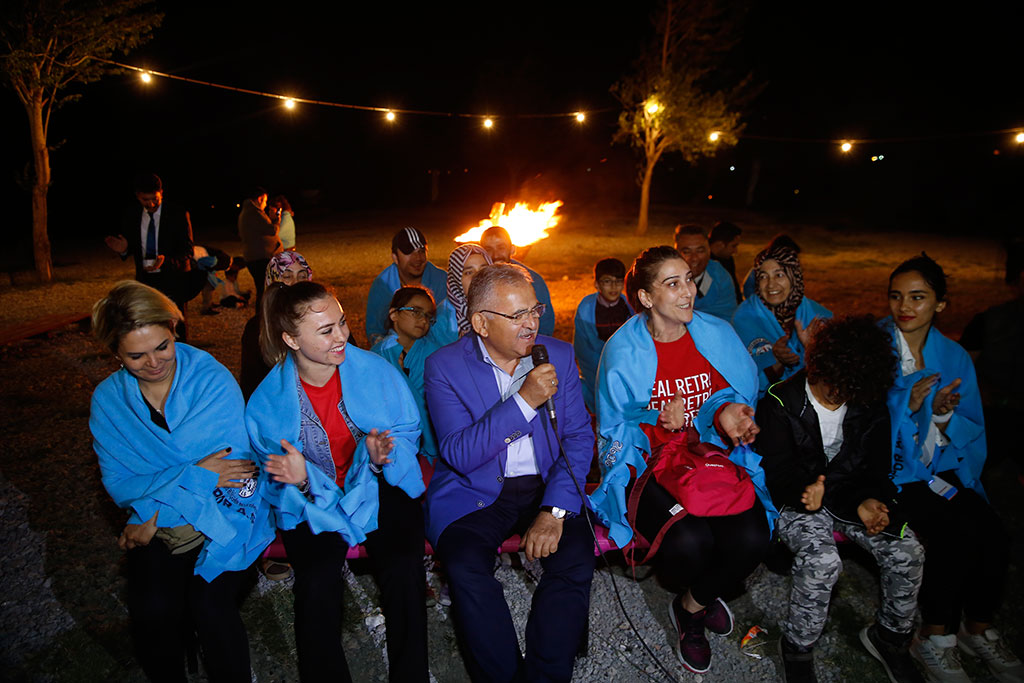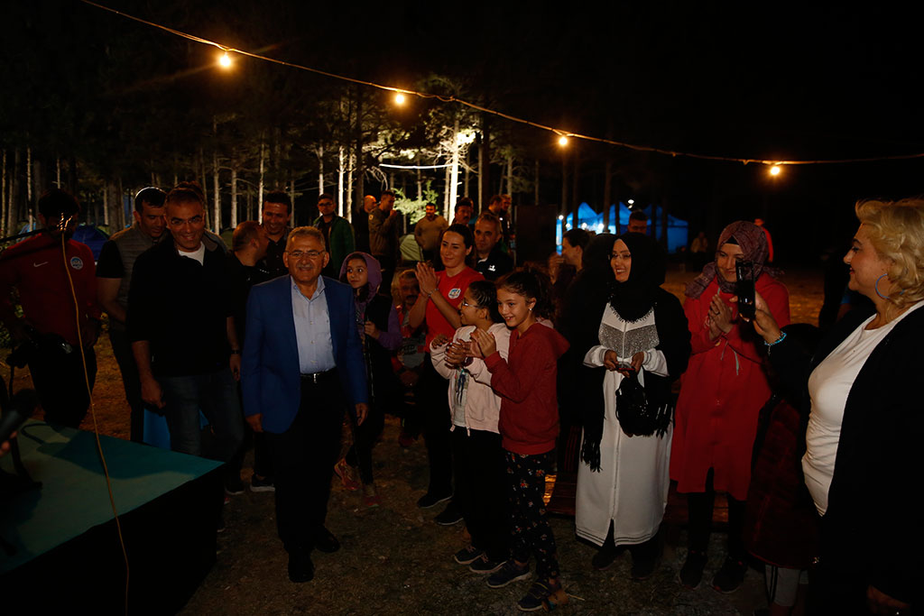 Kayseri Büyükşehir Belediye Başkanı Dr. Memduh Büyükkılıç, Spor A.Ş. tarafından her hafta farklı ailelerin katılımıyla Sarımsaklı Barajı’nda yapılan ve büyük takdir gören Doğa Kampı’na sürpriz bir ziyarette bulundu. Kampa katılan ailelerle sohbet eden Başkan Büyükkılıç, ateş başında gerçekleştirilen etkinlikte de türkü söyledi. Büyükşehir Belediyesi Spor A.Ş. tarafından üç yıl önce başlatılan Doğa Kampı çerçevesinde Sarımsaklı Barajı kenarında her hafta birbirinden güzel kamplar yapılmaya devam ediliyor. Öğleden sonra başlayan ve survivor parkuru, okçuluk, voleybol, masa tenisi, doğa yürüyüşü gibi etkinlikleriyle ailelere unutulmaz anlar yaşatan Doğa Kampı’nda akşam da ateş başında yarışmalar gerçekleştiriliyor. Spor A.Ş.’nin bu hafta yapılan kampını sürpriz bir şekilde Büyükşehir Belediye Başkanı Dr. Memduh Büyükkılıç da ziyaret etti. BAŞKAN BÜYÜKKILIÇ TÜRKÜ SÖYLEDİ Kampı, ateş başındaki etkinlikler sırasında ziyaret eden Başkan Memduh Büyükkılıç; gruplar halinde, verilen bir kelimeyle türküler söylenen yarışmaya bizzat iştirak etti. Başkan Büyükkılıç, katıldığı grupla birlikte “Karadır Kaşların” adlı türküyü seslendirdi. Eşler arasında yarışmaların da yapıldığı gecede canlı müzik de yer aldı. Başkan Büyükkılıç, başta Gesibağları olmak üzere söylenen türkülere de eşlik etti. AİDİYET VURGUSU Büyükşehir Belediye Başkanı Memduh Büyükkılıç, ateş başında kısa bir konuşma yaparak böylesine güzel bir etkinlikten dolayı emeği geçenlere teşekkür etti. Güzel ve güvenilir bir ortamda insanların zaman zaman kendilerine vakit ayırarak güzel anlar yaşamaları gerektiğini ifade eden Başkan Büyükkılıç, konuşmasında aidiyet vurgusu da yaptı. Kayseri’nin herkesin gurur duyacağı bir şehir olduğunu dile getiren Başkan Büyükkılıç, “Kayseri; herkesin gıpta ile baktığı, takdir ettiği, gururla bahsettiği bir şehir. Malatya’daki Tarihi Kentler Birliği Toplantısında da Kayseri ile ilgili güzel tespitler yapıldı. Şehrimizin ve birbirimizin kıymetini bileceğiz. Aidiyet duygusu ile ailemizi, okulumuzu, şehrimizi, ülkemizi sahipleneceğiz. Allah’a şükür Kayseri’de Büyükşehirlerin konforu var; ama büyükşehirlerin sıkıntısı yok. Şehrimizin kıymetini bilmeliyiz” dedi. Başkan Memduh Büyükkılıç, gecede kamp süresince yapılan yarışmalarda birinci olanlara hediyelerini verdi. Başkan Büyükkılıç, daha sonra kamp alanını gezerek ailelerle sohbet etti.