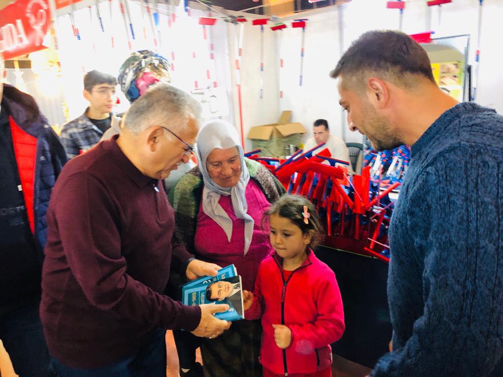 Başkan Büyükkılıç, fuarı ziyaret eden genç ve çocuklara da kitap hediye etti.