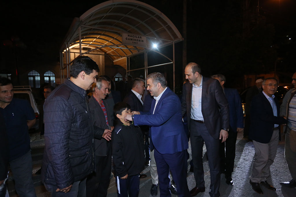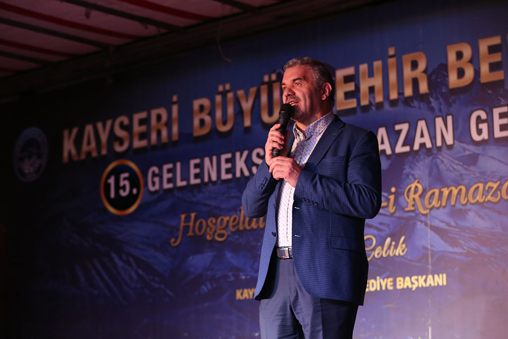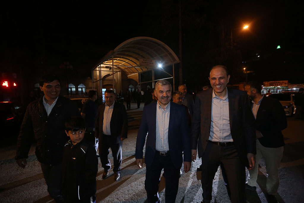 Büyükşehir Belediye Başkanı Mustafa Çelik, Ramazan’ın altıncı gecesini Hacılar’da geçirdi. Teravih namazı sonrası Hacılar esnafını ziyaret eden Başkan Çelik, Büyükşehir Belediyesi’nin Ramazan Tırı etkinliklerini de Hacılarlılar ile birlikte izledi. Büyükşehir Belediye Başkanı Mustafa Çelik, teravih namazını Hacılar’da kıldı. Başkan Çelik, namaz sonrası cemaatle bir süre sohbet etti. Büyükşehir Belediye Başkanı Çelik, daha sonra AK Parti İl Başkanı Fatih Hasyüncü ve Hacılar Belediye Başkanı Doğan Ekici ile birlikte esnafları ziyaret etti. Başkan Mustafa Çelik, Büyükşehir Belediyesi’nin Ramazan Tırı etkinliklerini de takip etti. Her akşam bir ilçede ya da büyük bir mahallede Ramazan ayına özel etkinlikler gerçekleştiren Ramazan Tırının Hacılar programı da büyük ilgi gördü. Program Kuranı-ı Kerim’in okunmasıyla başladı. “UYUMLU ÇALIŞMANIN BEREKETİNİ YAŞIYORUZ” Etkinlik alanında halka hitap eden Büyükşehir Belediye Başkanı Çelik, Kayseri’nin özellikle belediyecilik başta olmak üzere her anlamda örnek olduğunu ifade ederek, “Cennet gibi bir ülkede yaşıyoruz ve cennet gibi bir şehrimiz var. Aynı zamanda örnek bir şehirdir Kayseri. Belediyecilik açısından hangi iş olursa olsun Kayseri’ye bakın denir. Uyum kültürü ile çalışıyoruz. Bu uyum kültürünün getirdiği bereket hizmetlerimize de yansıyor. Başka şehirlerde 10-15 yılda yapılmayacak projeleri 3 yılda yaptık. Bundan sonra da aynı tempoyla hizmet etmeye devam edeceğiz” dedi. Büyükşehir Belediye Başkanı Mustafa Çelik’in konuşmasının ardından Ramazan etkinlikleri Karagöz ve Hacivat ile başladı. Gece boyunda orta oyunu, çocukların katıldığı yarışmalar, illüzyon gösterisi, tasavvuf müziği ve semazen gösterisi yapıldı.