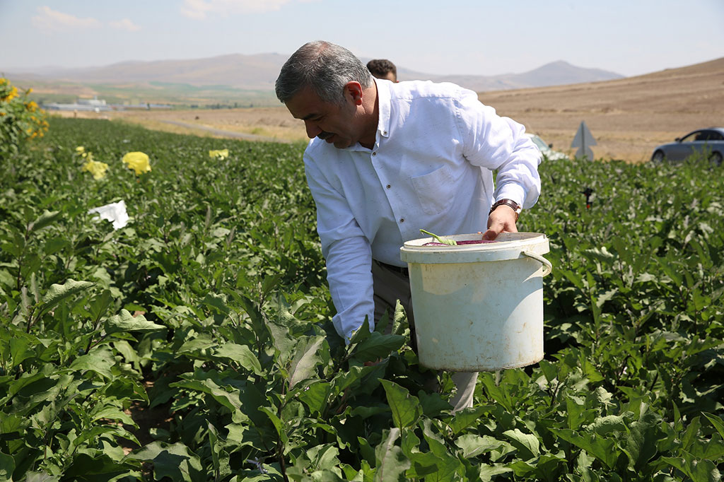 Büyükşehir Belediye Başkanı Mustafa Çelik, Beydeğirmeni Besi Bölgesi’nde yaptığı incelemelerin ardından Süksün’de tarladan sebze toplayan bir aileyi ziyaret etti. Başkan Çelik, aileyle birlikte bizzat tarlada çalışarak patlıcan topladı. Büyükşehir Belediye Başkanı Mustafa Çelik, Beydeğirmeni dönüşünde Süksün’de tarlada çalışan bir aileyi gördü. Aracını durdurarak aileyi ziyaret eden Başkan Çelik, kolaylıklar diledi ve bir süre sohbet etti. Daha sonra tarlaya girerek aileye yardım eden Başkan Mustafa Çelik, eline kovayı aldı ve tarladan patlıcan topladı. Bir süre tarlada hemşehrileriyle birlikte çalışan Başkan Mustafa Çelik, bol ve bereketli kazançlar dileyerek Süksün’den ayrıldı.