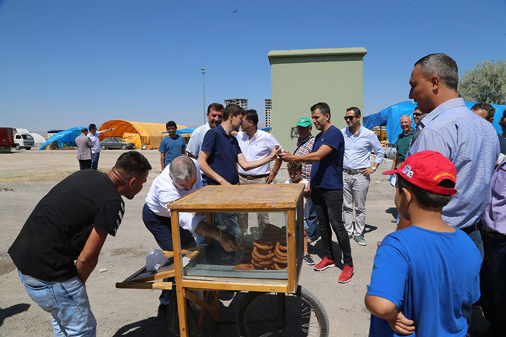 Esnaf ve vatandaşlarla sohbet eden Başkan Çelik, Kurban Pazarı’nda bulunanlara tatlı da ikram etti. Başkan Çelik, esnaflarla da oturup çay içerek sohbet etti.