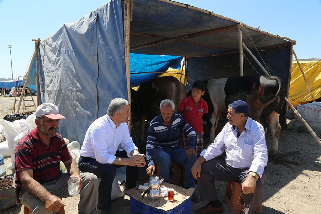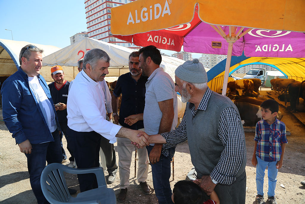 Büyükşehir Belediye Başkanı Mustafa Çelik, önce Serkent’te kurulan kurban pazarını ziyaret etti. Kurban pazarındaki esnaflarla görüşen Başkan Çelik, pazara nereden geldiklerini sordu ve pazardaki kurbanlıklarla ilgili bilgi aldı.