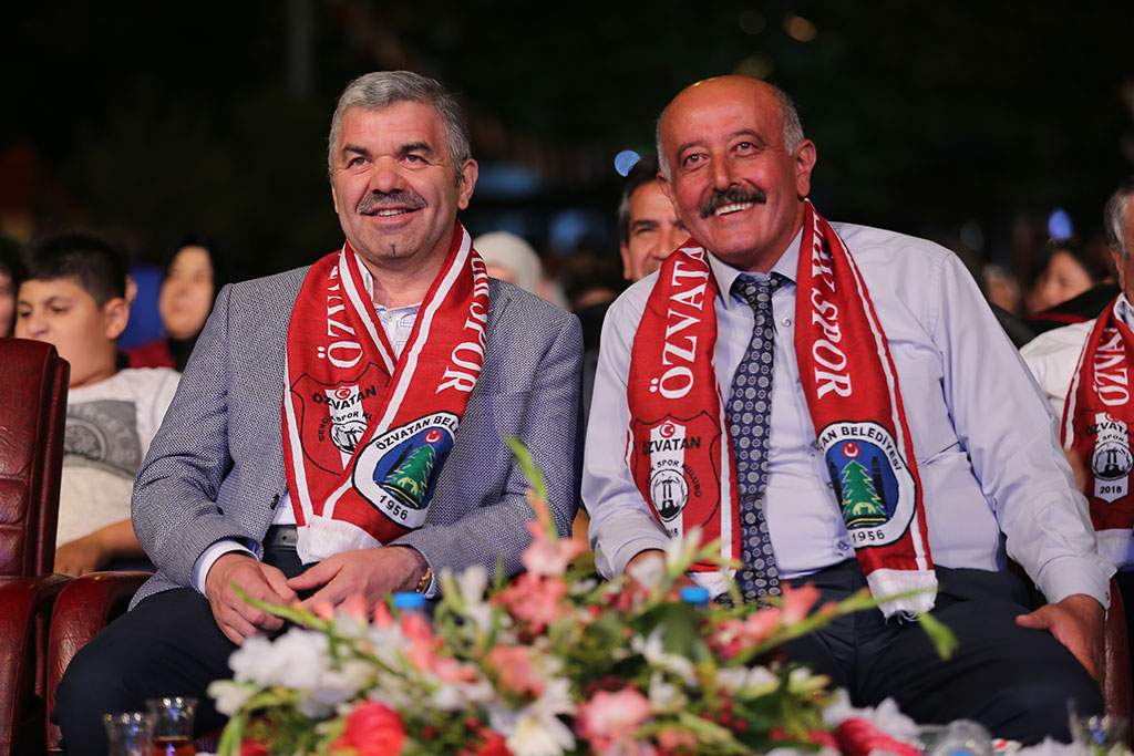 Büyükşehir Belediye Başkanı Mustafa Çelik, Özvatan’da düzenlenen Geleneksel Kültür ve Turizm Şenlikleri’ne katıldı. Şenlik alanında yaptığı konuşmada birlik beraberlik vurgusu yapan Başkan Çelik, ilçelere ellerinden gelen desteği vermeye devam ettiklerini söyledi. Özvatan Belediyesi tarafından düzenlenen şenliklere Büyükşehir Belediye Başkanı Mustafa Çelik’in yanı sıra Kayseri Eski Milletvekili Süleyman Korkmaz, MHP İl Başkanı Bakir Ersoy, Özvatan Belediye Başkanı Halit Demir ve kalabalık bir halk topluluğu katıldı. Şenlikte yaptığı konuşmada ilçelerde yapılan festival ve şenlikleri çok önemsediğini ve hemen hepsine katılmaya çalıştığını dile getiren Başkan Mustafa Çelik, “Şenlik ve festivaller dostluğu ve kardeşliği pekiştiren, birlik beraberliği kuvvetlendiren, hemşehrilik duygularını artıran organizasyonlar oluyor. Zamanım elverdiğince katılmaya çalışıyorum” dedi. Hiçbir ayrım yapmadan tüm ilçelere hizmet vermeye çalıştıklarını ve ilçelerin kalkınması için büyük gayret gösterdiklerini ifade eden Başkan Çelik, “Bir kişi din düşmanı, vatan haini olmasın, bu vatanı sevsin, inandığı değerlere bağlı kalsın, Türk Milleti’nin yaşadığı bu topraklara ihanet etmesin yeter bize. Onun dışında hiçbir ayrılık ve gayrılık bizi ilgilendirmiyor. İlçelerin sosyal ve ekonomik imkanını artırmak için elimizden gelen gayreti gösteriyoruz. İlçelerimize yaptığımız kadın gençlik merkezleri, her ilçenin avantajlarına göre Özvatan’a verdiğimi arıcılık desteği bunlardan sadece bir kaçı. Önümüzdeki hafta inşallah asfalt ekiplerimiz de Özvatan’a girecek. İlçe belediyesinin imkanlarının elvermediği her hizmeti yapmaya gayret ediyoruz” diye konuştu. Konuşmaların ardından Özvatan Gençlik Spor Kulübü yönetim kurulu üyeleri Başkan Mustafa Çelik’e katkıları nedeniyle teşekkür plaketi takdim ettiler. Plaket takdimi sırasında konuşan Özvatan Belediye Başkanı Halit Demir, “Büyükşehir Belediye Başkanımız sağ olsun bir dediğimizi iki etmiyor. İlçemize çok büyük katkıları var” diyerek teşekkür etti. Büyükşehir Belediye Başkanı Çelik, ayrıca Özvatan’ın başarılı sporcularına madalyalarını taktı. Özvatan Kültür ve Turizm Şenlikleri halk oyunları gösterisi, Gülşen Kutlu konseri ve havai fişek gösterileri ile devam etti.