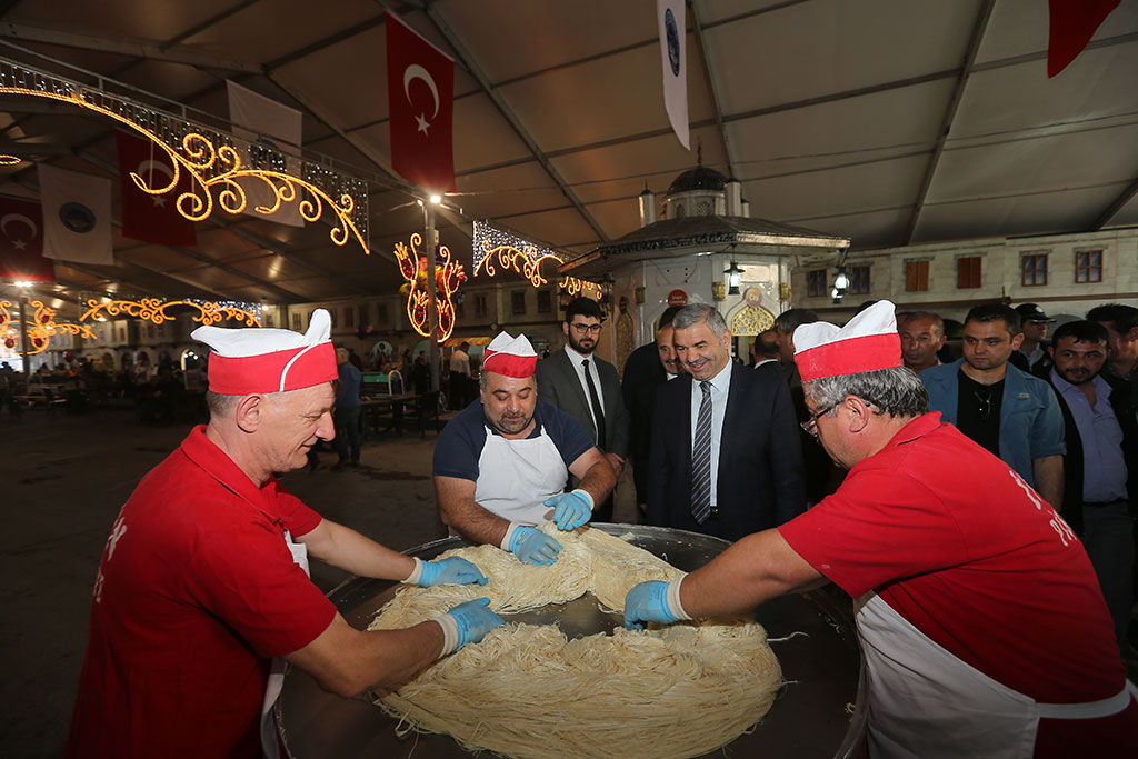 Büyükşehir Belediye Başkanı Mustafa Çelik, Ramazan Sokağı’nın açılışının ardından sokakta bulunan esnafları gezdi ve vatandaşlarla bir araya geldi. Başkan Çelik, pişmaniye üretiminin yapıldığı iş yerinin önünde ustalarla birlikte Kayseri’de telteli olarak bilinen pişmaniyeyi açtı. Büyükşehir Belediye Başkanı Mustafa Çelik, Ramazan Sokağı’nın açılışının ardından tüm esnafları ve stantları tek tek gezdi. KAYMEK tarafından açılan sergi alanındaki el emeği ürünleri inceleyen Başkan Çelik, daha sonra sokakta yer alan birbirinden güzel lezzetlerin üretildiği iş yerlerini gezdi. Bir iş yeri önünde pişmaniye yapan ustaları gören Başkan Mustafa Çelik, eldiven takarak ustalara katıldı. Başkan Çelik, pişmaniyenin Kayseri’de telteli olarak bilindiğini de belirtti. Büyükşehir Belediye Başkanı Çelik, Ramazan Sokağı’ndaki Ramazan ayına özgü lezzetlerin, bu ayın ruhunu yansıtan kitapların ve el emeği hediyelik eşyaların satıldığı iş yerlerini tek tek gezerek esnaflarla sohbet etti.