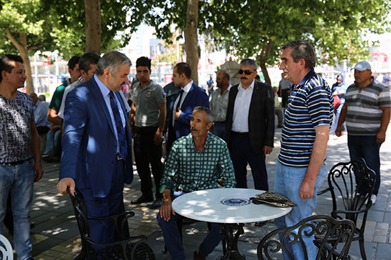 Bölge esnafı ve vatandaşlara yapılan ve yapılacak olan çalışmalarla ilgili bilgiler de veren Başkan Mustafa Çelik, bir taraftan kalıcı hizmetler yapmaya devam ederken diğer taraftan da marka şehre yakışır, şehrin estetiğine yönelik çalışmalar yaptıklarını söyledi. Bürüngüz Camii yanına vatandaşlarımızın rahat oturtabileceği, açık havada kullanılabilecek özellikte, kaliteli kent mobilyalarını yerleştirdiklerini ifade eden Başkan Çelik, "Hem şehri gezmeye veya çarşıda alışveriş yapmaya gelen hemşehrilerimiz buralarda dinlenebilecekler hem de esnaflarımızın masa sandalye ihtiyaçları böylece karşılanmış olacak. Bundan sonra bölgedeki yeme içme mekanlarının önünde masa sandalye olmayacak. AVM'lerdeki yeme içme katlarında olduğu gibi Büyükşehir Belediyesi tarafından konulan masa ve sandalyeler kullanılacak. Bunların bakım ve temizliğini de biz üstleneceğiz" dedi. Bölgede çevre düzenlemesi de yaparak çiçeklikler ve yeşil dokuyu artıracaklarını dile getiren Başkan Mustafa Çelik, "Yapılan uygulamayla ilgili halkımızdan güzel geri dönüşler aldık. Çarşımıza ayrı bir hava kattı. Avrupa'daki birçok önemli şehirde bu tarz kaliteli kent mobilyalarını görüyoruz" diye konuştu.