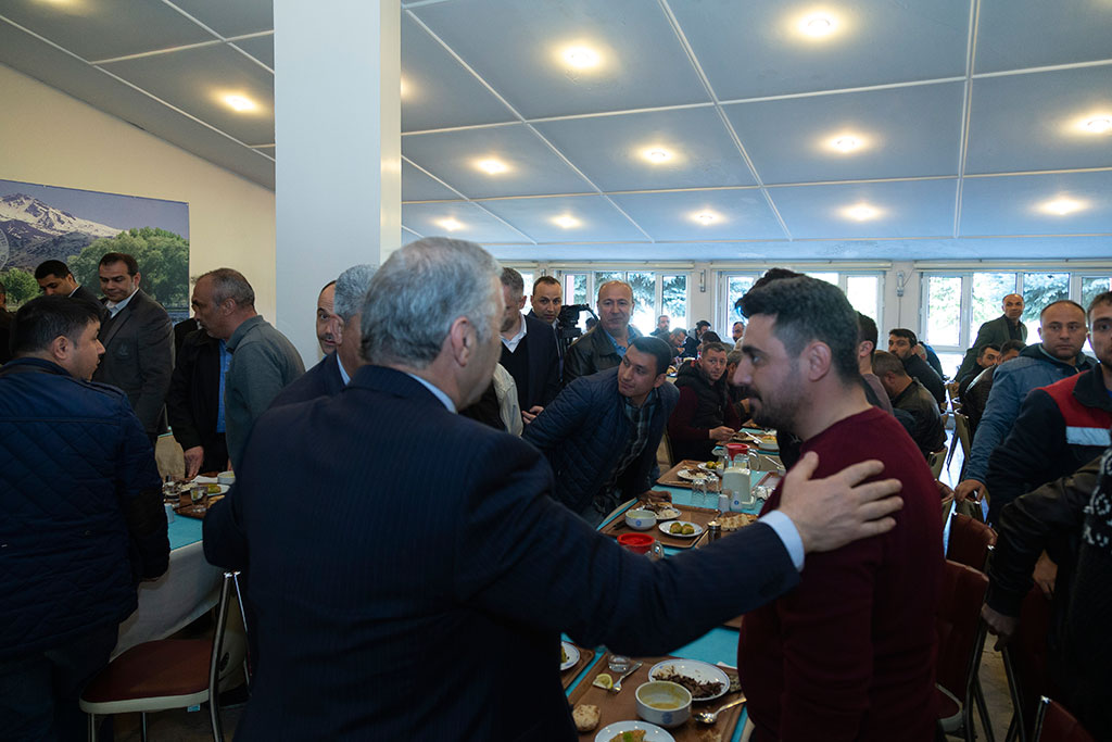 Kayseri Büyükşehir Belediye Başkanı Mustafa Çelik, belediye bünyesindeki birimlere veda ziyaretleri yapıyor. Bu kapsamda ilk ziyaretini KASKİ Genel Müdürlüğü’ne yapan Başkan Çelik, KASKİ personeliyle öğle yemeği yedi ve tüm çalışanlara gösterdikleri gayret nedeniyle teşekkür etti. Büyükşehir Belediye Başkanı Mustafa Çelik, KASKİ Genel Müdürü Ender Batukan tarafından karşılandı. Öğle yemeğini KASKİ yemekhanesinde yiyen Başkan Çelik, tabldotta sıraya girdi ve yemeğini kendisi aldı. Çalışanlarla birlikte yemeğini yiyen Başkan Çelik, KASKİ’nin çalışmalarından övgüyle bahsederek, “Türkiye’de örnek gösterilen bir kurum haline geldik” dedi. 4 yılda ilerde duayla anılacak işler yaptıklarını ifade eden Başkan Çelik, “Bu hizmetleri hep birlikte yaptık. Bundan sonra da bu vatana hizmet etmek için herkes kendi işini en iyi şekilde yapmak için gayret edecek. Görev süremiz içinde mesai kavramı gözetmeksizin gösterdiğiniz gayretli çalışmalar için teşekkür ediyorum. Ağabey-kardeş anlayışıyla çalıştık. İnşallah hiç kimsenin kalbini kırmamışızdır. Haklarınız helal edin” dedi.