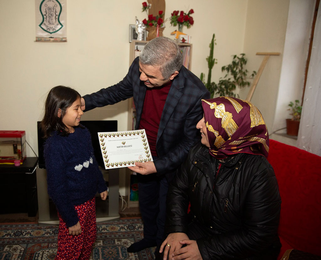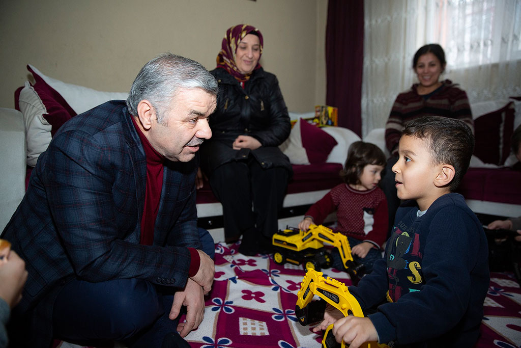 Kayseri Büyükşehir Belediye Başkanı Mustafa Çelik, 2019 yılının ilk gününde eşi İkbal Çelik ile birlikte dört eve çat kapı ziyarette bulundu. Gönül belediyeciliğinin en güzel örnekleri olan ziyaretlerde hayır duaları alan Başkan Mustafa Çelik, ihtiyaç duyan herkesin yanında olmaya devam edeceklerini söyledi. Büyükşehir Belediye Başkanı Mustafa Çelik ve eşi İkbal Çelik, yeni yılın ilk ziyaretini Esenyurt Mahallesi’nde oturan ve yaşlılara evlerinde destek kapsamında Büyükşehir Belediyesi tarafından hizmet sunulan Hediye ve Asker Taş ailesine yaptı. 64 yıllık evli çifti evlerinde ziyaret eden Başkan Mustafa Çelik, yaşlı çiftimizle sıcak ve samimi anlar geçirdi. Başkan Çelik’in yaşlılarımıza Büyükşehir Belediyesi’nin evlerinde verdiği destek hizmetini sorması üzerine çok teşekkür ederek sözlerine başlayan Asker Taş, “Bize bu hizmeti veren herkesten çok memnunuz. Allah hepsinden razı olsun. Her zaman dua ediyoruz” dedi. Başkan Çelik ve eşinin ziyaretinden büyük mutluluk duyduklarını da ifade eden Asker Taş, “Siz bizi sevindirdiniz Allah da sizi sevindirsin” diye konuştu. ÇOCUKLARLA YAKINDAN İLGİLENDİ Büyükşehir Belediye Başkanı Mustafa Çelik ve eşi İkbal Çelik, ikinci ziyaretlerini Eskişehir Bağları-Danişmentgazi Mahallesi’nde üç çocuğu ile birlikte yaşayan Zeynep Aktaş’a yaptı. Aktaş ailesinin çocukları Ege, Murat ve Eylül ile yakından ilgilenen Başkan Mustafa Çelik, çocuklara çeşitli hediyeler verdi. Çocuklarla sohbet eden ve gelecekte ne olmak istediklerini soran Başkan Çelik, Anne Zeynep Aktaş’a “Bu çocuklar bize emanet” dedi ve en ufak ihtiyaç durumunda haberdar edilmelerini istedi. “HER ZAMAN İHTİYAÇ SAHİBİNİN YANINDAYIZ” Büyükşehir Belediye Başkanı Çelik, üçüncü ziyaretini Eskişehir Bağları-Osmanlı Mahallesi’nde yaşayan Koç ailesine yaptı. İhtiyaç duyanın her zaman yanında olduklarını ifade eden Başkan Çelik, “Aslan Bey’in ve eşi Fatma Hanım’ın maalesef engelleri bulunmakta. Fakat küçük kızları Merve adeta annesi ve babasının eli ayağı olmuş. Evin birçok işini çekip çeviriyor. Rabbim bu güzel yavrumuza hayırlı bir gelecek versin, ailesine ve vatanına güzel hizmetler yapmayı nasip etsin. Her zaman onların yanınızdayız. Tek gayemiz dualarını almak” dedi. Koç çiftinin çocukları Merve ile yakından ilgilenen Başkan Çelik, Merve’nin küçük yaşına rağmen Kur’an-ı Kerim’i hatmederek hatim belgesi ve madalya almasını büyük bir memnuniyetle karşıladı. ALTI ÇOCUKLU TATAY AİLESİYLE YEMEK YEDİ Büyükşehir Belediye Başkanı Mustafa Çelik, eşi İkbal Çelik ile birlikte kanser hastalığı nedeniyle eşini kaybeden ve 6 çocuğu ile Mimarsinan Mahallesi’nde yaşayan Şengül Tatay’ı da ziyaret etti. Devletimizin yardımlarıyla geçindiklerini ifade eden Şengül Tatay, “Büyükşehir Belediyemiz sosyal destek kartı veriyor. Aydan aya alıyorum ve şükürler olsun evimin ihtiyaçlarını karşılıyorum. Ekmeğimizi de günlük belediyemiz veriyor. Allah hepinizden ve hayırseverlerimizden razı olsun. Altı çocuğumu bu desteklerle okutuyorum. Ne kadar dua etsem azdır” dedi. Başkan Mustafa Çelik, evin çocukları olan Zeliha, Abdullah, Cengizhan, Kadir, Dilara ve Beray ile yakından ilgilendi, onlarla sohbet ederek çeşitli hediyeler verdi. Başkan Çelik ve eşi İkbal Çelik akşam yemeğini de Tatay ailesi ile birlikte yedi. Yemek sonrası duayı ise evin küçük kızı Beray yaptı. 2019 yılının ilk gününde eşi ile birlikte yaptığı ziyaretlerle gönülleri kazanan Başkan Mustafa Çelik, ihtiyaç duyanların her zaman yanında olmaya devam edeceklerini söyledi.