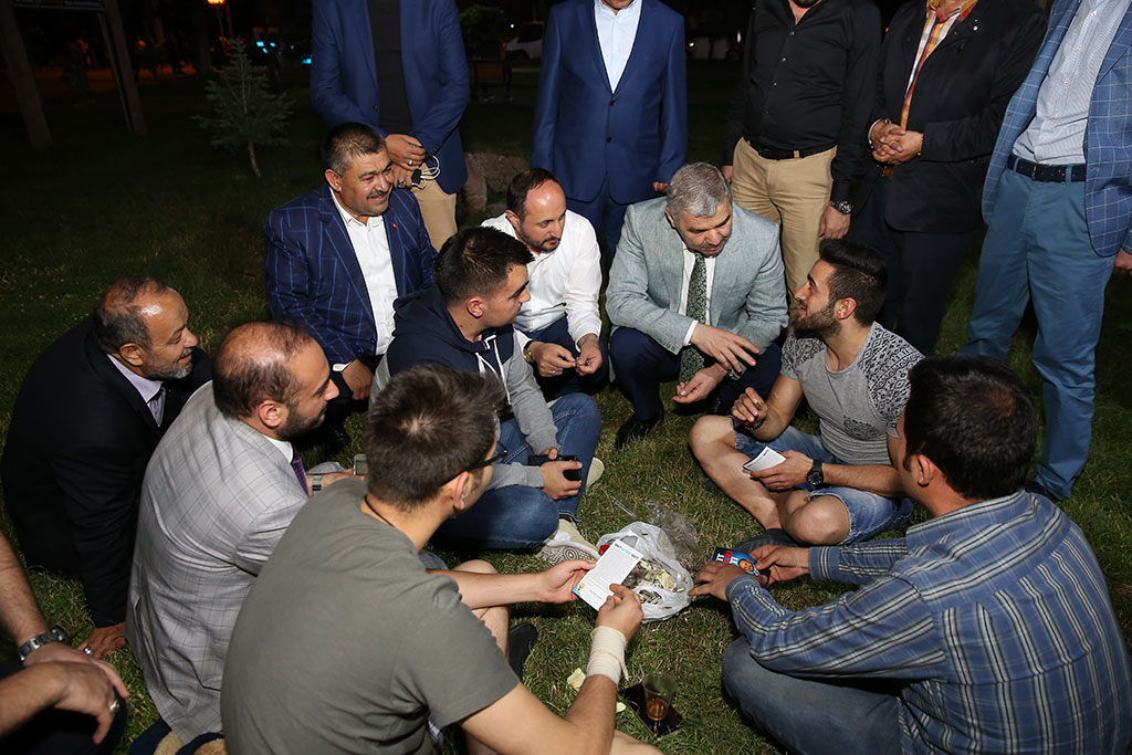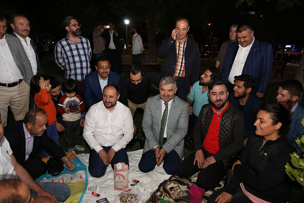 Büyükşehir Belediye Başkanı Mustafa Çelik, teravih namazı sonrası AK Parti Kayseri Milletvekili İsmail Emrah Karayel ile birlikte Alparslan Parkı ve çevresinde ziyaretlerde bulundu. Sohbet eden, hatır soran Başkan Çelik, vatandaşları 8 Haziran Cuma günü saat 17.00’de yapılacak olan Cumhurbaşkanımız Recep Tayyip Erdoğan’ın mitingine de davet etti. Büyükşehir Belediye Başkanı Mustafa Çelik, AK Parti Kayseri Milletvekili İsmail Emrah Karayel ile birlikte teravih namazını Elmaağaçlı Camii’nde kıldı. Teravih namazı öncesi camiye gelen Karayel ve Çelik, namaz saatine kadar vatandaşlarla çay içerek sohbet ettiler. Teravih namazı sonrası cemaat ile sohbet eden Kayseri Milletvekili Karayel ve Başkan Çelik, Alparslan Parkı ve çevresinde ziyaretlerde bulundu. Bölgedeki esnaflarla başlayan ziyaret park içerisinde oturan ailelerle ve gençlerle devam etti. Karşılaştığı herkesin elini sıkan, hatır soran Başkan Mustafa Çelik ve Kayseri Milletvekili İsmail Emrah Karayel, vatandaşları 8 Haziran Cuma günü saat 17.00’de Cumhurbaşkanımız Recep Tayyip Erdoğan’ın Kayseri Cumhuriyet Meydanı’nda yapacağı mitinge de davet ettiler.