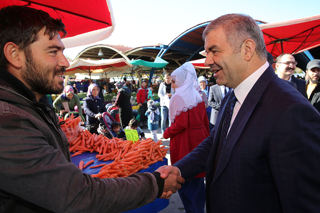 Büyükşehir Belediye Başkanı Mustafa Çelik, her fırsatta halkla bir araya gelmeye ve hemşehrilerinin taleplerini dinlemeye devam ediyor. Belsin’e giden Başkan Çelik, Belsin Pazarı’nı ziyaret ederek pazarcı esnafı ve alışveriş yapan vatandaşlarla görüştü. Başkan Çelik, her gün farklı bir mahallede halkın taleplerini alan ve bugün de Belsin Pazar Yeri yanında bulunan Beyaz Masa Mobil’i de ziyaret ederek vatandaşlarla görüştü ve onlara kahve ikram etti. Büyükşehir Belediyesi’nin hizmeti halkın ayağına götüren Beyaz Masa Mobil uygulaması Belsin Pazar Yeri’nde vatandaşları dinledi. Beyaz Masa Mobil’in çalışmalarına Büyükşehir Belediye Başkanı Mustafa Çelik de katılarak halkın taleplerini dinledi. “TALEPLERİ DİNLİYOR, ANINDA MÜDAHALE EDİYORUZ” Beyaz Masa Mobil’de bir süre vatandaşlarla bir araya gelen ve taleplerini alan Başkan Mustafa Çelik, vatandaşlardan gelen şikayet ve talepler için Büyükşehir Belediyesi hizmet binasında Beyaz Masa biriminin bulunduğunu, Beyaz Masa Mobil ile de hizmeti halkın ayağına taşıdıklarını belirtti. Beyaz Masa Mobil uygulamasının bir yıldır devam ettiğini dile getiren Başkan Çelik, “Vatandaşlarımızın direk ayağına giderek şikayetlerini dinleyip, taleplerini yerine getirmek istedik. Mobil Beyaz Masa her gün farklı mahallede ve insan yoğunluğunun olduğu yerlerde halkın ayağına gidiyor. Hemşehrilerimizin bize her şekilde ulaşmasını temin etmeye çalışıyoruz. Mobil Beyaz Masa, vatandaşlarımızın taleplerini dinliyor ve anında ilgili birime yönlendirilerek takibini yapıyor. Bu şekilde birimlerin performansını da ölçüyoruz. Mobil Beyaz Masa, Büyükşehir Belediyemizin örnek hizmetlerinden biri. Zaman zaman ben de Mobil Beyaz Masa’yı ziyaret ediyor ve burada vatandaşlarımızı dinliyorum. Hemşehrilerimden mahalleleriyle ilgili taleplerini Beyaz Masa Mobil’e bildirmelerini rica ediyorum” dedi. “SIFIR HATA İÇİN GAYRET EDİYORUZ” Türkiye’deki şehirciliğin ve belediyeciliğin en iyisini Kayseri Büyükşehir Belediyesi’nin yaptığını da vurgulayan Başkan Çelik, sıfır hatayla çalışmanın gayretinde olduklarını kaydetti. Başkan Çelik, Beyaz Masa Mobil’e gelen vatandaşlara 40 yılın hatırı olan kahve hediye edildiğini de kaydetti. Büyükşehir Belediye Başkanı Çelik, Beyaz Masa Mobil’de bir süre vatandaşları dinledikten sonra Belsin Pazarı’nı ziyaret etti. Pazar yerini gezen Başkan Çelik, pazarcı esnafı ile görüşerek hayırlı işler temennisinde bulundu. Pazara gelen vatandaşlar ve pazarcı esnafı ile sohbet eden Başkan Çelik alışveriş de yaptı. Esnaf ve vatandaşlara Beyaz Masa Mobil’in hediye paketlerinden de hediye eden Başkan Mustafa Çelik, ayrıca pazar yerindeki bir tatlıcıdan tatlı alarak esnaf ve vatandaşlara ikram etti. MİNİ TERMİNAL İNŞAATINDA İNCELEMELERDE BULUNDU Büyükşehir Belediye Başkanı Mustafa Çelik, Belsin’de ayrıca mini terminal inşaatını da gezdi. İnşaatta incelemelerde bulunan Başkan Çelik, şehrin altı farklı mahallesinde yapılmakta olan mini terminal binalarının tamamlanmasının ardından şehirlerarası otobüs firmalarının şehir için servislerinin Büyükşehir Belediyesi tarafından çok daha düzenli bir şekilde yapılacağını kaydetti.