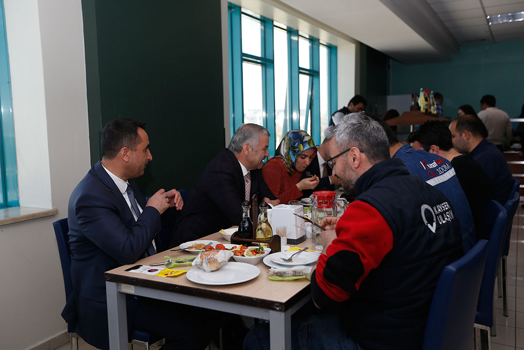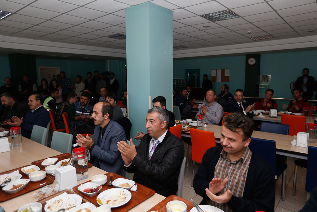 Büyükşehir Belediye Başkanı Mustafa Çelik, kamu kurum ve kuruluşlarının yanı sıra Büyükşehir bünyesindeki hizmet birimlerine de veda ziyaretlerinde bulunuyor. Bu kapsamda Ulaşım A.Ş.’yi ziyaret eden Başkan Çelik, öğle yemeğini mesai arkadaşlarıyla birlikte yedi ve helallik istedi. Büyükşehir Belediye Başkanı Mustafa Çelik, öğle yemeğini Ulaşım A.Ş. çalışanlarıyla birlikte yedi. Dört yıllık görev süresi içinde özellikle ulaşıma önem verdiklerini ifade eden Başkan Çelik, “Sizlerle birlikte birçok işe imza attık. Özellikle ulaşım konusunda gerek alt yapı gerekse toplu taşıma önceliğimiz oldu. Yaptığımız tüm hizmetleri hep birlikte başardık. Haklarınızı helal edin” diye konuştu. Büyükşehir Belediye Başkanı Çelik, konuşmasının ardından masaları gezerek çalışanlarla sohbet etti.