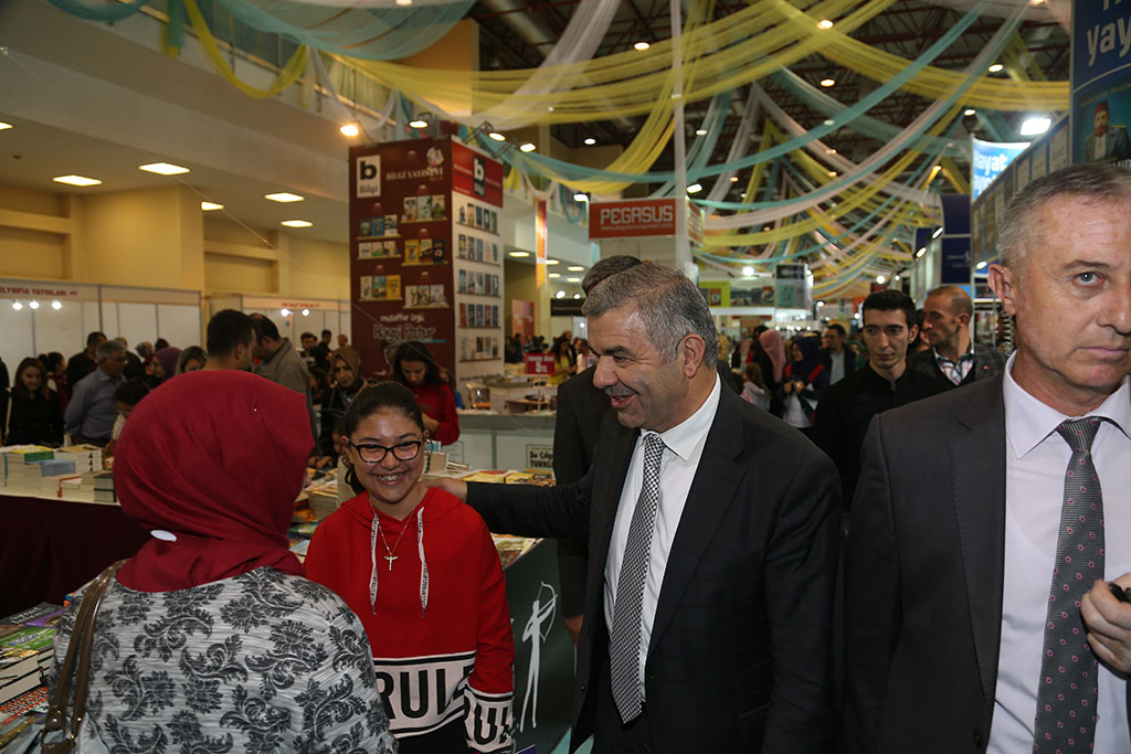 Kayseri Büyükşehir Belediye Başkanı Mustafa Çelik 2. Kayseri Kitap Fuarı’nı bu kez Vali Süleyman Kamçı ve Abdullah Gül Üniversitesi Rektörü Prof. Dr. İhsan Sabuncuoğlu ile birlikte gezdi. Vali Kamçı ve Rektör Sabuncuoğlu Kayseri Kitap Fuarı’nın şehrimiz ve ülkemiz için önemine vurgu yaptı. Büyükşehir Belediyesi tarafından düzenlenen 2. Kayseri Kitap Fuarı tüm güzellikleriyle devam ediyor. Büyükşehir Belediye Başkanı Mustafa Çelik, Vali Süleyman Kamçı ve Abdullah Gül Üniversitesi Rektörü Prof. Dr. İhsan Sabuncuoğlu ile birlikte fuarı gezdi. Kitap Fuarı’nı değerlendiren Vali Süleyman Kamçı, Kitap Fuarlarının her ilde yapıldığını; ancak katılan yazarların da söylediği gibi Kayseri Kitap Fuarı’nın çok daha güzel olduğunu belirtti. Kayseri Kitap Fuarı’nın ne denli güzel olduğunun fuarı gezenlerce anlaşıldığını vurgulayan Vali Kamçı, “Kayseri’de 700 bin kişinin fuarı ziyaret etmesi sevindirici. Artık 1 milyonu zorluyoruz. Güzel bir fuar oldu. Yapanları eline sağlık” dedi. Abdullah Gül Üniversitesi Rektörü Prof. Dr. İhsan Sabuncuoğlu da 5,5 yıldır Kayseri’de olduğunu ve en çok etkilendiği günlerden bir tanesini yaşadığını belirtti. Çok güzel bir fuarla karşılaştığını ifade eden Sabuncuoğlu, “Herhangi birisi bu fuarı anlatsa inanmazdım. Mahşeri kalabalıktan çok etkilendim. Başkanımız başta olmak üzere herkesi tebrik ediyorum” diye konuştu. Büyükşehir Belediye Başkanı Mustafa Çelik de, bir şeyin iyi yapılması halinde alıcısı olduğunun görüldüğünü dile getirerek, “Demek ki bu şehir aslında okuyan bir şehir. Biraz imkan sağlayıp üzerindeki külleri çekince altındaki cevheri görüyoruz. Tüm halkımıza ilgilerinden dolayı teşekkür ediyorum” dedi. Büyükşehir Belediye Başkanı Mustafa Çelik, Vali Kamçı ve Rektör Sabuncuoğlu ile fuarı gezdikten sonra Kitap Fuarı’na katılan yazarlarla da sohbet etti.