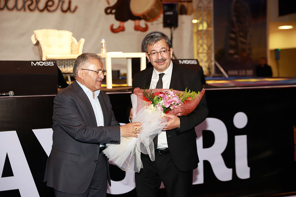 Kayseri Büyükşehir Belediye Başkanı Dr. Memduh Büyükkılıç, eşi Dr. Necmiye Büyükkılıç ile birlikte Kayseri Dünya Ticaret Merkezi’ndeki Ramazan etkinlikleri alanını ziyaret etti. Başkan Büyükkılıç, eşi ile birlikte sohbeti ile Ramazan etkinliklerine katılan Yazar Hayati İnanç’ı dinledi. Büyükşehir Belediye Başkanı Memduh Büyükkılıç, eşi Necmiye Büyükkılıç ile birlikte Mimsin’deki Necmettin Erbakan Parkı’nda yapılan etkinliklere katıldıktan sonra Kayseri Dünya Ticaret Merkezi’ne geçti. Dünya Ticaret Merkezi’nde açılan Ramazan etkinliklerine katılan Başkan Büyükkılıç, bir süre Çerkezler tarafından açılan özel stantta gerçekleştirilen faaliyetleri takip etti ve Çerkez peynirinden tattı. Başkan Büyükkılıç daha sonra eşi ile birlikte Ramazan etkinliklerinin konuğu olan Yazar Hayati İnanç’ın söyleşisine katıldı. Hukukçu-Yazar Hayati İnanç, seyircilerle Ramazan ayı ve Türk kültürünün güzelliklerini yansıtan çok önemli kıssalar paylaştı. Sohbet sonrası kürsüye gelen Başkan Memduh Büyükkılıç, Hayati İnanç’ın sohbetinden istifade ettiklerini ve çok güzel bir sohbet dinlediklerini söyledi. Başkan Büyükkılıç, Hayati İnanç’a teşekkür ederek çiçek verdi. İnanç da Başkan Büyükkılıç’a kendisini Kayserililerle buluşturduğu için teşekkür etti.