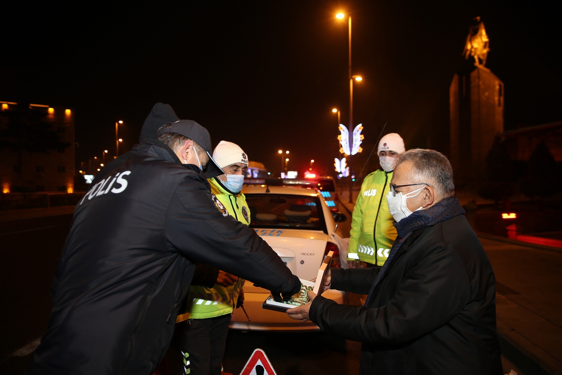 mensuplarına, emniyet ve zabıta ekiplerine çikolata, tatlı ikram edip, teşekkür