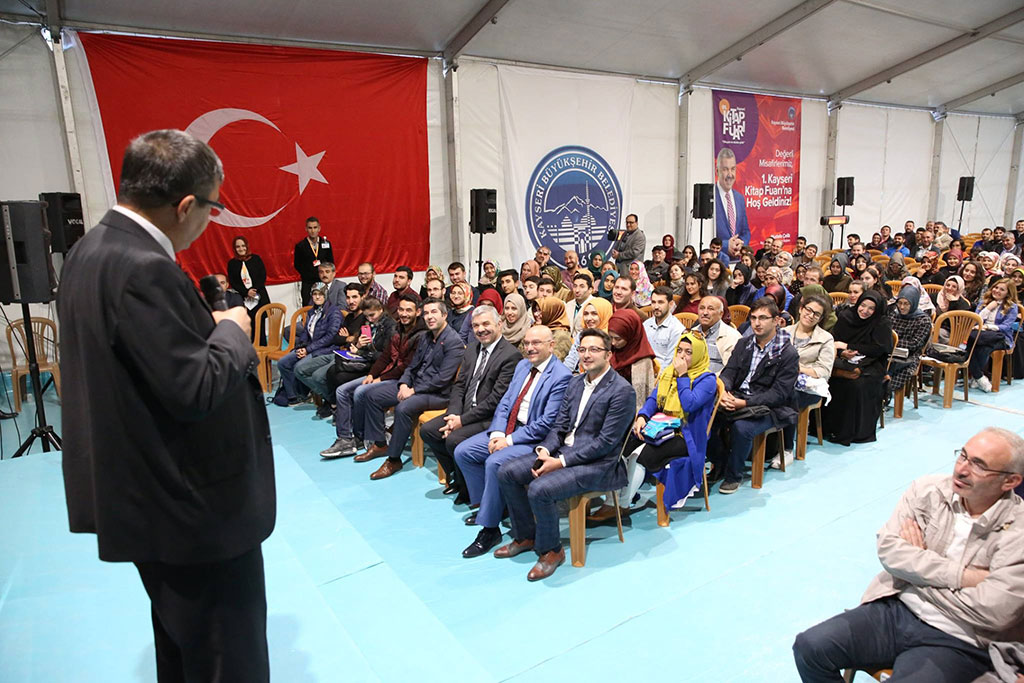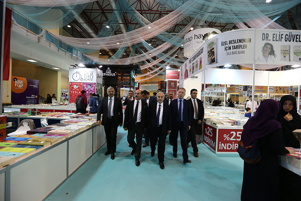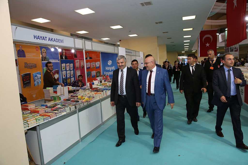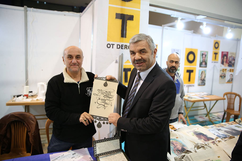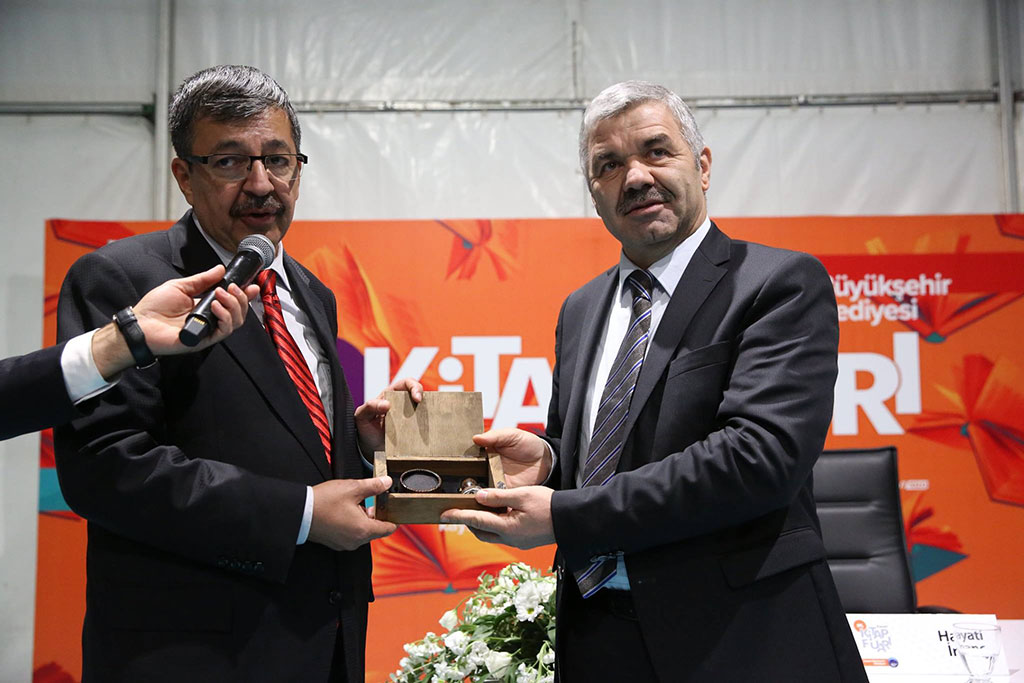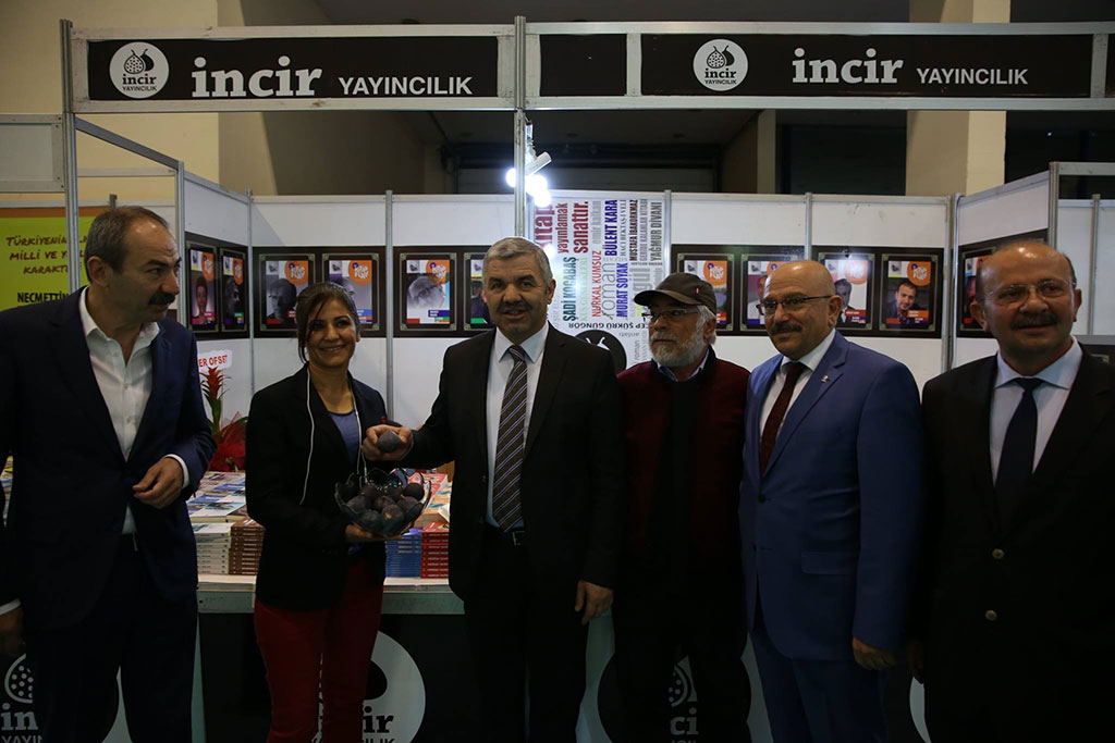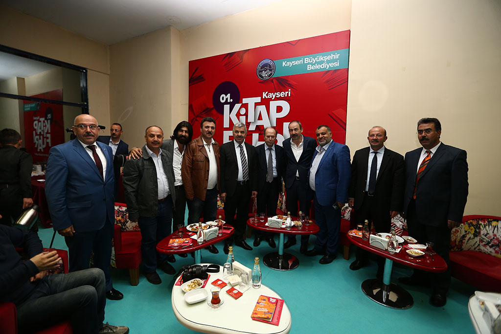 Büyükşehir Belediye Başkanı Mustafa Çelik, Orta Anadolu Kalkınma Ajansı toplantısının ardından Kayseri, Sivas ve Yozgat valileriyle birlikte Kayseri Kitap Fuarı’nı gezdi. Başkan Çelik, fuara katılan yazarlarla da bir araya geldi. Büyükşehir Belediye Başkanı Mustafa Çelik, Kayseri Dünya Ticaret Merkezi’ndeki 1. Kayseri Kitap Fuarı’nı bu kez valilerle birlikte gezdi. Kayseri Valisi Süleyman Kamçı, Sivas Valisi Davut Gül ve Yozgat Valisi Kemal Yurtnaç ile birlikte Kitap Fuarı’na giden Başkan Çelik, fuarla ilgili üç ilin valisine bilgiler verdi. Başkan Mustafa Çelik, valilerin ayrılmasının ardından AK Parti İl Başkanı Hüseyin Cahit Özden ile birlikte fuar gezisini sürdürdü. Başkan Çelik’e İncir Yayıncılık’ı ziyaretinde incir ikram edildi. Fuara katılan yazarlardan Hayati İnanç’ın söyleşisine de katılan ve Başkan Çelik, söyleşi sonrası Kitap Fuarı anısına özel hazırlanan yazarın isminin bulunduğu mührü hediye etti. Başkan Çelik, “Fuarda gezen ve söyleşileri takip eden dinamik topluluğu görünce iyi ki bu fuarı düzenlemişiz diyoruz” ifadelerini kullandı. Hayati İnanç da böylesi nezih topluluğu her yerde görmediklerini dile getirdi ve “Allah nazardan saklasın” diye temennide bulundu. Büyükşehir Belediye Başkanı Çelik, daha sonra yayınevlerinin stantlarını ziyaret etti ve fuarı gezen vatandaşlarla görüştü. Yayınevi yetkilileri Başkan Çelik’e “İyi ki gelmişiz” ifadeleriyle fuarla ilgili memnuniyetlerini dile getirdiler. Başkan Mustafa Çelik, fuarı gezerken kaligrafi sanatıyla isim yazan sanatçının yanına giderek bir süre takip etti. Başkan Çelik, sanatçıya torunu Mustafa Emir’in ismini yazdırdı. Farklı yayınevlerinde kitapları da inceleyen Başkan Çelik, ilgisini çeken bazı kitapları aldı. Büyükşehir Belediye Başkanı Çelik, fuar gezisi sırasında Yusuf Kaplan, Sıtkı Aslanhan gibi tanınmış yazarlarla da bir araya gelerek sohbet etti.
