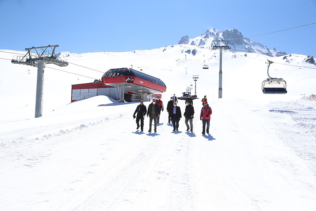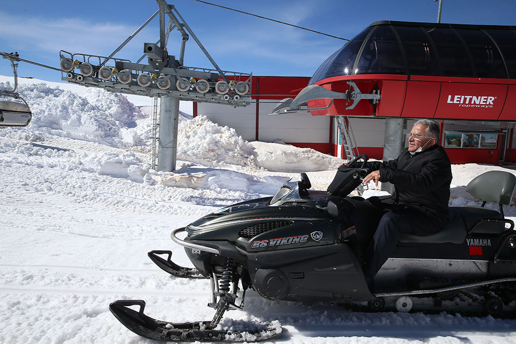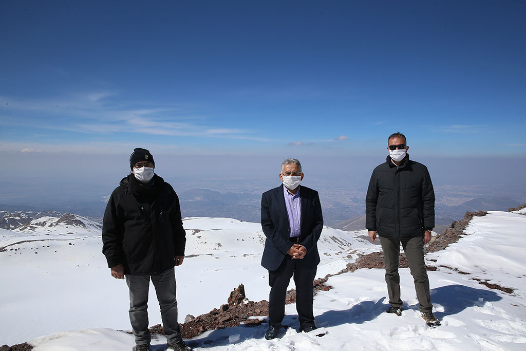 Kayseri Büyükşehir Belediye Başkanı Dr. Memduh Büyükkılıç, Erciyes’in Kayseri’nin ve ülkemizin içinde bulunduğumuz zor süreçten çok daha güçlü çıkacağına inandığını belirtti. Başkan Büyükkılıç, Erciyes’in 3 bin 400 metre yüksekliğindeki Ottoman bölgesinden geleceğe dair mesajlar verdi. Büyükşehir Belediye Başkanı Dr. Memduh Büyükkılıç, Erciyes’te incelemelerde bulundu. 3 bin 400 metre yüksekliğindeki Ottoman bölgesinde koronavirüs sonrasına ilişkin açıklamalarda bulunan Başkan Büyükkılıç, “Bugün asıl olan sağlığımız; ancak geleceğe dair de çalışmalarımızı sürdürüyoruz” mesajını verdi. “GELECEK DAHA GÜZEL OLACAK” Dünyanın içinde bulunduğu zor sürecin geçeceğini ve bu süreçten daha güçlü çıkmak için çalıştıklarını ifade eden Başkan Memduh Büyükkılıç, “Kayak merkezimiz aslında Nisan ayının ortasında olmamıza rağmen halen hizmete hazır; ancak konjonktür gereği kullanamıyoruz. Fakat önümüzdeki sezon için şimdiden hazırlıklarımızı sürdürüyoruz. Bu yıl sezonumuz uzamıştı; ancak asıl olan sağlık ve asıl olan ülkemizin bu süreçten sosyal mesafeleri koruyarak ve evde kalarak en kısa zamanda kurtulması. Biz de bu anlayış ile belediyemizin sosyal tesislerini ve bu tür hizmetlerini yaklaşık bir aydır noktalamış durumdayız. Bu sürece katkıda bulunmak ve halkımızı korumak, insanlarımızın evde kalmalarını sağlamak için çalışmalarımızı sürdürüyoruz. Ancak bazen krizler fırsat doğurur. Bu anlayış içerisinde önümüzdeki sezon için çalışmalar yapıyoruz. Kayak severler için muhteşem pistlerin bulunduğu Erciyes'te 'Siyah Parkur' olarak adlandırılan en zor pist bulunuyor ve bu dünya genelinde önemli bir ilgi görüyor. İnşallah 2020-2021 sezonu gerek ülkemiz için gerek Kayseri’miz için gerekse Erciyes’imiz için bir başka güzel olacak” dedi. “ÖNEMLİ BİR KAMP MERKEZİ OLACAK” Erciyes’in 12 ay değerlendirilmesini sağlayacak olan Yüksek İrtifa Kamp Merkezi yatırımıyla ilgili de bilgi veren Büyükşehir Belediye Başkanı Memduh Büyükkılıç, “Erciyes’i sadece kayak merkezi olmaktan çıkarıp 12 ay değerlendirilecek bir boyuta eriştirmek için çok değerli Gençlik Spor Bakanımızla birlikte çalışıyoruz. Yaptığımız projeler de hayata geçince Erciyes bir başka güzel olacak ve en önemli kamp merkezlerinden birisi haline gelecek” diye konuştu.