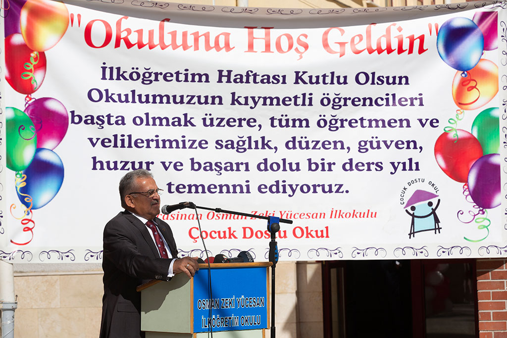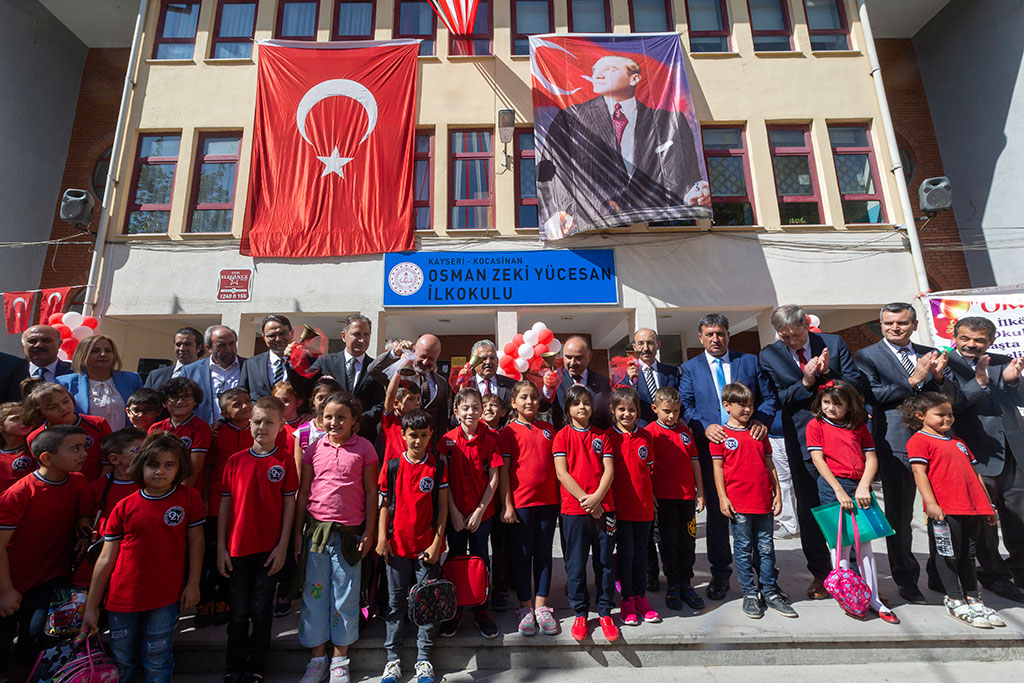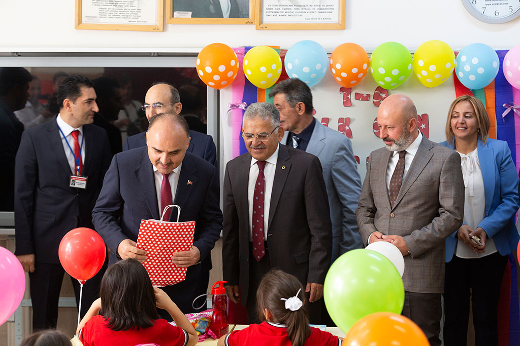 Kayseri Büyükşehir Belediye Başkanı Dr. Memduh Büyükkılıç, yerel yönetimler olarak eğitime verdikleri desteği yeni eğitim ve öğretim yılının açılışında bir kez daha yineledi. Başkan Büyükkılıç, “Fiziki iyileştirmeyi sağlamak suretiyle gerek öğretmenlerimizin gerekse öğrencilerimizin verimliliğini artırmaya çalışıyoruz” dedi. Büyükşehir Belediye Başkanı Dr. Memduh Büyükkılıç, 2019-2020 eğitim ve öğretim yılının açılışı nedeniyle Osman Zeki Yücesan İlkokulu’nda düzenlenen törene katıldı. Törene, Başkan Büyükkılıç’ın yanı sıra Vali Şehmus Günaydın, Kocasinan Belediye Başkanı Ahmet Çolakbayrakdar, bürokratlar, öğretmenler, veliler ve öğrenciler katıldı. Başkan Büyükkılıç, törene katılan ailelerle sohbet ederek yeni eğitim yılının hayırlı olması temennisinde bulundu. Büyükşehir Belediyesi Mehter Takımı’nın marşlar seslendirdiği, halk oyunları gösterilerinin yapıldığı törende öğrencilerine kavuşan okulların mahzunluktan kurtulduğunu ifade eden Büyükşehir Belediye Başkanı Büyükkılıç, “Okullarımız mahzundu, çünkü öğrencilerimiz tatildeydi. Okulların açılmasıyla şehirde bir hareketlilik başladı. Bu hareketi berekete dönüştürecek gayreti öğretmenler, veliler ve bizler el ele vererek göstereceğiz” dedi. Kayseri’de eğitime büyük destek veren hayırseverlerimize de değinerek, “Kayseri’mizin güzel insanları iyi ki varsınız” ifadelerini kullanan Başkan Büyükkılıç, yerel yönetimlerin eğitime verdikleri desteğe de vurgu yaptı. Eğitime destek için tüm kurum ve kuruluşlarla dayanışma içinde olduklarını dile getiren Başkan Büyükkılıç, sözlerini şöyle sürdürdü: “Öğretmenlerimizin gayretleriyle yavrularımız çağın gereklerine uygun olarak yetişecek; ülkemize, bayrağımıza vatanımıza devletimize milletimize bağlı olarak Fatihlerin, Yavuzların, Abdülhamitlerin, Mustafa Kemallerin nesli olacaktır. Yerel yöneticiler olarak gerek Büyükşehir Belediyesi gerekse ilçe belediyeleri milli eğitim camiamızla dayanışmanın en güzel örneklerini sergiliyor ve üzerimize düşeni yapıyoruz. Fiziki iyileştirmeyi sağlamak suretiyle gerek öğretmenlerimizin gerekse öğrencilerimizin verimliliğini artırmaya çalışıyoruz.” Törende konuşmaların ardından sınıflardaki öğrenciler ziyaret edildi. Başkan Memduh Büyükkılıç, Vali Şehmus Günaydın ile birlikte okula yeni başlayan öğrencilerle sohbet etti. Başkan Büyükkılıç, sıraya oturarak kitaptan çevreyle ilgili bir şiir okudu. Veli Günaydın da çevreyi temiz tutmak için elbirliği ile çalışalım mesajı verdi. Vali Günaydın ve Başkan Büyükkılıç daha sonra öğrencilere kitap ve kırtasiye malzemeleri hediye etti.
