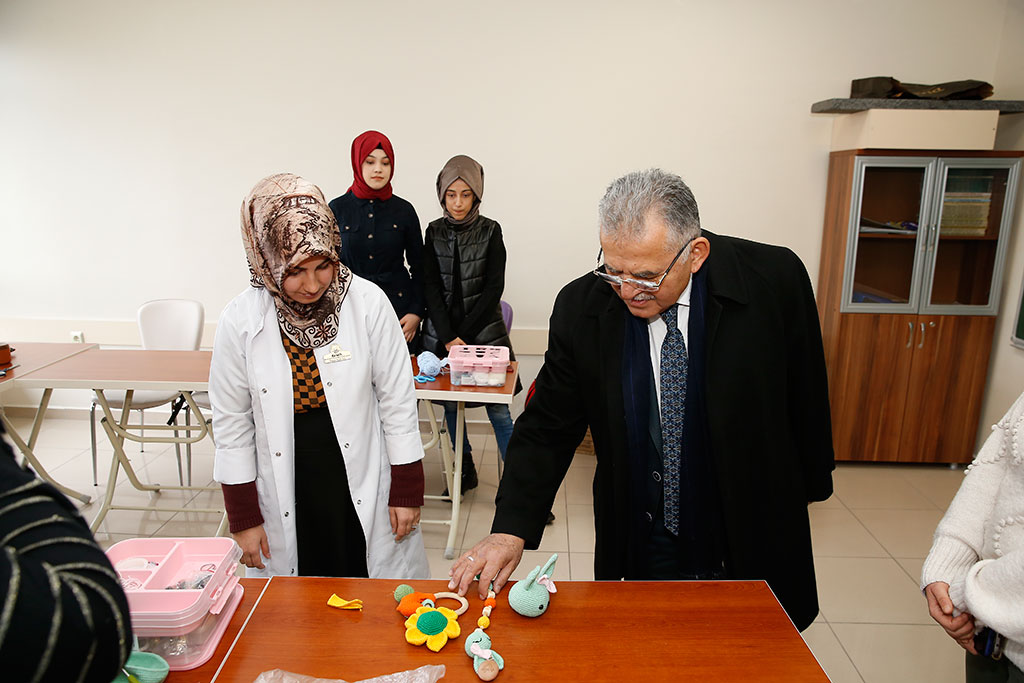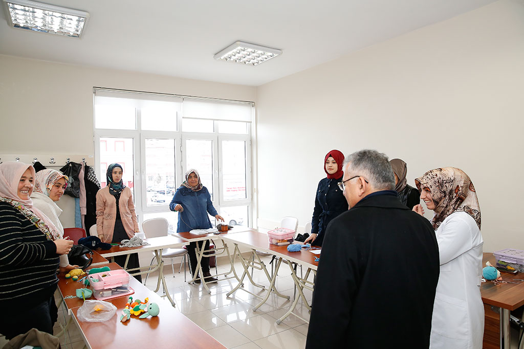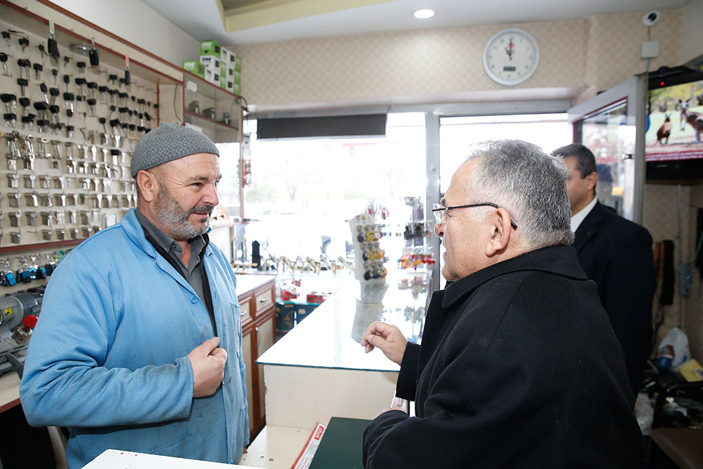 Kayseri Büyükşehir Belediye Başkanı Dr. Memduh Büyükkılıç, Ziya Gökalp Mahallesi’nde esnafları ziyaret etti. Başkan Büyükkılıç, Ziya Gökalp ve Turgut Reis Mahallelerindeki KAYMEK kurs merkezlerine de ziyaretlerde bulunarak kursiyerlerle konuştu. Büyükşehir Belediye Başkanı Dr. Memduh Büyükkılıç, Ziya Gökalp Mahallesi’nde yaptığı incelemeler sırasında esnafları da ziyaret etti. Taksi durağı ile başlayan ziyaretlerini bölgedeki esnaflarla sürdüren Başkan Büyükkılıç, “Hayırlı işler” temennisinde bulundu. Başkan Memduh Büyükkılıç, esnafların ardından Ziya Gökalp Mahallesi’ndeki KAYMEK kurs merkezini de ziyaret etti. Burada simit yapan kursiyerler ve eğitmenleriyle sohbet eden Başkan Büyükkılıç, kursiyerlere simit yapımı ile ilgili sorular yöneltti. KAYMEK Ziya Gökalp Kurs Merkezi’ndeki diğer kursları da ziyaret ederek bilgi alan Başkan Büyükkılıç, kurs merkezinde Erciyes Üniversitesi karşısında Büyükşehir Belediyesi tarafından öğrencilere yönelik yapılan Çamaşır Yıkama ve Kurutma Merkezi için dikilen fileleri inceledi. Büyükşehir Belediye Başkanı Memduh Büyükkılıç, Ziya Gökalp Mahallesi’nin ardından Turgut Reis Mahallesi’ndeki KAYMEK kurs merkezine geçerek sınıfları ziyaret etti ve kursiyerlerle sohbet etti.