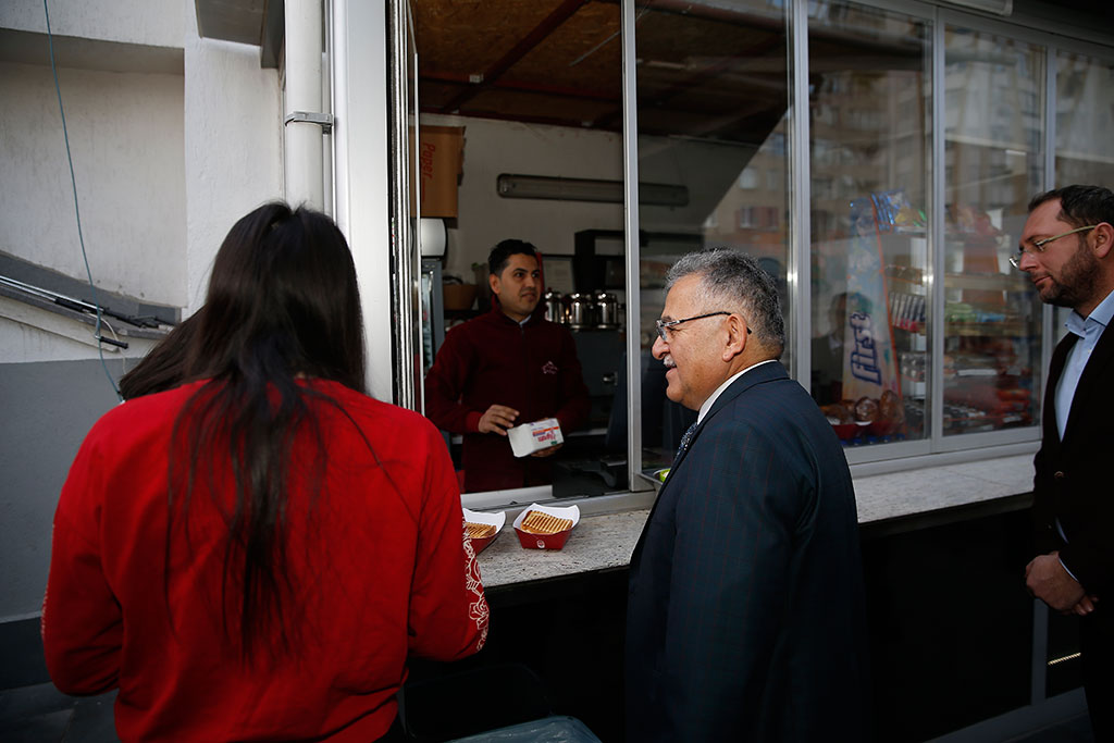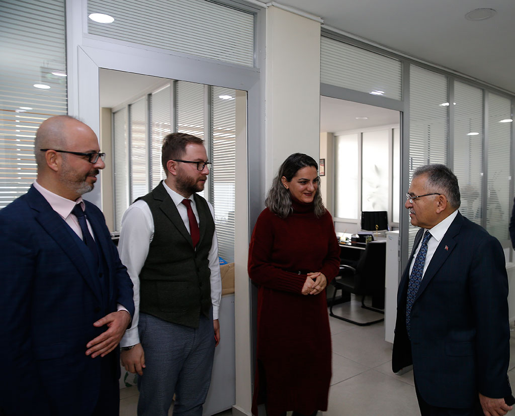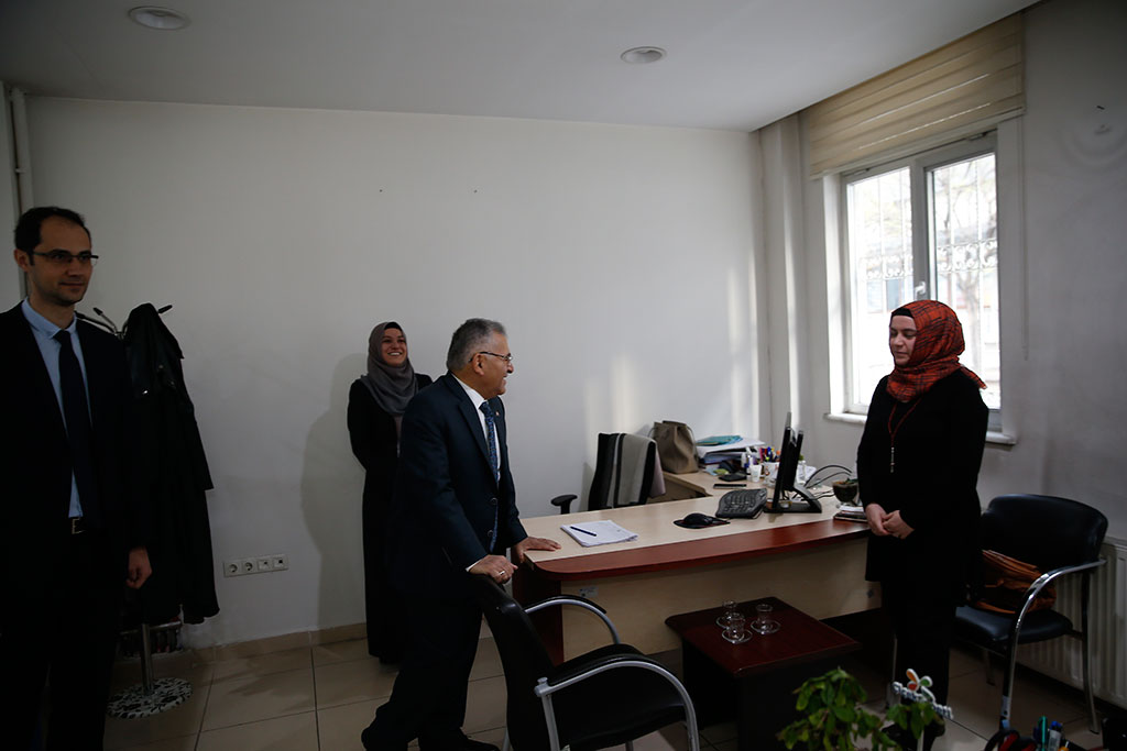 Kayseri Büyükşehir Belediye Başkanı Dr. Memduh Büyükkılıç; Merkez Kütüphanesi, eski konservatuvar binası, Kentsel Dönüşüm Daire Başkanlığı, Fizyospor Merkezi, KAYMEK ve belediye içindeki bazı birimleri ziyaret etti. Başkan Büyükkılıç, çeşitli incelemelerde bulundu ve personelle sohbet etti. Büyükşehir Belediye Başkanı Dr. Memduh Büyükkılıç, belediye bünyesindeki birimlere yönelik ziyaretlerine Merkez Kütüphane ile başladı. Kütüphane kantininde öğrencilere çay ısmarlayan ve sohbet eden Başkan Büyükkılıç, daha sonra kütüphane içindeki gençlerle tanıştı. Ders çalışan öğrencilerle sohbet eden Başkan Memduh Büyükkılıç, kütüphane hizmetleriyle ilgili görüşlerini aldı. Büyükşehir Belediye Başkanı Memduh Büyükkılıç, Merkez Kütüphanesi’nin ardından eski konservatuvar binasına geçti. Başkan Büyükkılıç, kütüphaneye dönüştürülerek Merkez Kütüphane ile birleşecek olan konservatuvar binasında incelemelerde bulundu. Başkan Memduh Büyükkılıç, Kentsel Dönüşüm Daire Başkanlığı’nı da ziyaret etti. Daire Başkanı Hakkı Alp tarafından karşılanan Başkan Büyükkılıç, birimleri gezerek personelle tanıştı ve yaptıkları çalışmalarla ilgili sohbet etti. Başkan Memduh Büyükkılıç, Kentsel Dönüşüm Daire Başkanlığı’ndaki Sahabiye Kentsel Dönüşüm Projesi’nin maketi üzerinde de Daire Başkanı Hakkı Alp’den projenin son durumuna ilişkin bilgi aldı. Büyükşehir Belediye Başkanı Dr. Memduh Büyükkılıç, Kentsel Dönüşüm Daire Başkanlığı’nın ardından Fizyospor Merkezi’ne geçti. Fizyospor Merkezi’nde verilen hizmetlerle ilgili bilgi alan Başkan Büyükkılıç, kurum içi ziyaretlerini KAYMEK yönetim binası ile sürdürdü. KAYMEK çalışanları ile sohbet eden ve tek tek kolaylıklar dileyen Başkan Büyükkılıç, burada KAYMEK birim sorumlularıyla da bir toplantı yaptı. Toplantıda İştirakler ve İşletmeler Daire Başkanı Oğuzhan Postallı’dan bilgiler alan Başkan Büyükkılıç, sanat ve mesleki eğitimde Anadolu’nun markası olan KAYMEK’te hizmet kalitesinin daha da artırılması için gayret istedi. Büyükşehir Belediye Başkanı Dr. Memduh Büyükkılıç, daha sonra Büyükşehir Belediyesi ana binasına geçerek Beyaz Masa ve Zabıta Daire Başkanı Mustafa Kayacık ile zabııta birimlerini de ziyaret etti.