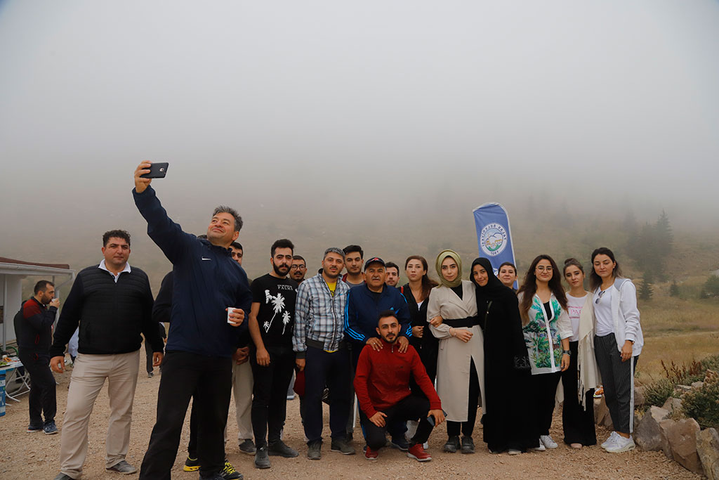 Kayseri Büyükşehir Belediye Başkanı Dr. Memduh Büyükkılıç, Ali Dağı’ndaki yürüyüş parkurunda AK Partili gençlerin yürüyüş programına katıldı. Yaklaşık 9 kilometre yürüyüş yapan Başkan Büyükkılıç, bir hekim olarak yürüyüşün sağlık için önemine işaret ederek herkesi yürüyüşe davet etti. Bir gün önce dört ilçede ayrı ayrı programlara katılan Büyükşehir Belediye Başkanı Memduh Büyükkılıç, bu yoğun günün ertesinde sabah erken saatlerde yürüyüş için Ali Dağı’ndaydı. Başkan Büyükkılıç, AK Gençlik tarafından düzenlenen programa katılarak yaklaşık 9 kilometre yürüyüş yaptı. Talas Belediye Başkanı Mustafa Yalçın ile birlikte yürüyüşü tamamlayan Başkan Büyükkılıç, bulutların zirvesini kapattığı Ali Dağı’nın eşsiz manzarası eşliğinde gençlerle fotoğraflar çektirdi. Yürüyüş sırasında bir hekim olarak da tavsiyelerde bulunan Başkan Büyükkılıç, “Ali Dağı Kayseri için bir değer ve bir şans. Yürüyüş için çok güzel rotalar var. Bir hekim olarak herkesi Ali Dağı’ndaki yürüyüşlere katılmaya davet ediyorum” dedi. Talas Belediye Başkanı Mustafa Yalçın da Başkan Büyükkılıç’ın Ali Dağı’na her zaman geldiğini ifade ederek “Başkanımız kendimi bildim bileli Ali Dağı’nda yürüyüşünü eksik etmedi” dedi. Başkan Yalçın, özellikle gençlere yürüyüş sevgisini aşılamak istediklerini belirtti.