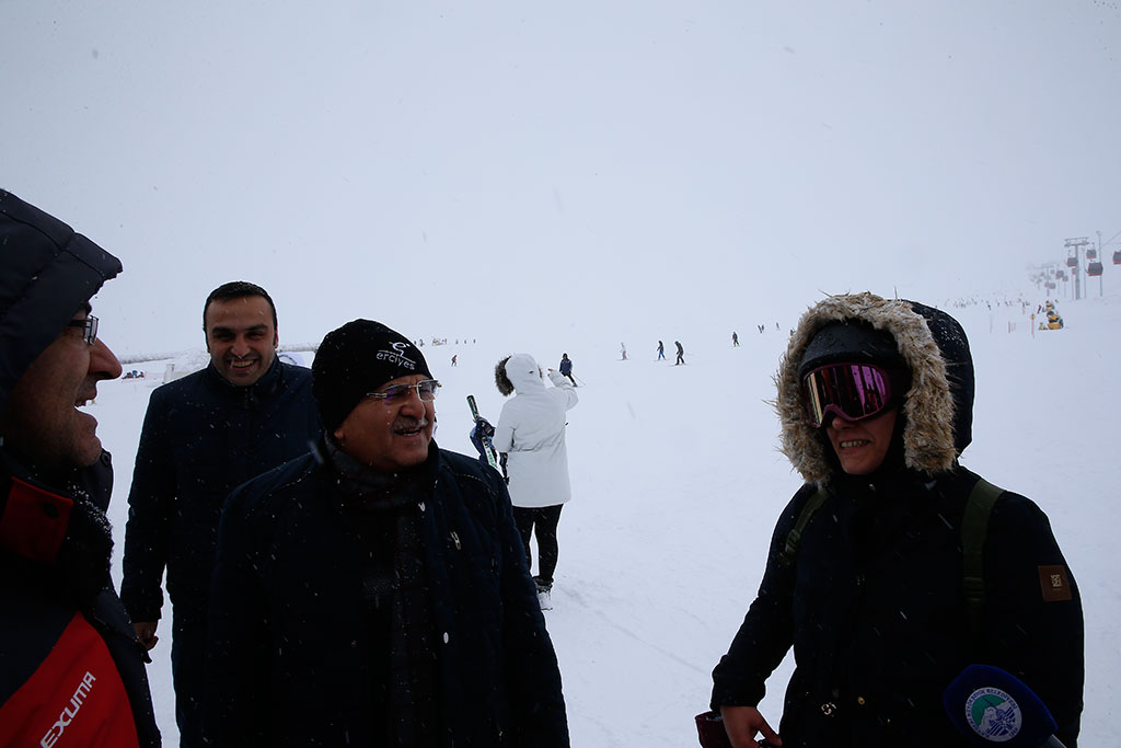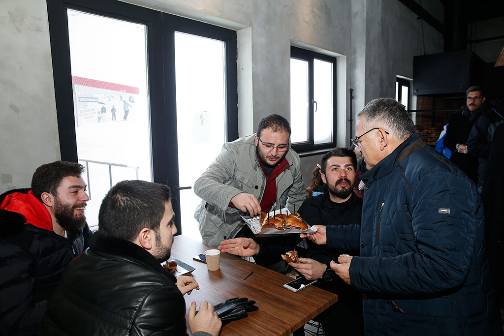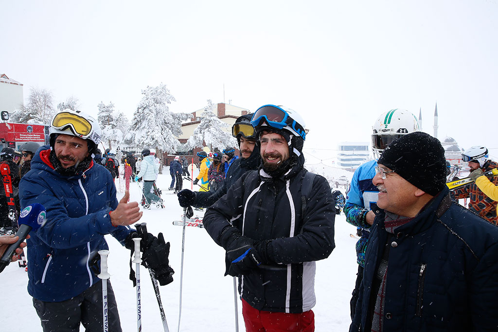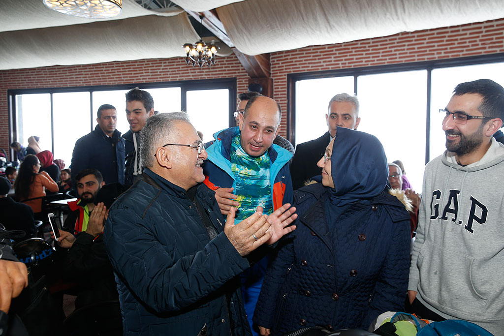 Kayseri Büyükşehir Belediye Başkanı Dr. Memduh Büyükkılıç, Erciyes’i yakından takip etmeye devam ediyor. Hafta sonları Erciyes’e çıkarak yerli ve yabancı misafirlerle görüşen Başkan Büyükkılıç, bu hafta sonu yine Erciyes’teydi. Başkan Büyükkılıç, Erciyes’in kayak severler için çok önemli bir değer olduğunu söyledi. Büyükşehir Belediye Başkanı Dr. Memduh Büyükkılıç, Erciyes’e eşi Dr. Necmiye Büyükkılıç ile birlikte çıktı. Öncelikle Kardanadam Tesislerini ziyaret ederek Erciyes’teki lezzetlerin tadını çıkaran yerli ve yabancı misafirlerle görüşen Başkan Büyükkılıç, bir süre mantı ve gözleme yapımını da izledi. “ERCİYES, KAYAK SEVERLER İÇİN ÖNEMLİ BİR DEĞER” Büyükşehir Belediye Başkanı Memduh Büyükkılıç, daha sonra pistlerde kayak yapanlar ve gondola binen misafirlerle görüştü. Ziyaretçilerin Erciyes’le ilgili görüşlerini alan Başkan Memduh Büyükkılıç, kar yağışının sürmesiyle pistlerin mükemmel olduğunu ve özellikle hafta sonunda Erciyes’e büyük ilgi gösterildiğini söyledi. Erciyes’in uluslararası standartlardaki pistleri ve tesisleriyle kayak severler için büyük bir değer olduğunu vurgulayan Başkan Büyükkılıç, “Türkiye’de bu niteliklerde bir kayak merkezi yok. Erciyes’e gelen herkeste büyük bir memnuniyet var. Vatandaşlarımızın olumlu ya da olumsuz bir tepkisi olup olmadığını öğreniyoruz; ancak olumsuz bir değerlendirmesi olan bulunmuyor. Otellerimiz dolu. Her hafta charter seferlerle yurt dışından turistler geliyor. Erciyes’e gelenler bu güzellikleri görüyorlar ve halka halka dünyaya yayıyorlar” dedi. Başkan Memduh Büyükkılıç’ın görüştü kayak severler, zengin sporu olarak bilinen kayağı Erciyes’te çok uygun fiyatla yaptıklarını belirterek, herkesi Erciyes’e davet ettiler. 112’Yİ ZİYARET Büyükşehir Belediye Başkanı Dr. Memduh Büyükkılıç, Erciyes’te olası sağlık sorunlarına anında müdahale eden 112 Acil ekiplerini de ziyaret etti. Erciyes Kayak Merkezi’nde profesyonel sağlık hizmetini İl Sağlık Müdürlüğü’nün verdiğini dile getiren Başkan Memduh Büyükkılıç, İl Sağlık müdürü şahsında tüm ekiplere teşekkür etti. Başkan Memduh Büyükkılıç, Tekir bölgesindeki ziyaret ve incelemelerinin ardından Hisarcık bölgesine geçti. Buradaki esnafları ziyaret eden, yerli ve yabancı misafirlerle görüşen Başkan Büyükkılıç, misafirlere hamburger ikram etti. “GELECEĞİN SPORCULARI SPOR A.Ş.’DEN Başkan Memduh Büyükkılıç, Erciyes’te Spor A.Ş. tarafından kayak eğitimlerini de izledi. 7-14 yaş grubu öğrencilerin katıldığı eğitimleri takip eden Başkan Büyükkılıç, Spor A.Ş. Genel Müdürü İbrahim Somtaş’tan bilgi aldı. Öğrencilerle birlikte “Pastırma denince akla Kayseri, kayak denince akla Erciyes gelir” vurgusunu yapan Başkan Memduh Büyükkılıç, Erciyes’in bulunmaz bir kayak merkezi olduğunu söyledi.