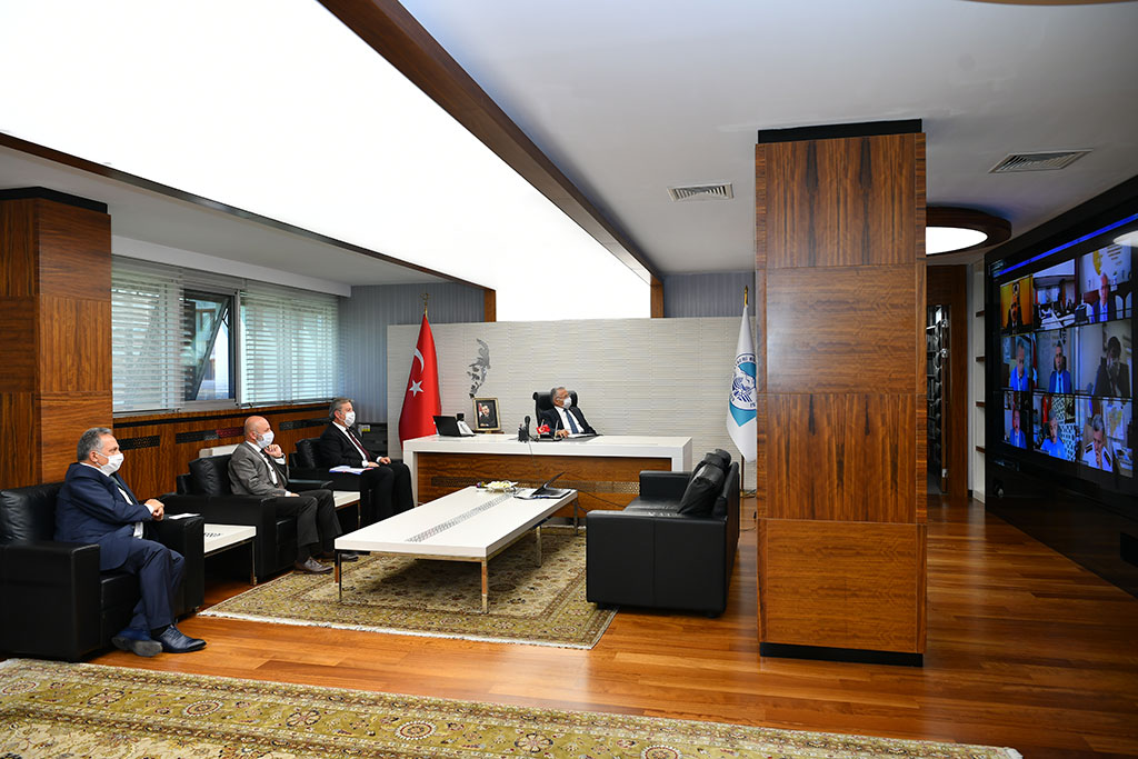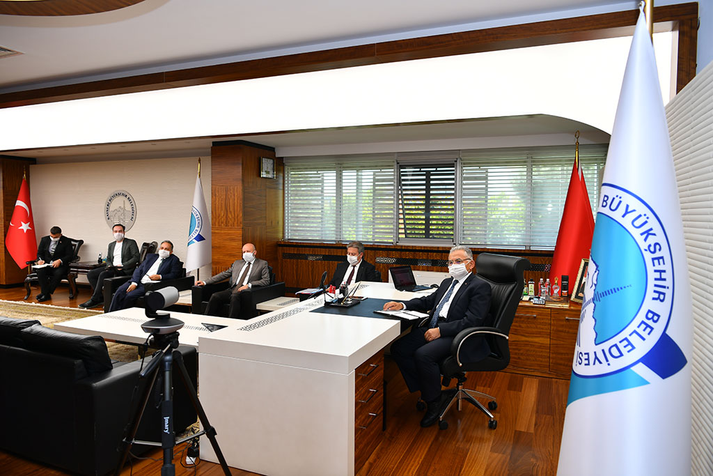 Büyükşehir Belediye Başkanı Dr. Memduh Büyükkılıç, üyesi olduğu İl Pandemi Kurulu’nun Vali Şehmus Günaydın başkanlığındaki toplantısına Melikgazi, Kocasinan ve Talas Belediye Başkanları ile birlikte katılarak, “İl Genelinde yürütülen Covid-19 Mücadelesi”ne yönelik değerlendirmelerde bulundu. Başkan Büyükkılıç, Vali Günaydın başkanlığında video konferans yöntemiyle yapılan İl Pandemi Kurulu Toplantı’na Başkanlık makamından katıldı. Melikgazi Belediye Başkanı Mustafa Palancıoğlu, Kocasinan Belediye Başkanı Ahmet Çolakbayrakdar ve Talas Belediye Başkanı Mustafa Yalçın ile birlikte Pandemi Kurulu Toplantısı’na bağlanan Başkan Büyükkılıç, özellikle yerel yönetimler olarak yaptıkları Covid-19 mücadelesine ilişkin kurul üyelerine bilgiler verdi. Belediyeler olarak salgın sürecinin en başından beri etkili ve kararlı bir mücadele sergilediklerinin altını çizen Başkan Büyükkılıç, Vali Şehmus Günaydın ile birlikte sürekli sahada olmaya gayret gösterdiklerini hatırlatarak, tedbirlere yönelik uygulamaların kararlı bir şekilde devam etmesi gerektiğinin altını çizdi. Kamuya açık alanlarda ve halkın yoğun bulunduğu tüm mekânlarda dezenfeksiyon çalışmasına aralıksız devam edildiğini ifade eden Başkan Büyükkılıç, “Rehavet” uyarısı da yaparak, “Rahatlık ve rehavet istismara neden oluyor. Canla başla çalışan sağlık ordumuzun yanında yer almalı, hem bireysel hem de toplumsal sorumluluklarımızın farkında olarak tedbirlere riayet etmeliyiz” diye konuştu. Başkan Büyükkılıç, özellikle pazar yerleri ve düğünler konusunda denetimlerin sıklaştırılacağı vurgusu da yaptı. Kurulun gündeminde bulunan maddelerin de değerlendirildiği toplantıda Melikgazi, Kocasinan ve Talas Belediye Başkanları da ilçelerinde yaptıkları çalışmalara ilişkin bilgiler aktardı.