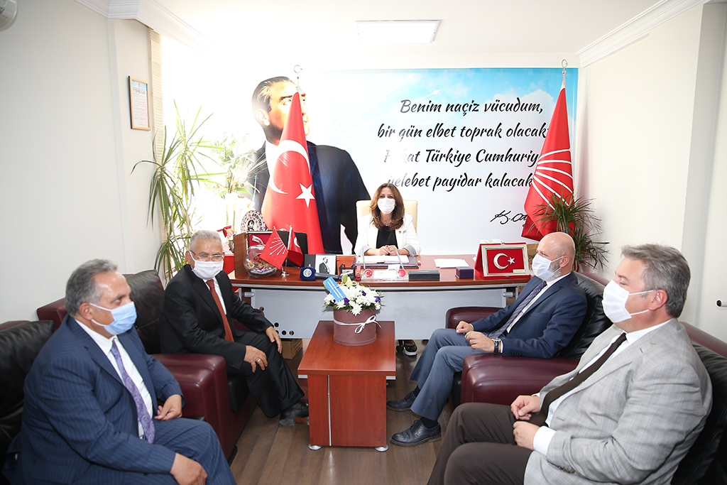 Kayseri Büyükşehir Belediye Başkanı Dr. Memduh Büyükkılıç, ilçe belediye başkanları ile birlikte MHP İl Başkanı Serkan Tok, CHP İl Başkanı Ümit Özer ve İYİ Parti İl Başkanı Sebati Ataman'ı ziyaret etti. Başkan Büyükkılıç, ziyaretleri sırasında, “Bu şehir için, bu şehrin 16 ilçesi için ne yapılması gerekiyorsa el ele vererek yapmak için gayret gösteriyoruz” dedi. Büyükşehir Belediye Başkanı Dr. Memduh Büyükkılıç, beraberindeki Melikgazi Belediye Başkanı Mustafa Palancıoğlu, Kocasinan Belediye Başkanı Ahmet Çolakbayrakdar ve Talas Belediye Başkanı Mustafa Yalçın ile birlikte ilk olarak Cumhur ittifakı ortağı MHP İl Başkanı Serkan Tok’u ziyaret etti. Konuşmasına kongreden güven tazeleyerek yeniden seçilen Serkan Tok’u tebrik ederek başlayan ve birlik ve beraberlik duygusunun önemine işaret ederek başlayan Başkan Büyükkılıç, “Öncelikle hayırlı uğurlu olsun diliyorum. Allah birliğimizi, beraberliğimizi ve dayanışmamızı bozmasın. Gerçekten her geçen gün buna çok daha ihtiyaç olduğunu gözlemliyoruz. Sayın Cumhurbaşkanımızın en büyük destekçisi Sayın Devlet Bahçeli’nin el ele kola kola dayanışma içerisinde birlikte olmaları hepimizi gururlandırıyor. Onlar birlik olunca buradaki birliktelik daha da güçlü oluyor. Amacımız hepimizin şehrimize, ilçelerimize, ülkemize bizleri seven güvenen seçen kardeşlerimize layık olacak şekilde çalışmalar yapmak. Sizlerin de kongreleri nezih bir ortamda birlik ve beraberlik anlayışı içerisinde hep takip ettik, hem de bulunduk. Takdir ettik. Allah razı olsun Cenabı Allah mahcup etmesin” dedi. “İYİ Kİ VARSINIZ BAŞKANIM” MHP İl Başkanı Serkan Tok ise, Büyükşehir Belediye Başkanı Memduh Büyükkılıç’ı Kayseri’ye yaptığı hizmetlerden dolayı tebrik ederek, şöyle konuştu: “Büyükşehir Belediyesi nezdinde burada bulunmanızdan dolayı şahsım ve partim adına büyük onur duydum. Sizlerle zaten yıllar içerisinde hem tanışıklığımız var, hem dostluğumuz, hem de abi kardeşlik ilişkimizle beraber teşkilat ilişkimiz de bu iki buçuk yıl içerisinde gelişti. Bu iki buçuk yıl içerisindeki İl Başkanlığım döneminde Kayseri’de 17 belediye başkanından da Allah razı olsun diyorum. Başında da Büyükşehir Belediye Başkanımızı kutluyorum. Çünkü biz birer hizmet makamıyız. Hizmet etmek için bu görevlerde oturuyoruz. Hizmet etmenin belirli şartları oluyor. Bu şartlar gönülden oluyor. Bu yönde belediyecilik noktasında da belediye başkanımızı ve sizleri tebrik ediyorum” dedi. Başkan Büyükkılıç’ın hemşehrilerine sürekli söylediği “İyi ki varsınız” cümlesini hatırlatan ve “Ben de sizlere ‘İyi ki varsınız’ diyorum” ifadesini kullanan Tok, şehre hizmet noktasında birlik ve beraberlik içerisinde çalışmaya devam edeceklerini anlattı. Başkan Büyükkılıç ve ilçe belediye başkanları daha sonra Cumhuriyet Halk Partisi’ne geçti. İl Başkanı Ümit Özer tarafından parti il binasının önünde karşılanan Büyükkılıç ve ilçe belediye başkanları, Kayseri’de her zaman uyum kültürünün ön planda olduğuna dikkat çektiler. CHP İl Başkanı Ümit Özer de Başkan Büyükkılıç ve beraberindekilerin ziyaretinden duyduğu memnuniyeti dile getirerek, teşekkür etti. Başkan Büyükkılıç ve beraberindekiler İYİ Parti İl Başkanı Sebati Atamanı da ziyaret etti. Parti il binasının önünde İl Başkanı Ataman tarafından karşılanan Başkan Büyükkılıç, ziyarette yaptığı konuşmada, “Seçilenlerin hepsi bu şehrin milletvekili ya da belediye başkanı. Kayserimizde tabi ki, siyasi farklılarımız olacak. Yeter ki art niyet olmasın. Yeter ki yol gösterici yaklaşım sergilensin. Şehre katkı sağlayacak hiçbir şeyden biz rahatsız olmayız. Kimsede rahatsız olmamalı. Hep beraber daha iyiye, daha güzele gideceğiz. Şehrimize katkı sağlayacak yaklaşıma hepimizin ihtiyacı var” dedi. İYİ Parti İl Başkanı Sebati Ataman ise Başkan Büyükkılıç ve 3 ilçe belediye başkanın ziyaretinden duyduğu memnuniyeti dile getirerek, teşekkür etti. Parti ziyaretlerinde MHP, CHP ve İyi Parti’nin bazı yöneticileri de hazır bulundu.