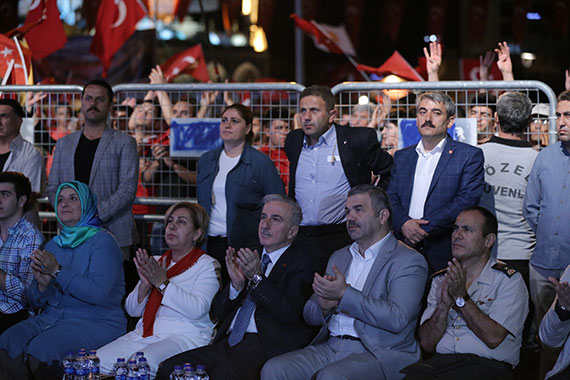 Cumhurbaşkanımız Recep Tayyip Erdoğan'ın konuşmasının ardından Vali Kamçı, Başkan Çelik ve Bölge Komutanı Özcan halkı selamladı.