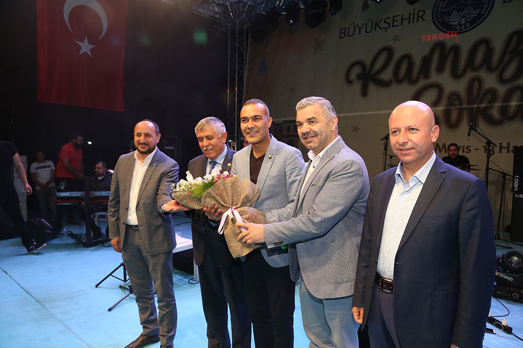 Büyükşehir Belediyesi Ramazan Sokağı’na ilgi her geçen gün daha da artıyor. Hemen her gün Ramazan Sokağı’nda hemşehrileriyle bir araya gelen Büyükşehir Belediye Başkanı Mustafa Çelik, bu kez milletvekilleriyle Ramazan Sokağı’nı gezdi. Ramazan Sokağı’nın 13. gününe ise “Ben Yoruldum Hayat” adlı türküsü dillerden düşmeyen Mümin Sarıkaya katıldı. Büyükşehir Belediye Başkanı Mustafa Çelik, hemen her gün yaptığı gibi bir kez daha Ramazan Sokağı’na gitti ve Ramazan gecelerine renk katan sokakta hemşehrileriyle bir araya geldi. Başkan Çelik, Büyükşehir Belediyesi İtfaiye ekibi ile Ramazan Sokağı’ndaki çocuklara boyama kitabı dağıtan itfaiye gönüllüleri ile de bir süre sohbet etti. Büyükşehir Belediye Başkanı Mustafa Çelik’e Kocasinan Belediye Başkanı Ahmet Çolakbayrakdar da katıldı. Başkanlar, vatandaşlara közlenmiş mısır dağıttılar. Başkan Çelik ve Başkan Çolakbayrakdar birlikte Ramazan Sokağı’nı gezdiler ve vatandaşlarla fotoğraf çektirdiler. Ramazan Sokağı’na daha sonra AK Parti Kayseri Milletvekilleri İsmail Emrah Karayel ve Sami Dedeoğlu da geldi. Başkan Mustafa Çelik, milletvekilleri ile birlikte Ramazan Sokağı’nı gezdi. MÜMİN SARIKAYA’DAN MUHTEŞEM KONSER Başkan Mustafa Çelik, milletvekilleri ile beraber Ramazan Sokağı’nın 13. gününün konuğu olan Mümin Sarıkaya’nın programını da izlediler. “Ben Yoruldum hayat” adlı dillerden düşmeyen türküsüyle sevilen Mümin Sarıkaya, etkinlik alanında muhteşem bir konser verdi. Büyük ilgi gören konserde etkinlik alanı tamamen doldu. Mümin Sarıkaya konseri sırasında Kayserili Sanatçı Tuğba Çimencan’ı da sahneye davet etti ve “Yeni Cami Avlusunda” adlı türküyü seslendirdiler. Program sonrası Mümin Sarıkaya ve Tuğba Çimencan’a teşekkür eden Büyükşehir Belediye Başkanı Çelik, Yeni Cami Avlusunda adlı türküden çok etkilendiğini söyledi ve türkünün acı dolu hikayesini anlattı. “YORULMADAN, GECE GÜNDÜZ ÇALIŞIYORUZ” “Ben Yoruldum Hayat” türküsüne atıfta bulunarak yorulmadan gece gündüz çalışmaya devam ettiklerini ifade eden Başkan Çelik, her hizmetin iyisini yapma gayreti içinde olduklarını kaydetti. Ak Parti Kayseri Milletvekili İsmail Emrah Karayel de bu güzel organizasyondan dolayı Başkan Mustafa Çelik’e teşekkür ederek, “Bu tür faaliyetler birlik beraberliğimizin pekişmesine vesile oluyor. Ne olursa olsun omuz omuza, kol kola olmamız gerekiyor” dedi. Kayseri Milletvekili Sami Dedeoğlu ise Ramazan Sokağı ve etkinlikler için Büyükşehir Belediyesi’ne teşekkür etti ve böyle güzel gecelerin 30 gün süresince yapılmasının çok büyük bir başarı olduğunu belirtti. Kocasinan Belediye Başkanı Ahmet Çolakbayrakdar da, “Bir arada olduğumuz için şükredecek çok şeyimiz var. Bizi burada buluşturduğu için Büyükşehir Belediye Başkanımıza teşekkür ediyoruz” dedi. Büyükşehir Belediye Başkanı Mustafa Çelik, AK Parti Kayseri Milletvekilleri İsmail Emrah Karayel ve Sami Dedeoğlu ile birlikte konser sonrası Ramazan Sokağı’nı gezmeye devam ettiler. Ramazan’a özgü lezzetleri tadan, esnafları gezen, vatandaşlarla sohbet ederek fotoğraflar çektiren Başkan ve Milletvekilleri KAYMEK kursiyerleri tarafından yapılan el emeği göz nuru ürünleri de incelediler.
