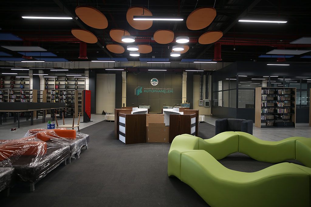 Kayseri Büyükşehir Belediye Başkanı Dr. Memduh Büyükkılıç’ın 150 projesi arasında yer alan semt kütüphaneleri kapsamında Beyazşehir Sosyal Yaşam Merkezi içerisinde yapımına devam edilen kütüphane çalışmalarında sona gelindi. Kayseri Büyükşehir Belediye Başkanı Dr. Memduh Büyükkılıç’ın gelecek nesillerin daha donanımlı ve her alanda yetişmiş bireyler olabilmeleri için başlattığı semt kütüphanelerinde devam eden çalışmalar hız kesmeden sürdürülüyor. Büyükşehir Belediyesi tarafından vatandaşların hizmetine sunulacak olan Beyazşehir Sosyal Yaşam Merkezi’nin içerisindeki Beyazşehir Halk Kütüphanesi ve Çocuk Kütüphanesi’nde çalışmalarda sona gelindi. Şehrin dört bir tarafında hizmete girecek kütüphaneler şehrimizin ve ülkemizin yarınları gençlerimiz için önemli bir hizmet olacak. Büyükşehir Belediyesine bağlı bütün kütüphanelerde çağın yeniliklerine uygun modern bir şekilde vatandaşlara hizmet sunuluyor. Bu manada bulunduğu bölgenin önemli bir ihtiyacını karşılayacak olan Beyazşehir Halk Kütüphanesi; içerisinde aynı anda 500 kişinin hizmet alabileceği ve ayrıca 0-6 yaş grubuna hitap edecek olan bir çocuk kütüphanesinin de yer alacağı önemli bir eğitim merkezi olacak. Büyükşehir Belediyesi’nin 0-6 yaş arası çocuklar için hazırladığı Çocuk Kütüphanesi’nde çocukların ilgisini çekecek birçok ayrıntı düşünüldü. Çok kısa bir süre içerinde vatandaşların hizmetine sunulacak olan Beyazşehir Halk Kütüphanesi ve Çocuk Kütüphanesi her yaş grubuna hitap eden modern bir kütüphane olarak Beyazşehir halkının kullanımına açılacak.