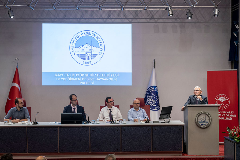 Kayseri Büyükşehir Belediyesi’nin en önemli projelerinden birisi olan Beydeğirmeni Besi ve Hayvancılık Projesi için önemli bir toplantı gerçekleştirildi. Büyükşehir Belediyesi Meclis Salonu’nda yapılan toplantıda Beydeğirmeni’nde yatırım yapacak olan üreticilere devlet destekleriyle ilgili bilgiler verildi. Toplantıya katılan Büyükşehir Belediye Başkanı Memduh Büyükkılıç, herkesin bu önemli yatırım için gayret gösterdiğini belirterek, el ele gönül gönüle aşılamayacak hiçbir sorunun olmadığını söyledi. Büyükşehir Belediyesi Meclis Salonu’nda Beydeğirmeni Besi ve Hayvancılık Projesi için yapılan toplantıya Tarım ve Orman İl Müdürü Mustafa Şahin, Ticaret Borsası Başkanı Recep Bağlamış, Kırmızı Et Üreticileri Birliği Başkanı Ercan Aras, Büyükşehir Belediyesi bürokratları ve üreticiler katıldı. Büyükşehir Belediye Başkanı Dr. Memduh Büyükkılıç da toplantıya Tomarza’da katıldığı program dönüşünde iştirak etti. Toplantıyı Büyükşehir Belediyesi Kentsel Dönüşüm Daire Başkanı Hakkı Alp açtı. Toplantıda Tarım ve Orman İl Müdürlüğü uzmanları tarafından, Bakanlığın kırsal kalkınma destekleri ile tarıma dayalı yatırımlara yönelik sağladığı destekler hakkında bilgiler verildi. Toplantıda katılımcıların soruları da cevaplandırıldı. Büyükşehir Belediyesi Kentsel Dönüşüm Daire Başkanı Hakkı Alp, desteklere başvurulması için tapuların verilmesinde kolaylık sağlayacaklarını, Tarım ve Orman İl Müdürü Mustafa Şahin de destekler için başvuranlara her türlü yardımı sunacaklarını belirtti. “HERKES CANLA BAŞLA ÇALIŞIYOR” Büyükşehir Belediye Başkanı Dr. Memduh Büyükkılıç da Beydeğirmeni Besi Projesi’nin hayata geçirilmesi için herkesin canla başla çalıştığını söyledi. Bugüne kadar 305 yatırımcıya Beydeğirmeni Besi Bölgesi’nden parsel verildiğini ifade eden Başkan Büyükkılıç, “Hayvancılıkta ne kadar katma değer sağlarız, üretimi ne kadar artırırızın gayreti içindeyiz. Besmele ile yola çıkın ve mevcut şartları iyi değerlendirin. Görüldüğü gibi Ticaret Borsamız danışmanlık desteği veriyor, belediyemiz tapuların verilmesi için gayret gösteriyor, devletimiz hayvancılığı teşvik için çırpınıyor. Bu şekilde el ele, gönül gönüle verirsek aşılmayacak hiçbir sorun kalmaz” dedi.